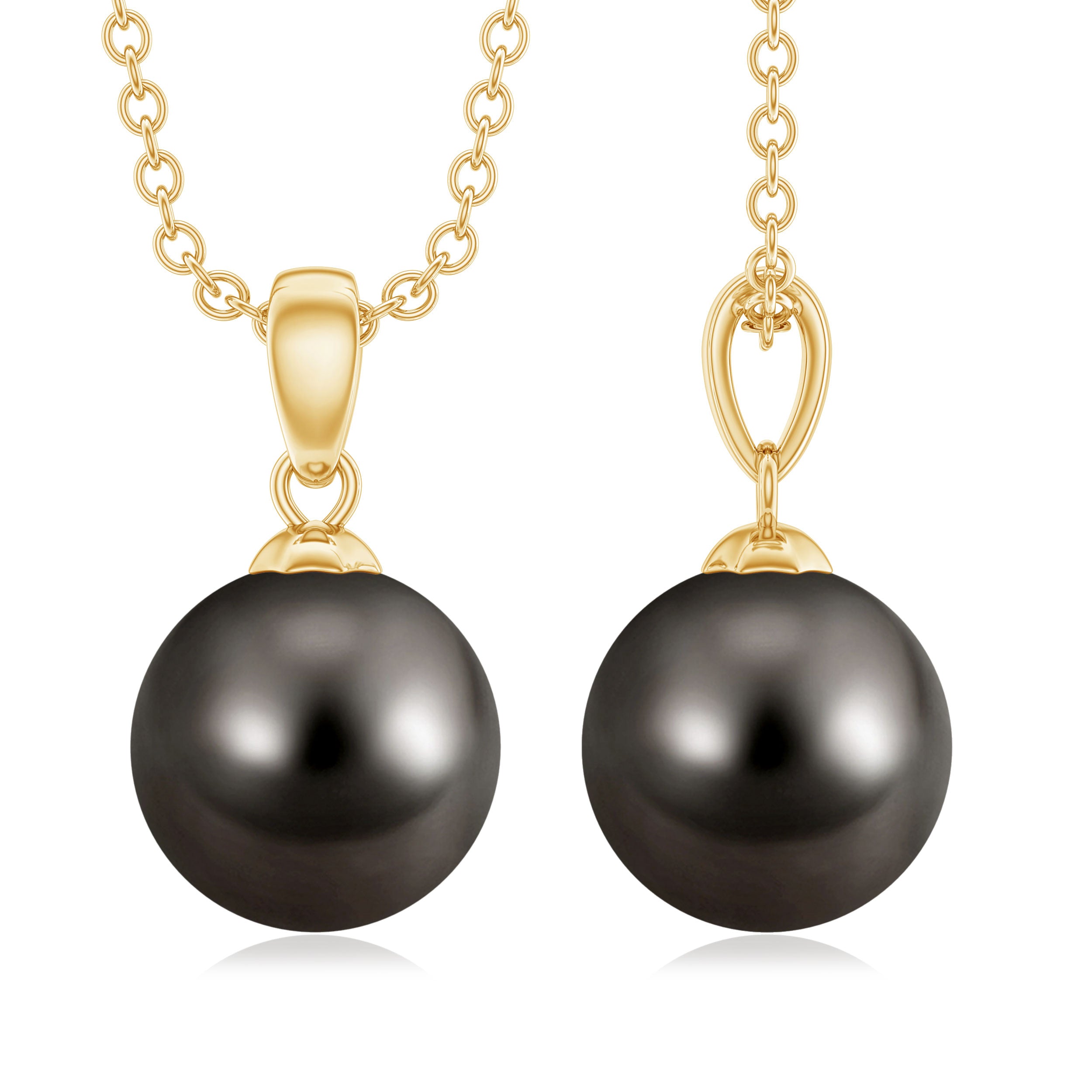 Simple 8 MM Round Tahitian Black Pearl Solitaire Necklace