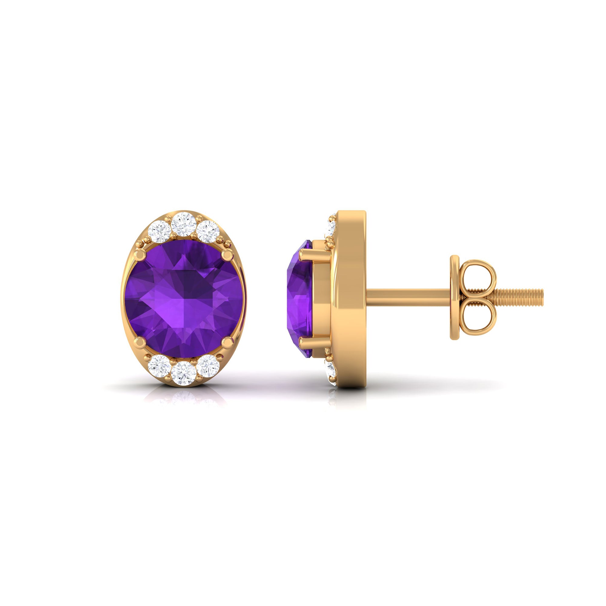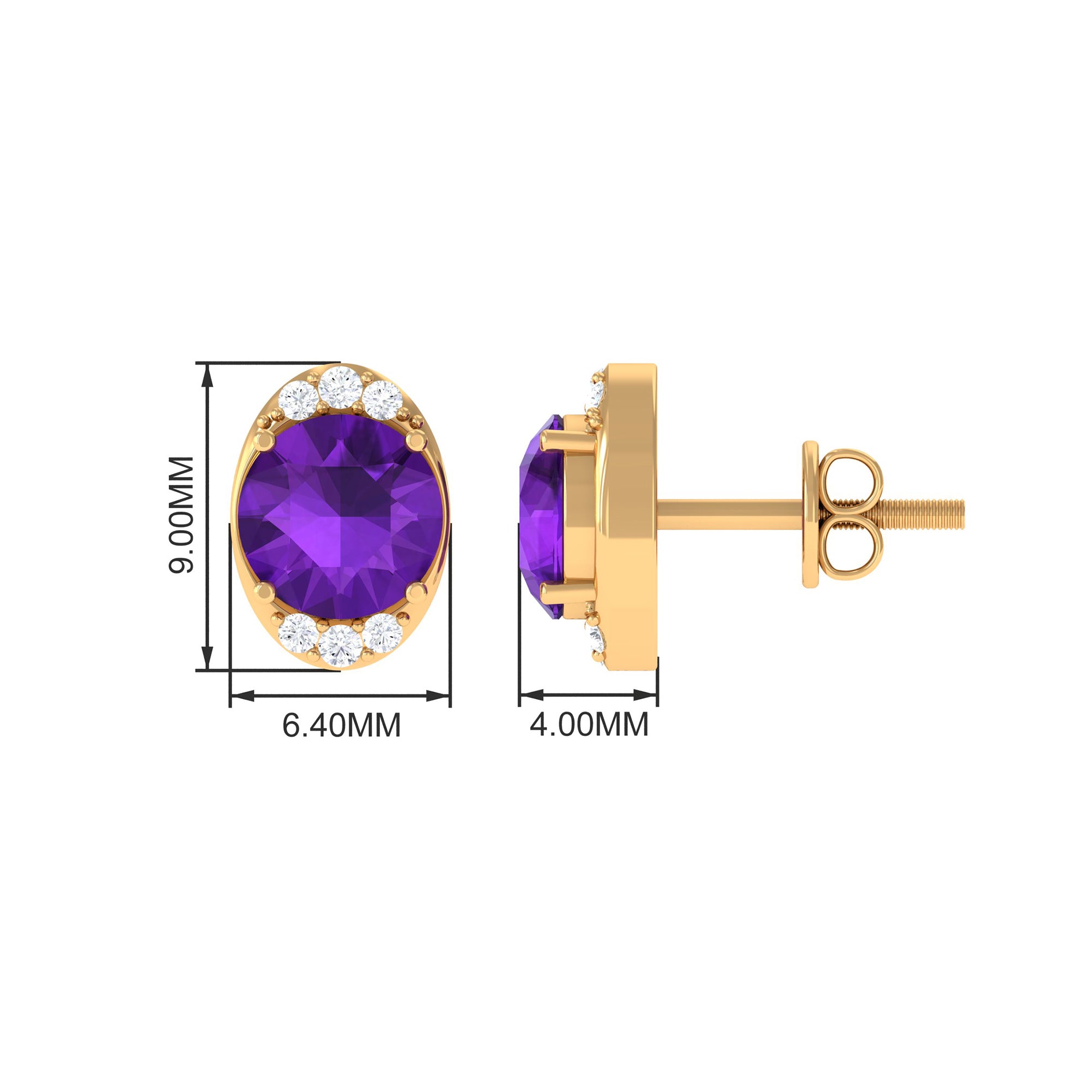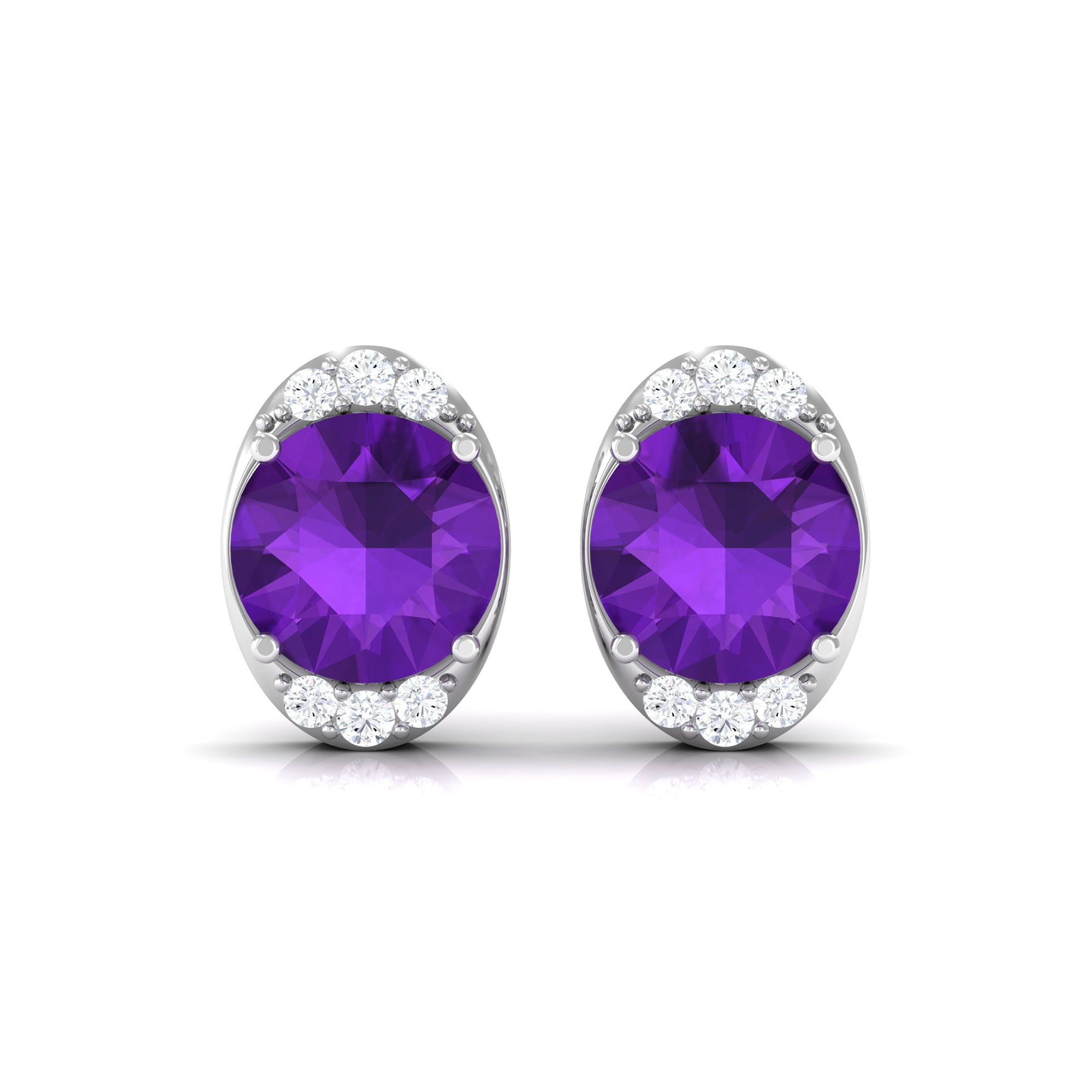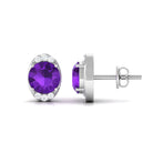 Illuminate your ears with the Amethyst Stud Earrings, adorned with sparkling Diamond. A dazzling combination that adds a touch of elegance and allure.