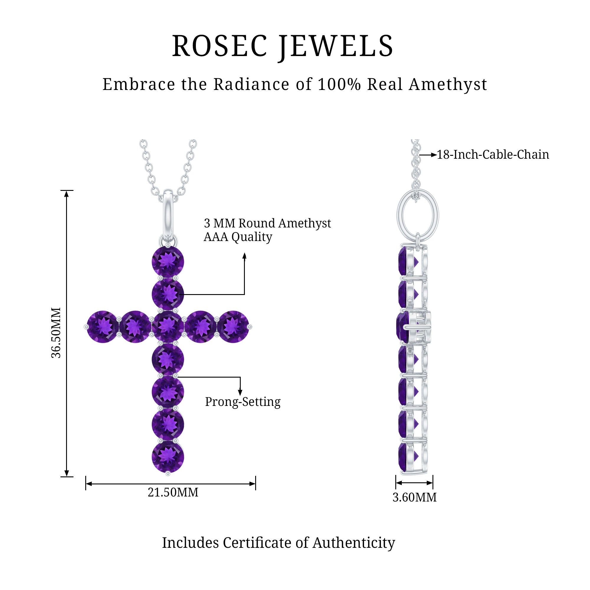 Make a statement of faith and devotion with this simple yet elegant Cross Pendant decorated with Round Shape Amethyst gemstones set in Prong Setting.