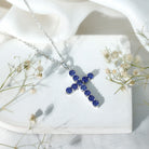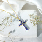 Simple Created Blue Sapphire Cross Pendant Necklace