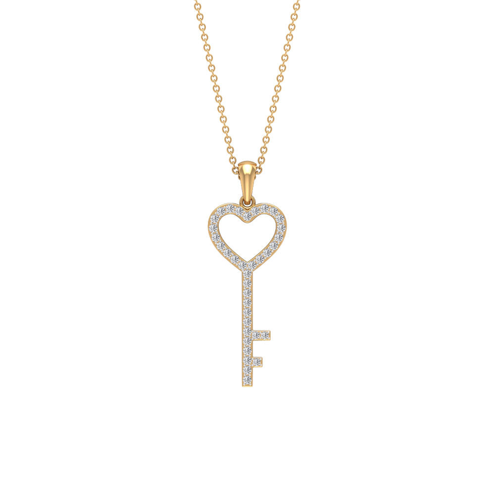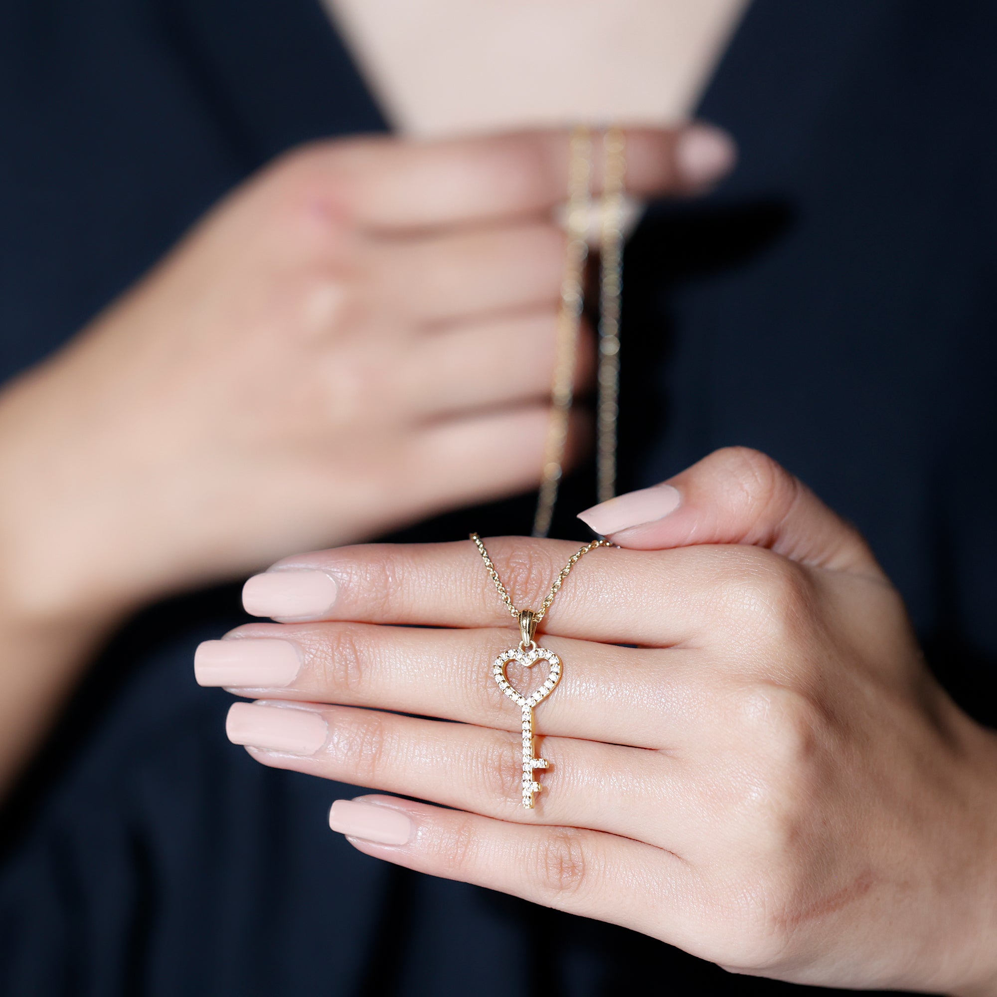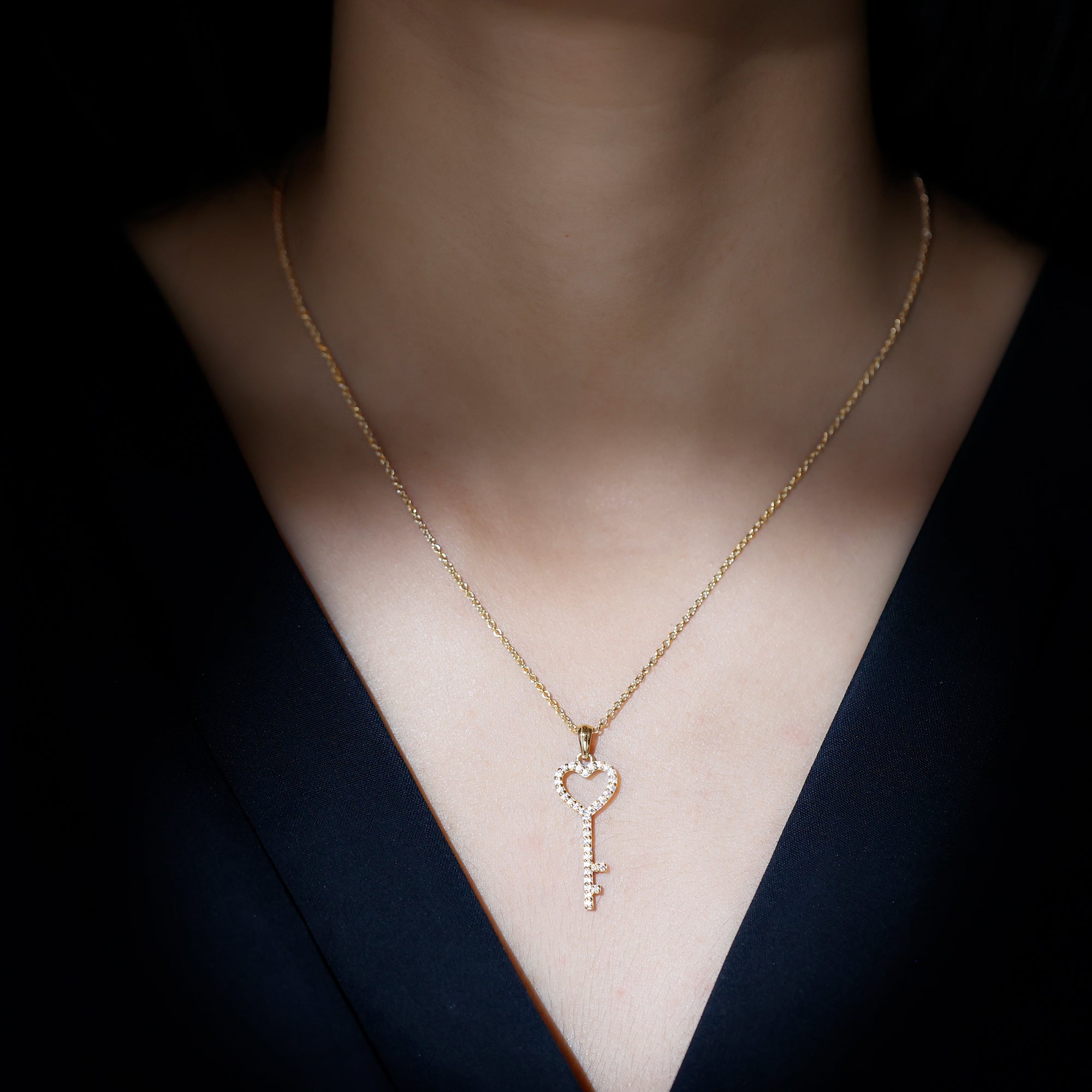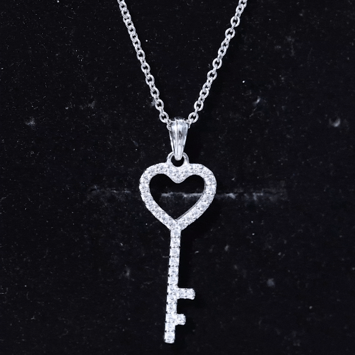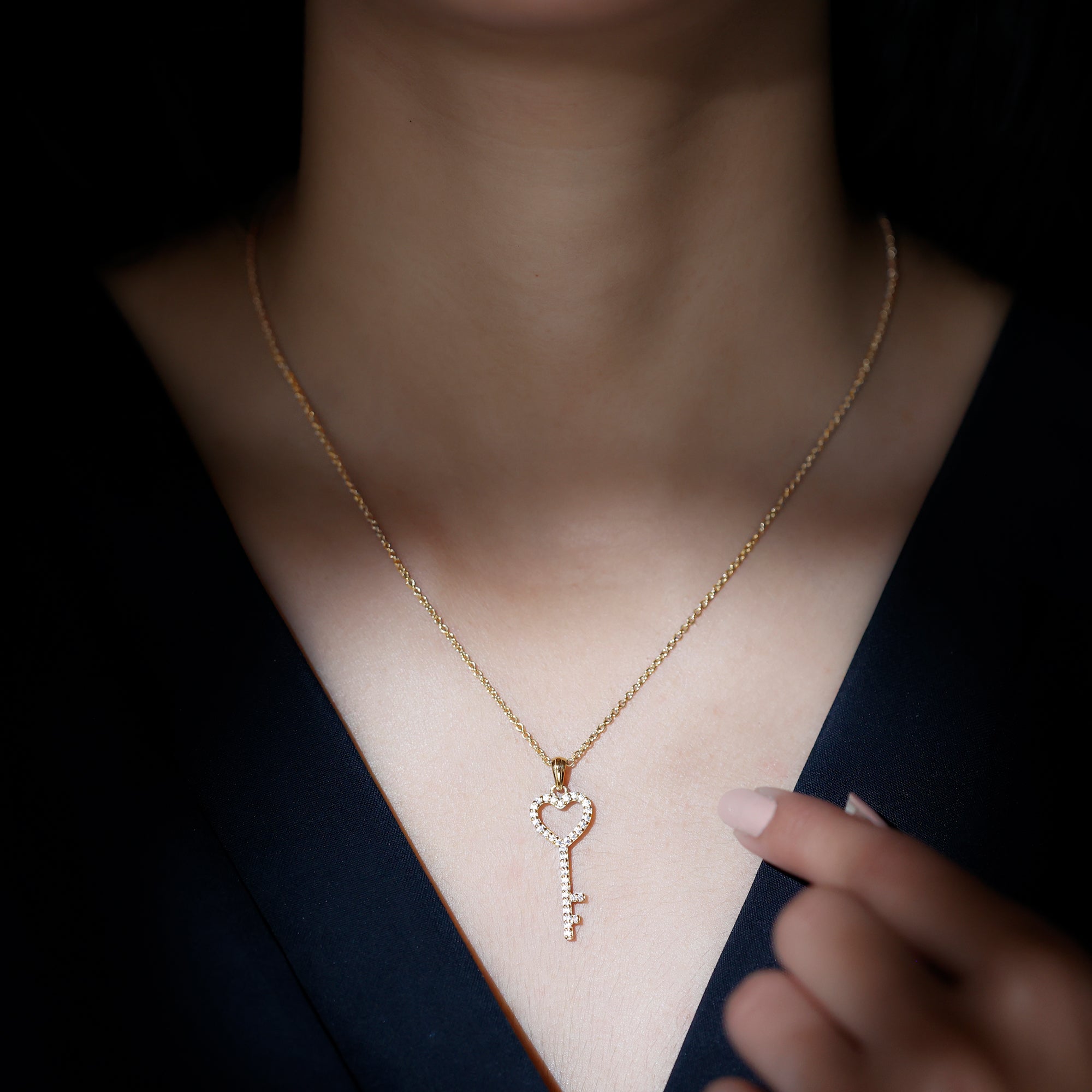 Be the key of someone’s heart. This simple cubic heart key necklace denotes strong companionship between the partners. It is the perfect way to showcase your love and presence in your partner’s life. This exquisite necklace is a symbol of love, hope, and new beginnings. This heart key-shaped pendant is adorned with sparkling cubic zirconia stones, adding a touch of glamour to your everyday look. As you wear this necklace, feel your heart opening to new possibilities. This necklace is the perfect gift for a loved one or for yourself.