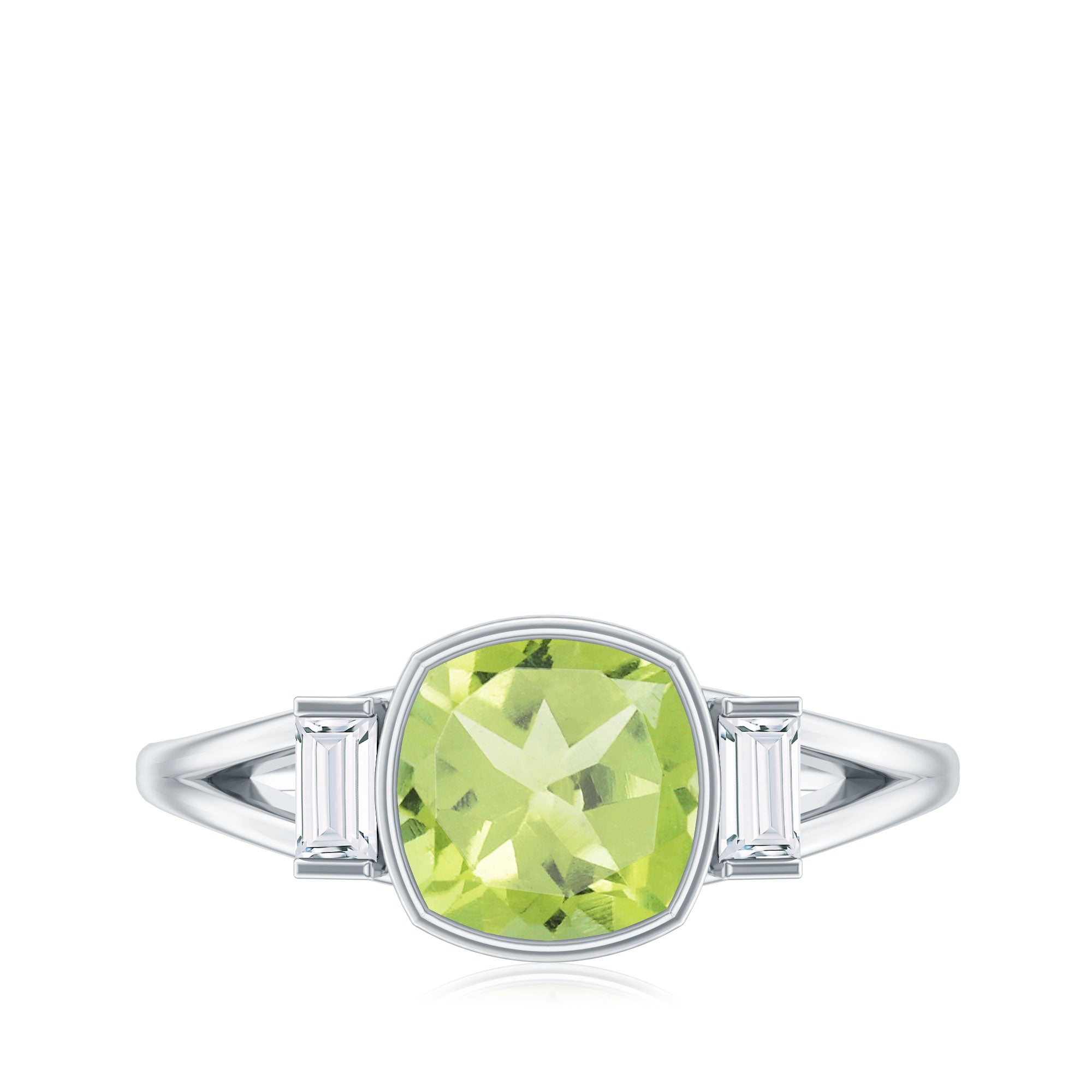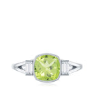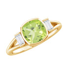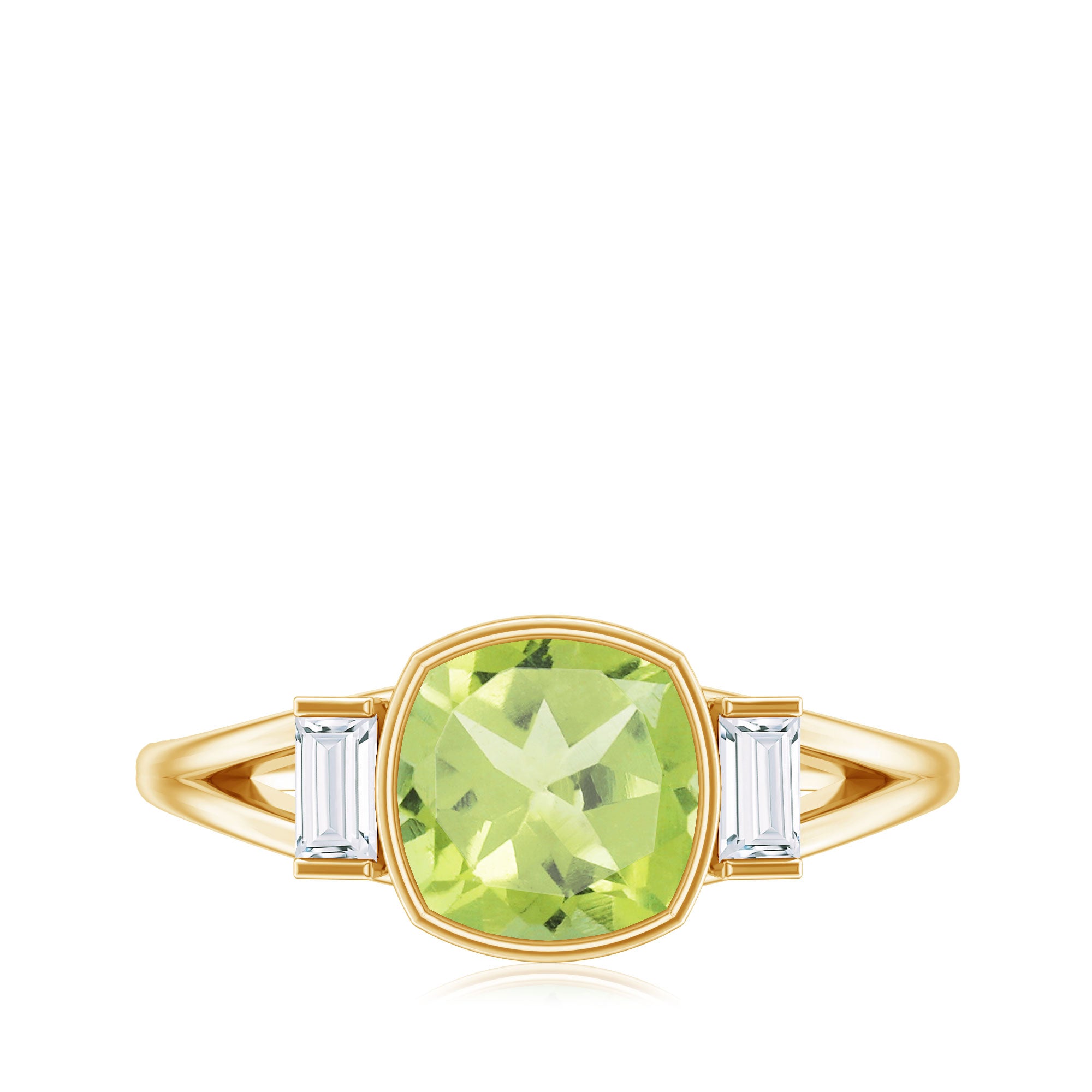 Simple Cushion Cut Peridot Solitaire Engagement Ring with Diamond in Split Shank