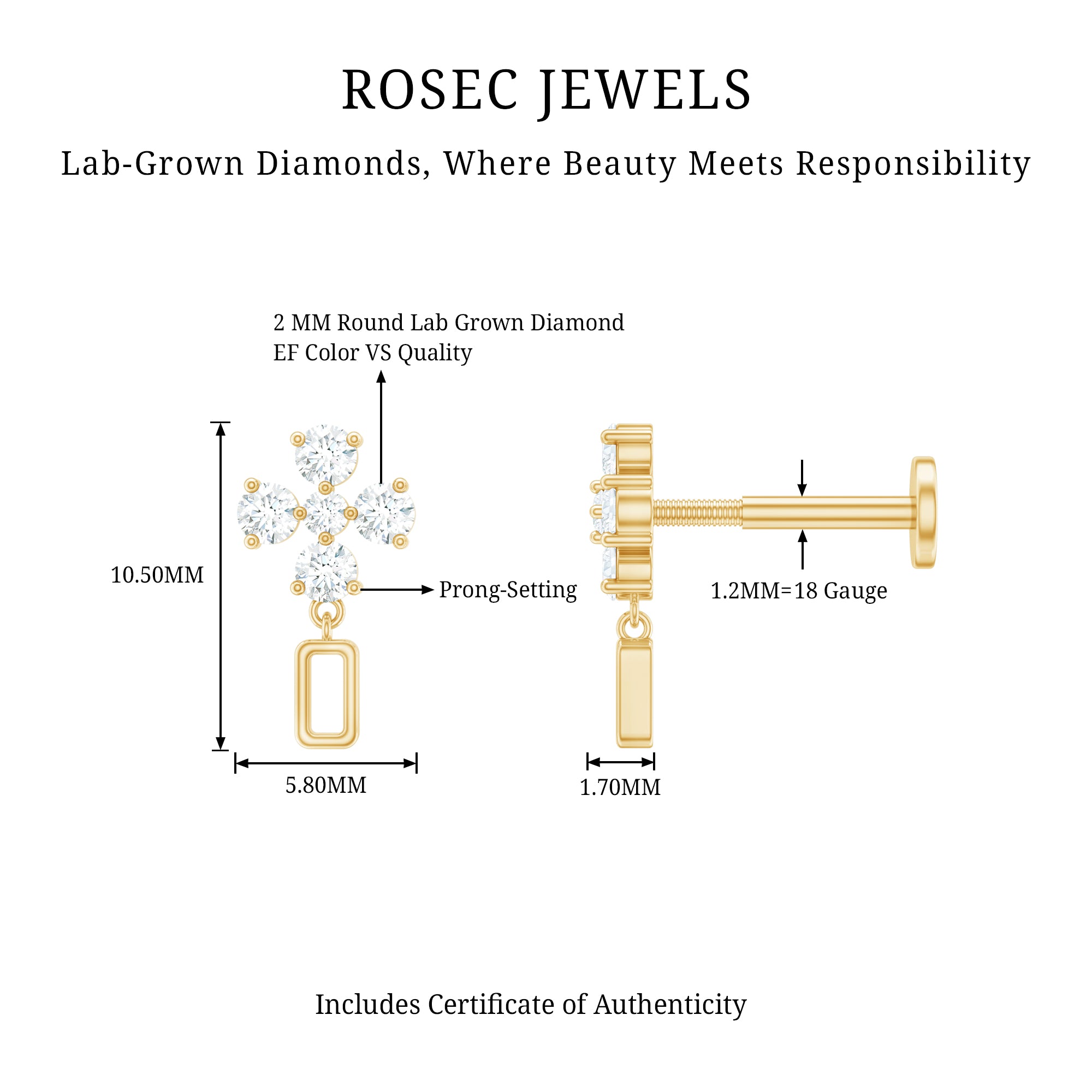 Maximize space for more sparkles. And decorate your ear stack with this Diamond Drop Earring. It is embellished with Round Diamonds set in Prong Setting with a drop adding a unique touch. The simple back style features a flat back that wont poke or jab while you are taking a quick nap or getting a full night of beauty sleep. You can style this Diamond Earring on your multiple piercings like Helix, Cartilage, Tragus, Conch, or Upper Lobe Piercing. Designed for 24/7 wear, this Helix Earring is ideal for an active lifestyle and can be worn without worry during workouts, travel, and all of your daily activities.