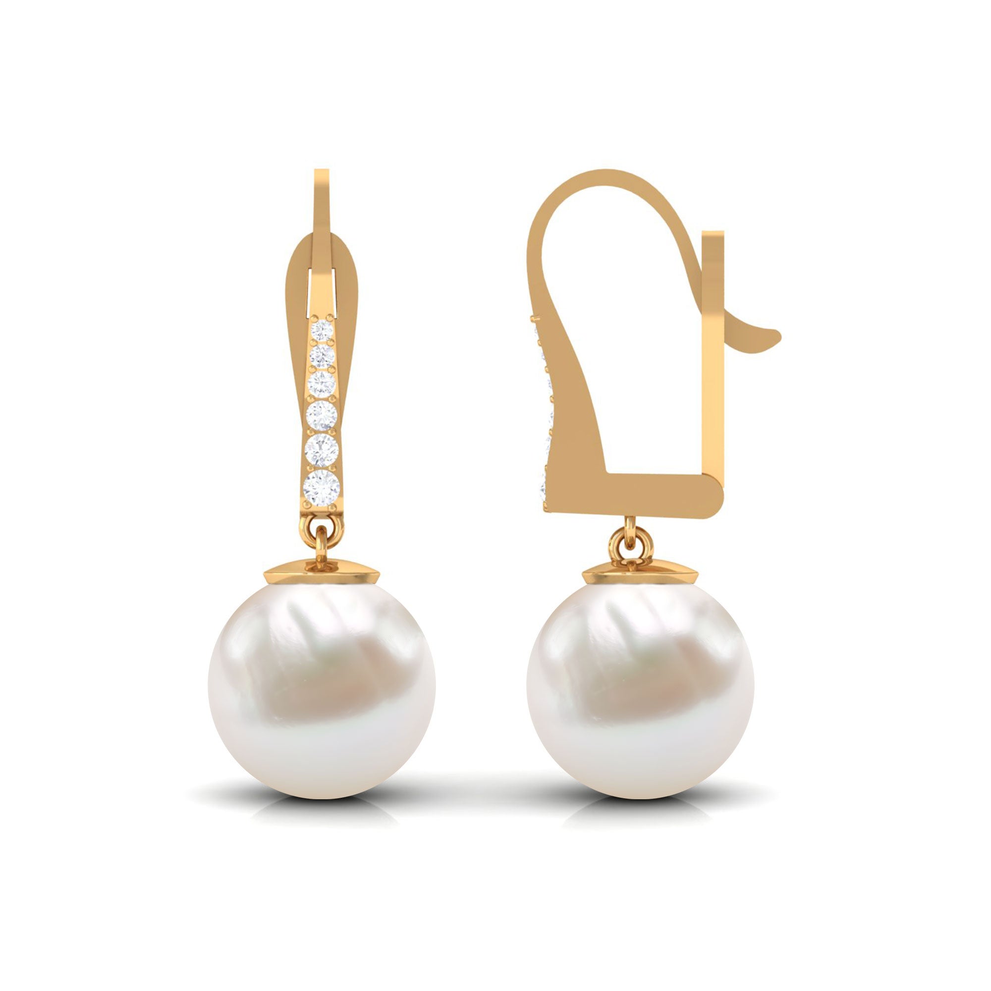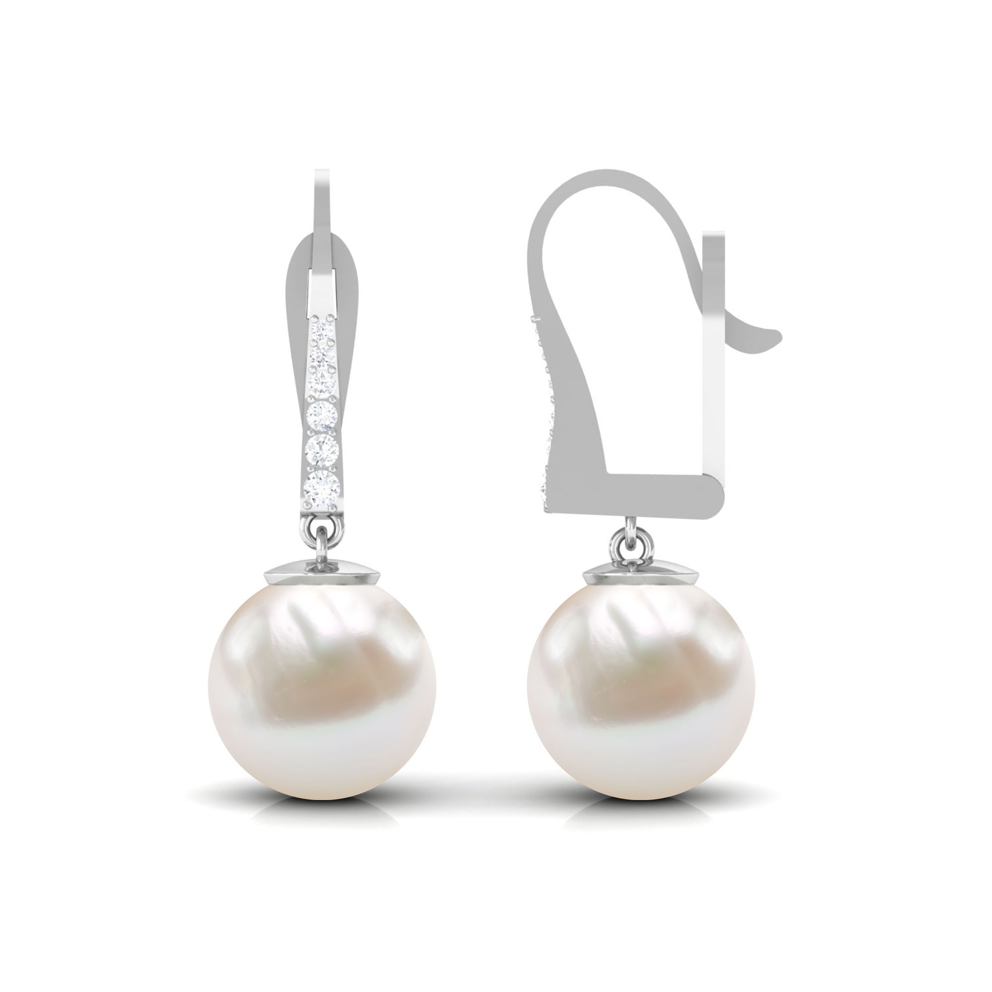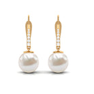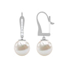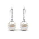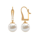 Simple Freshwater Pearl and Diamond Drop Earrings with Lever Back