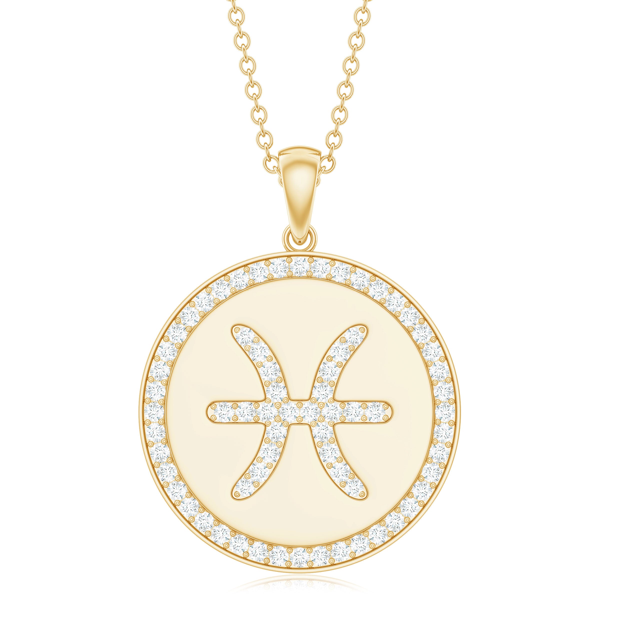 Simple Moissanite and Disc Pisces Zodiac Pendant