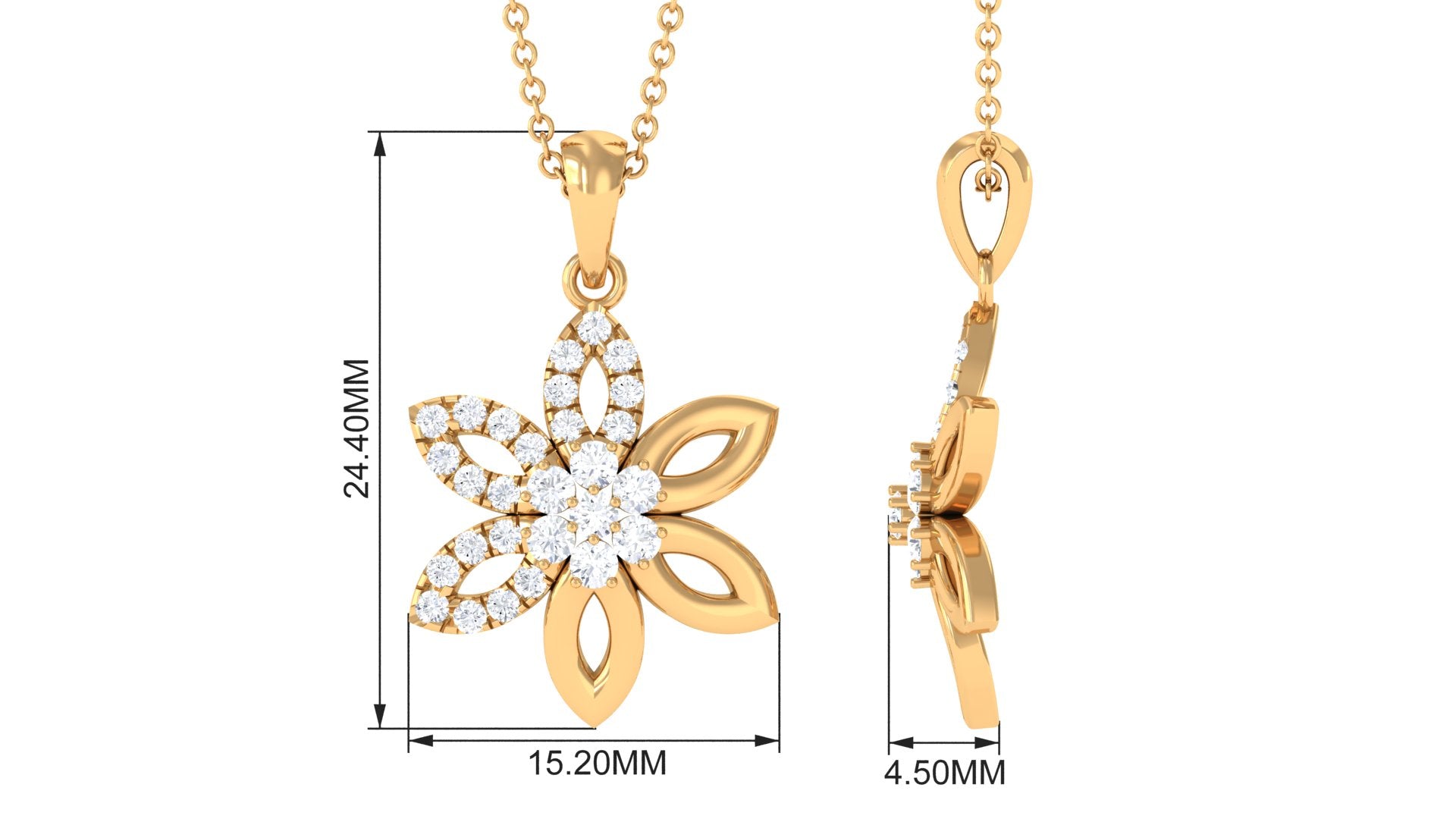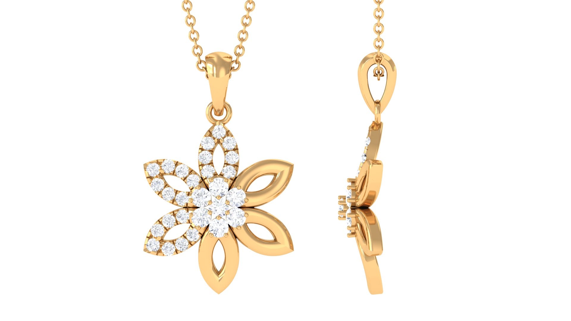 Experience the incredible beauty of our Floral Pendant, a true marvel of craftsmanship. This exquisite pendant is adorned with a captivating Round Shape Moissanite Gemstone, making it a stunning and enchanting piece that will undoubtedly turn heads and capture hearts.
