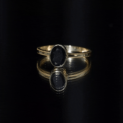 Simple Oval Cut Black Onyx Solitaire Ring in Bezel Setting