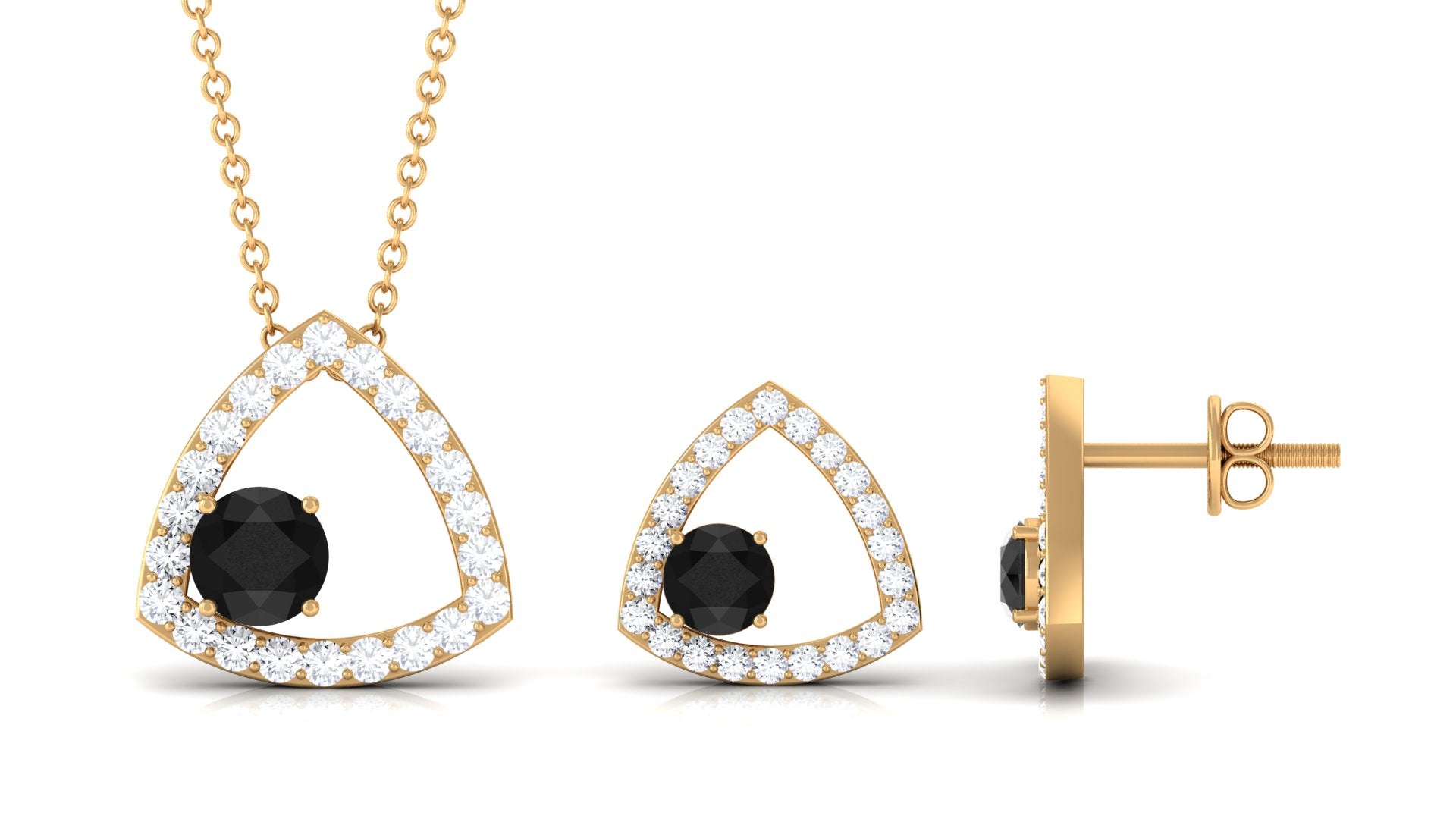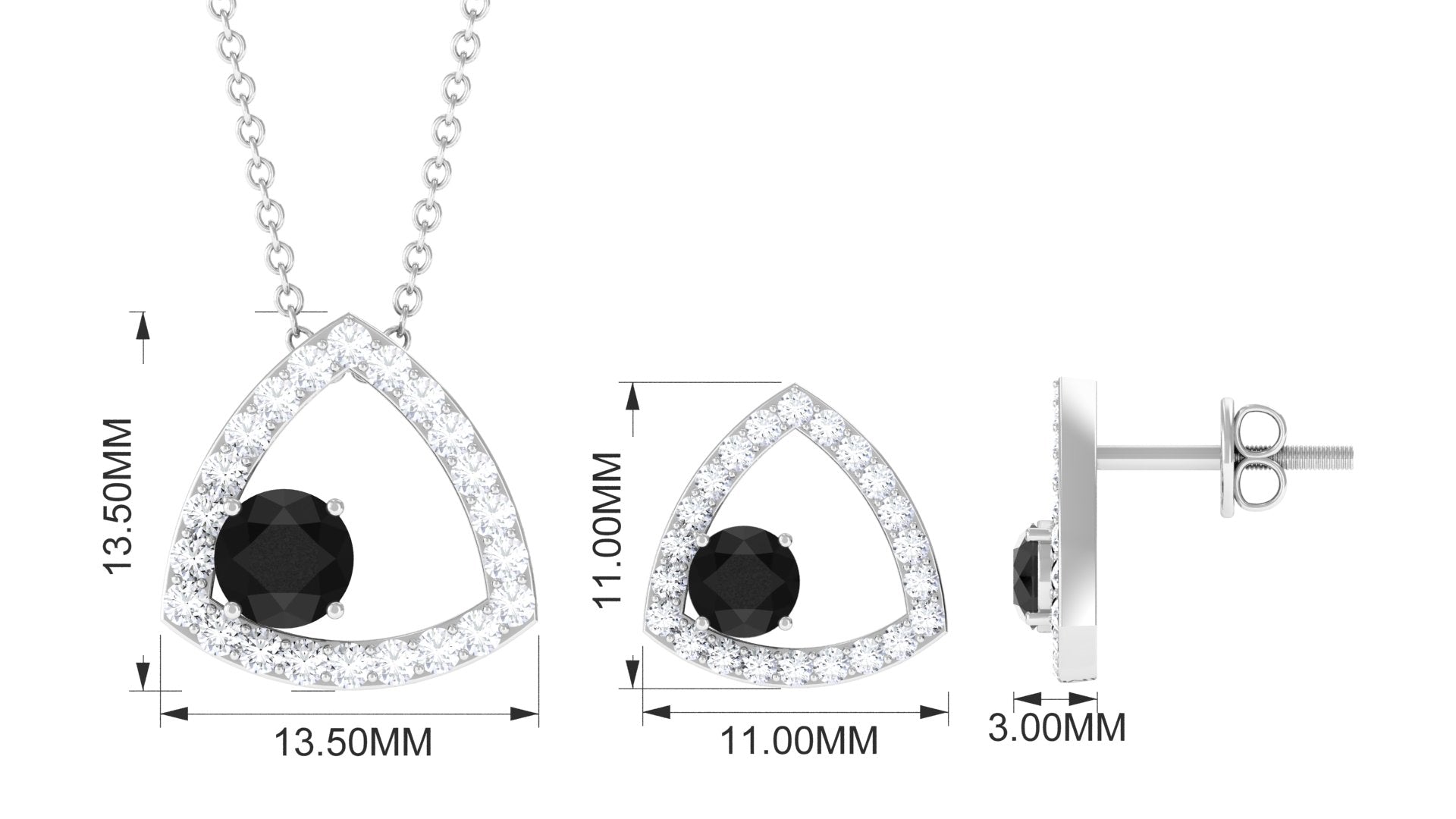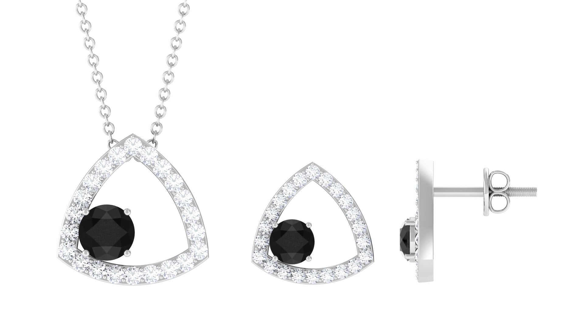 Elevate your style with this exquisite Black Onyx jewelry Set, complete with Moissanite accents that add a touch of sparkle to the set. The Open Triangle Pendant and Earrings Set is a captivating example of fine jewelry, featuring a Round Black Onyx Pendant and Earrings that are sure to enchant. Impress your lady with your impeccable taste by gifting her this enchanting Black Onyx and Moissanite jewelry Set.