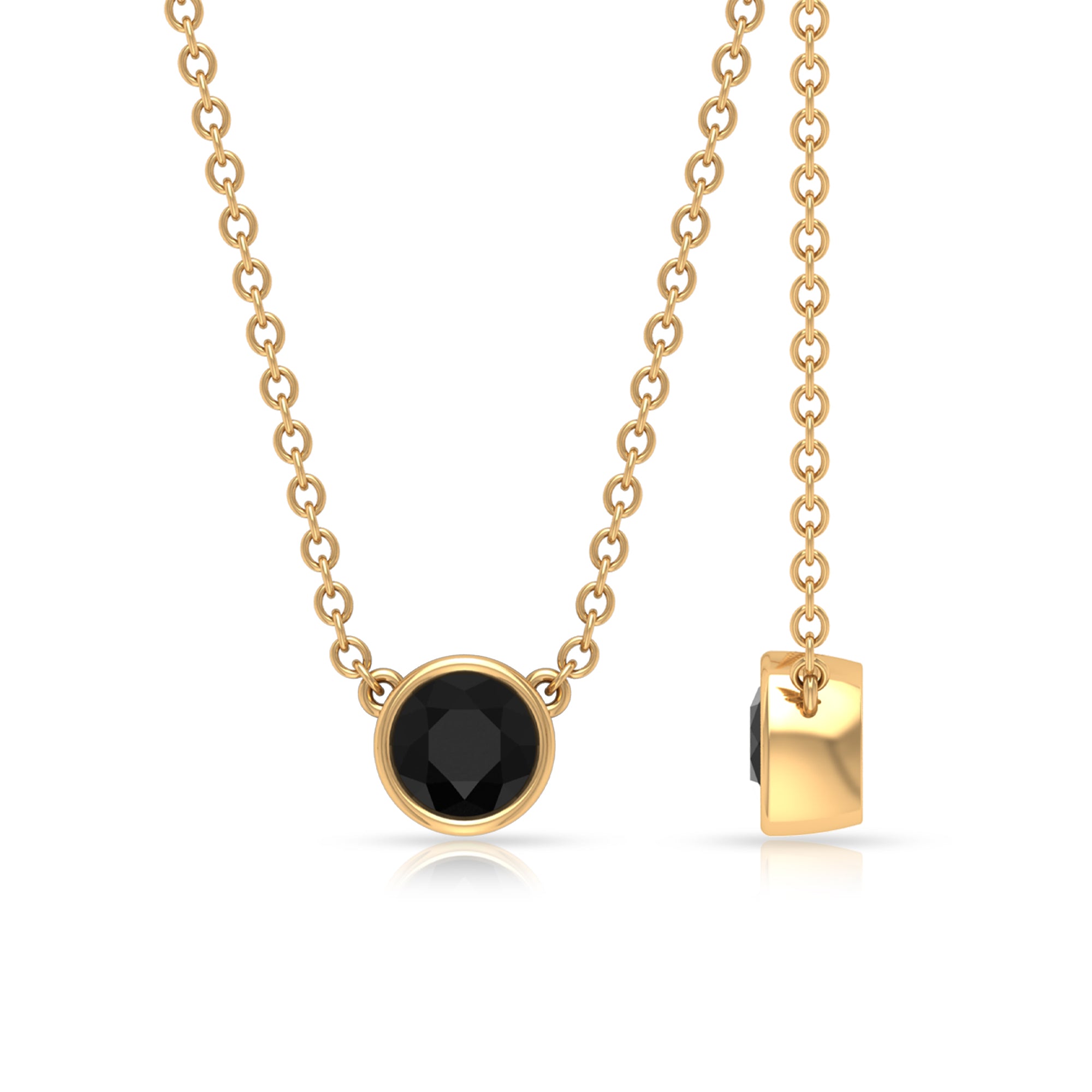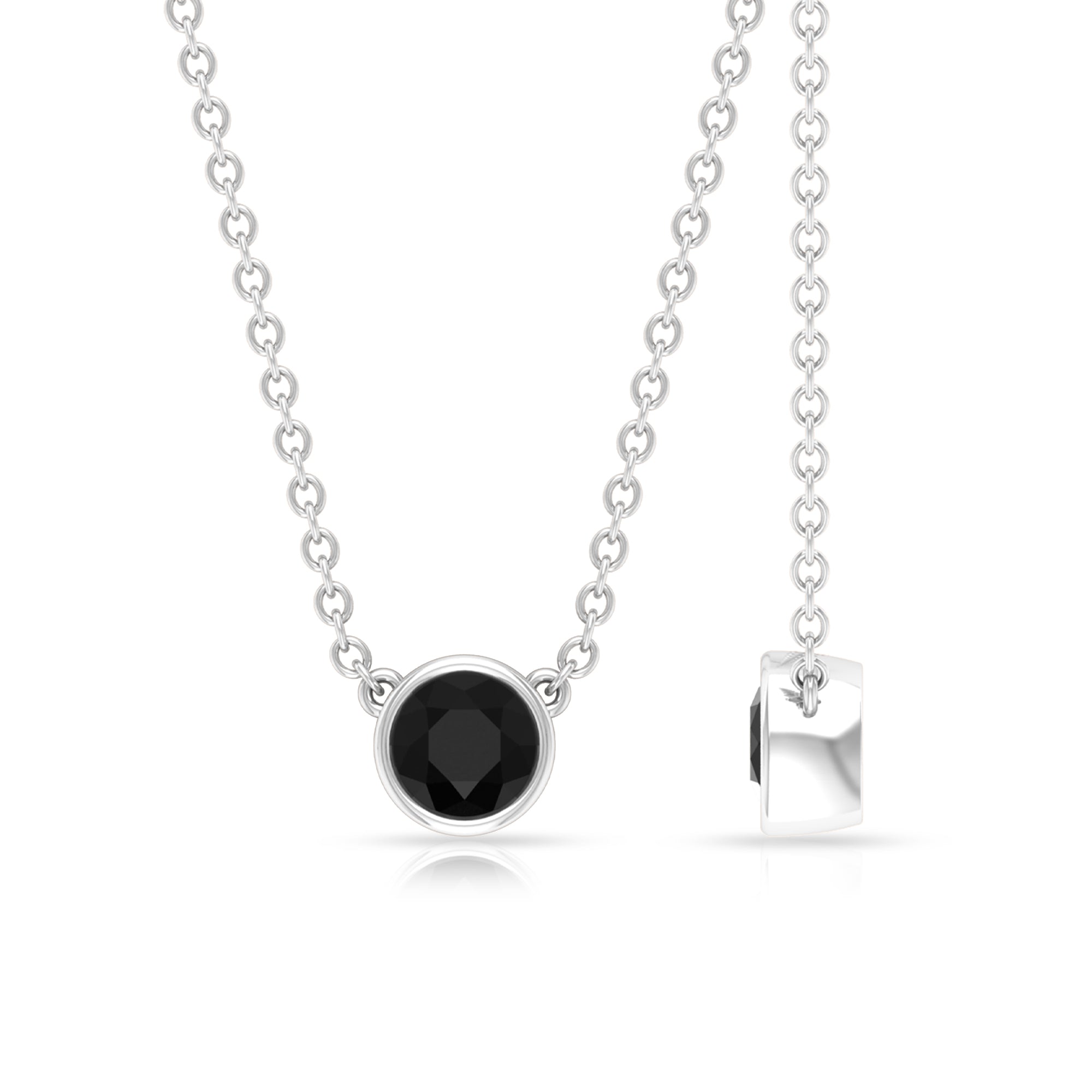Simple Round Black Onyx Solitaire Necklace in Bezel Setting