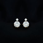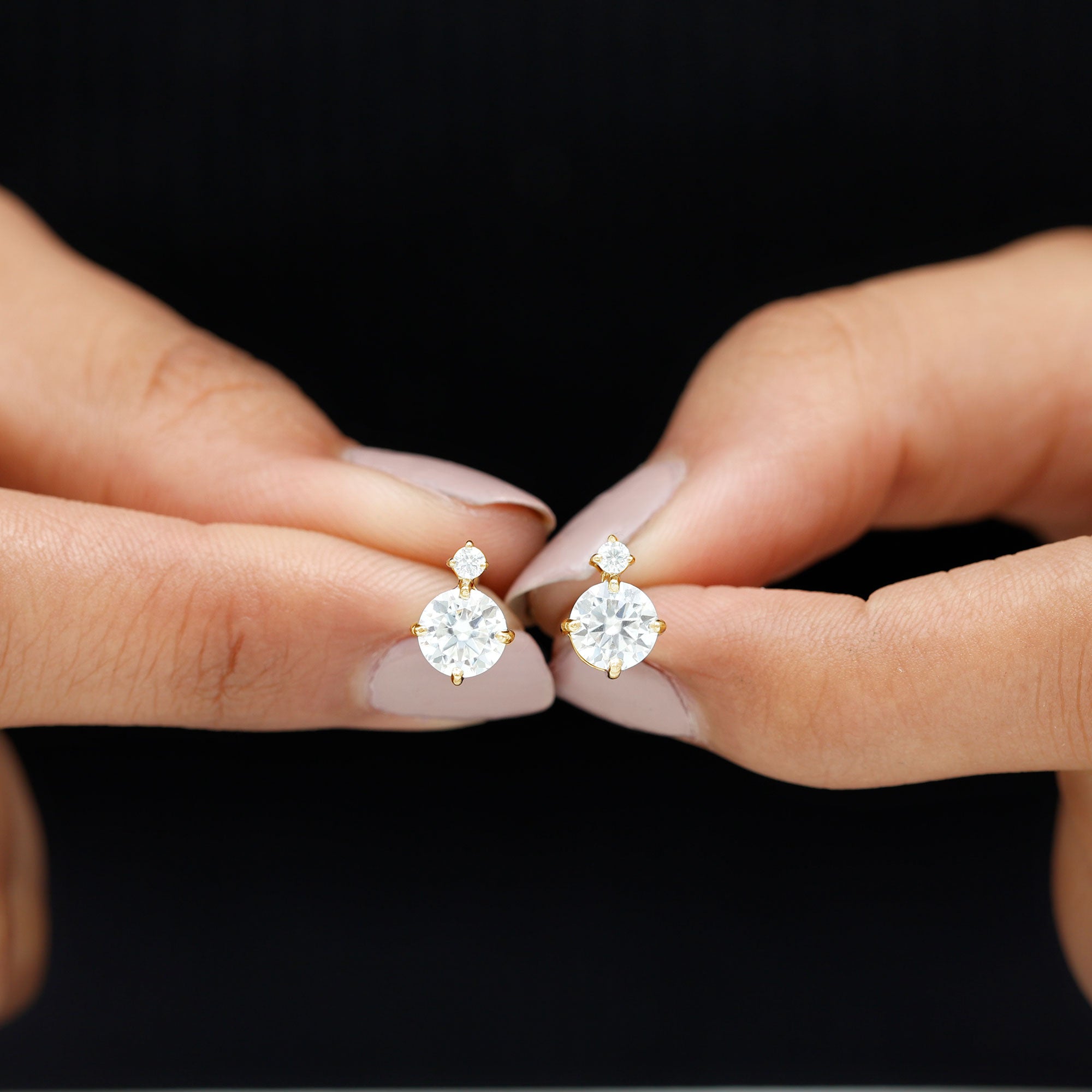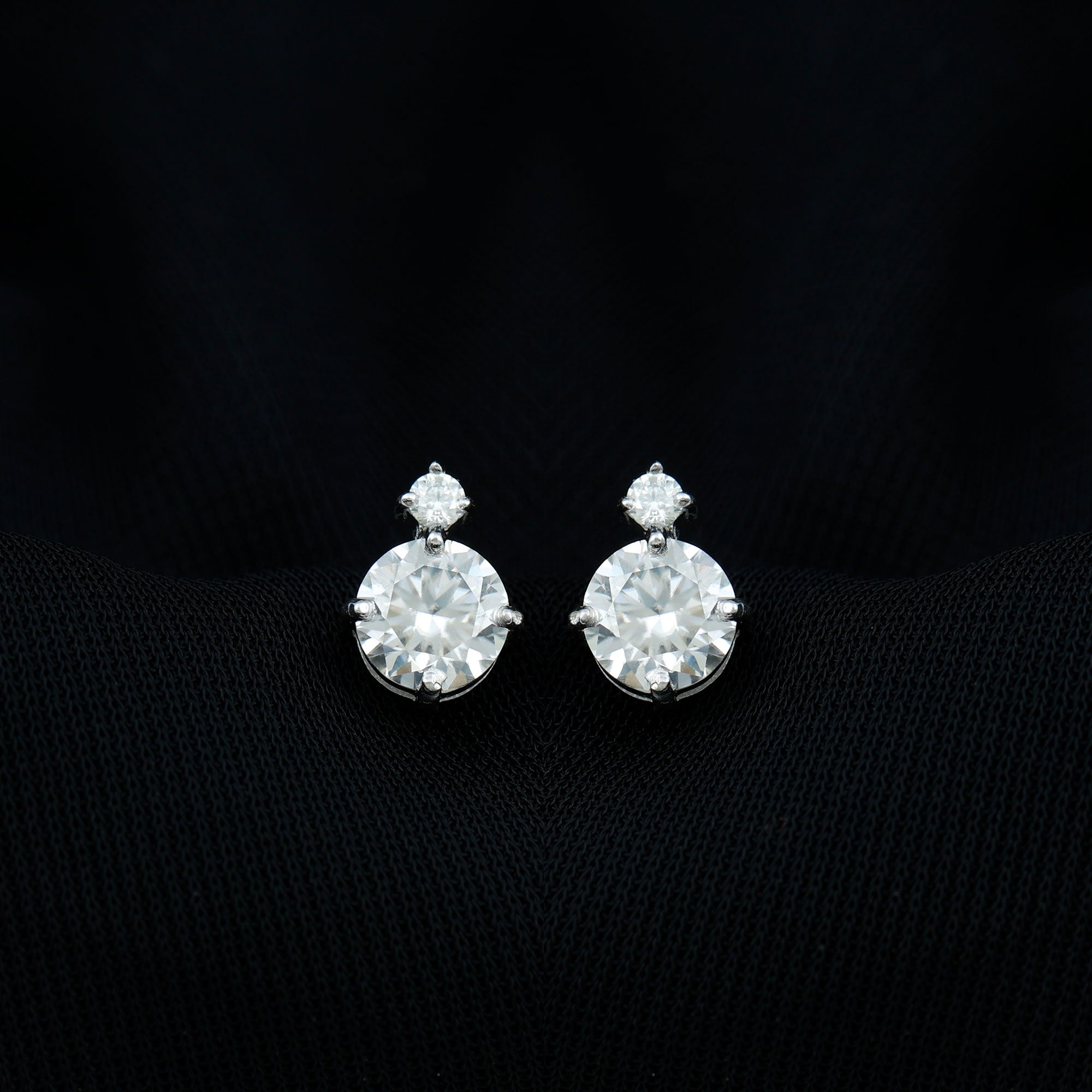 Elevate your style with these solitaire stud earrings, featuring round moissanite complemented by a delicate top round moissanite, enhancing the sparkle and brilliance. The moissanite is securely set in a 4-prong setting, adding to its enhanced beauty. These elegant solitaire studs are finished with convenient screw back posts, completing their utterly sophisticated design.