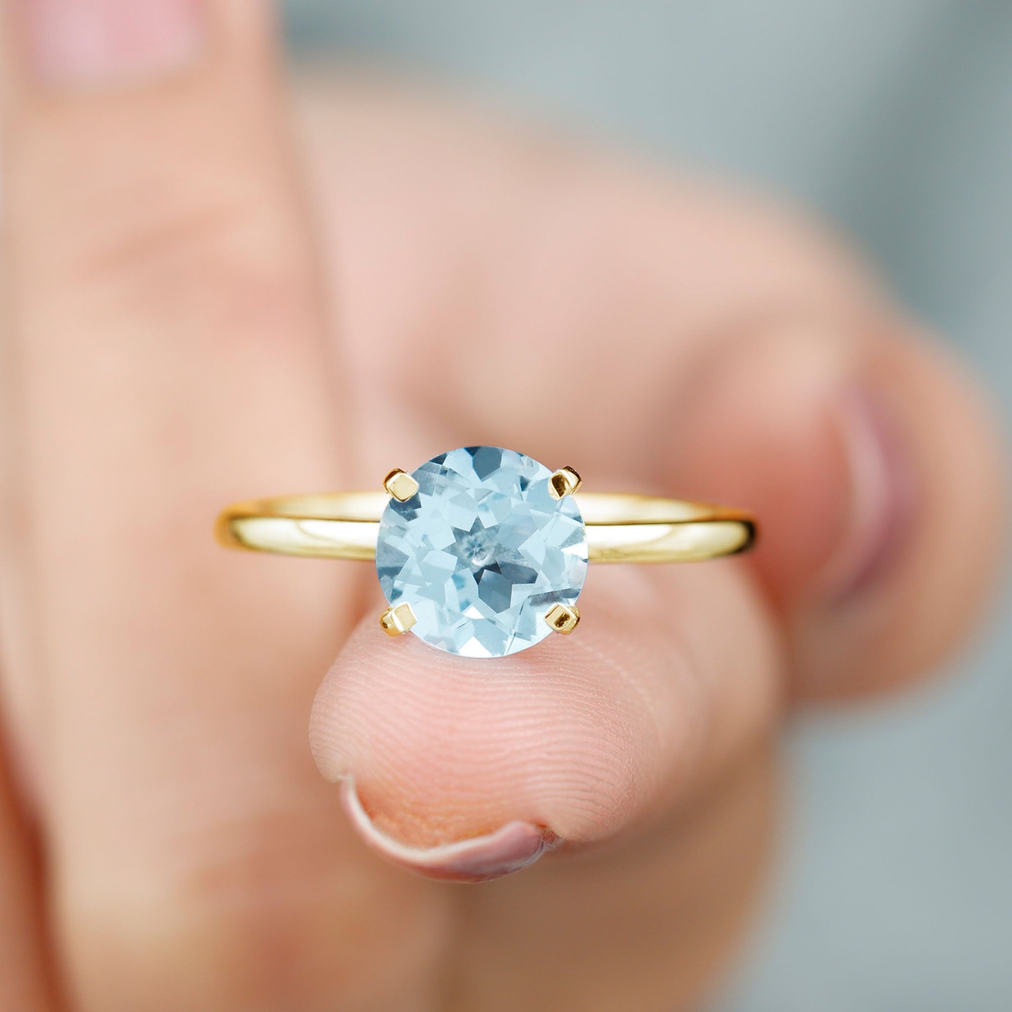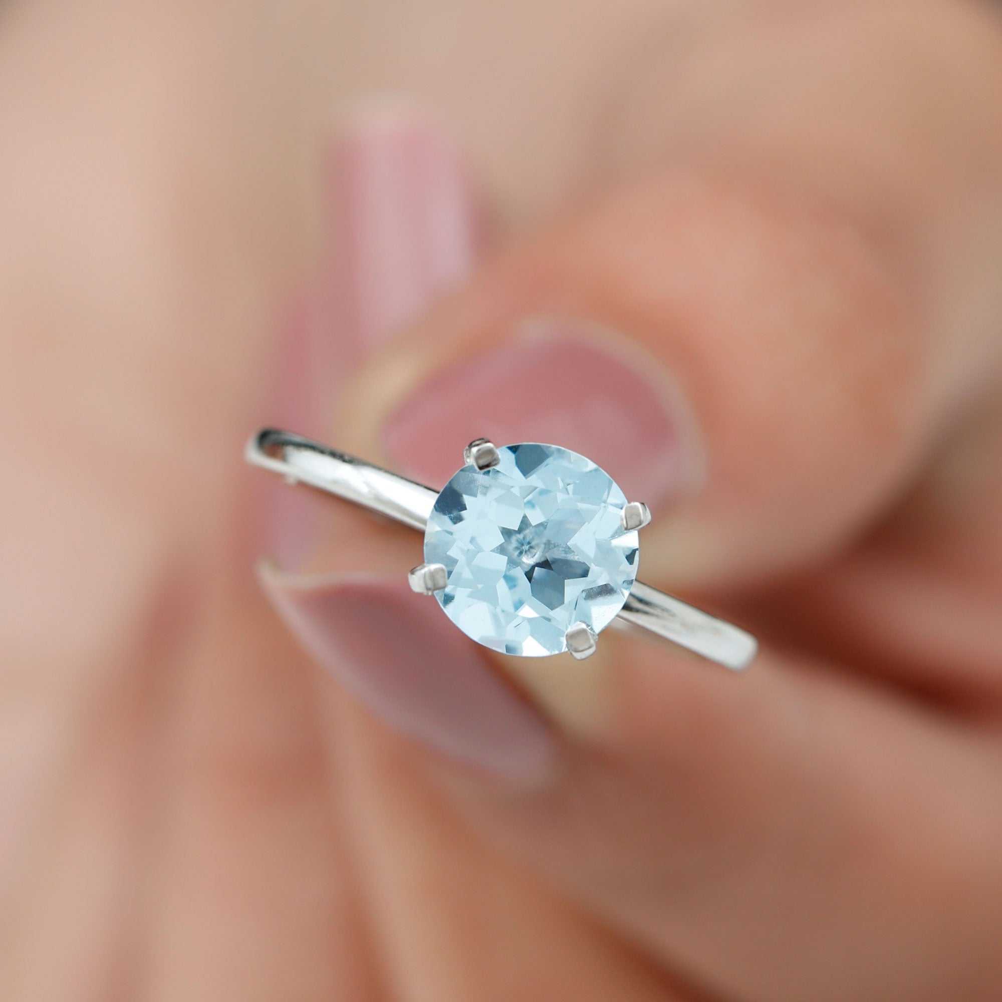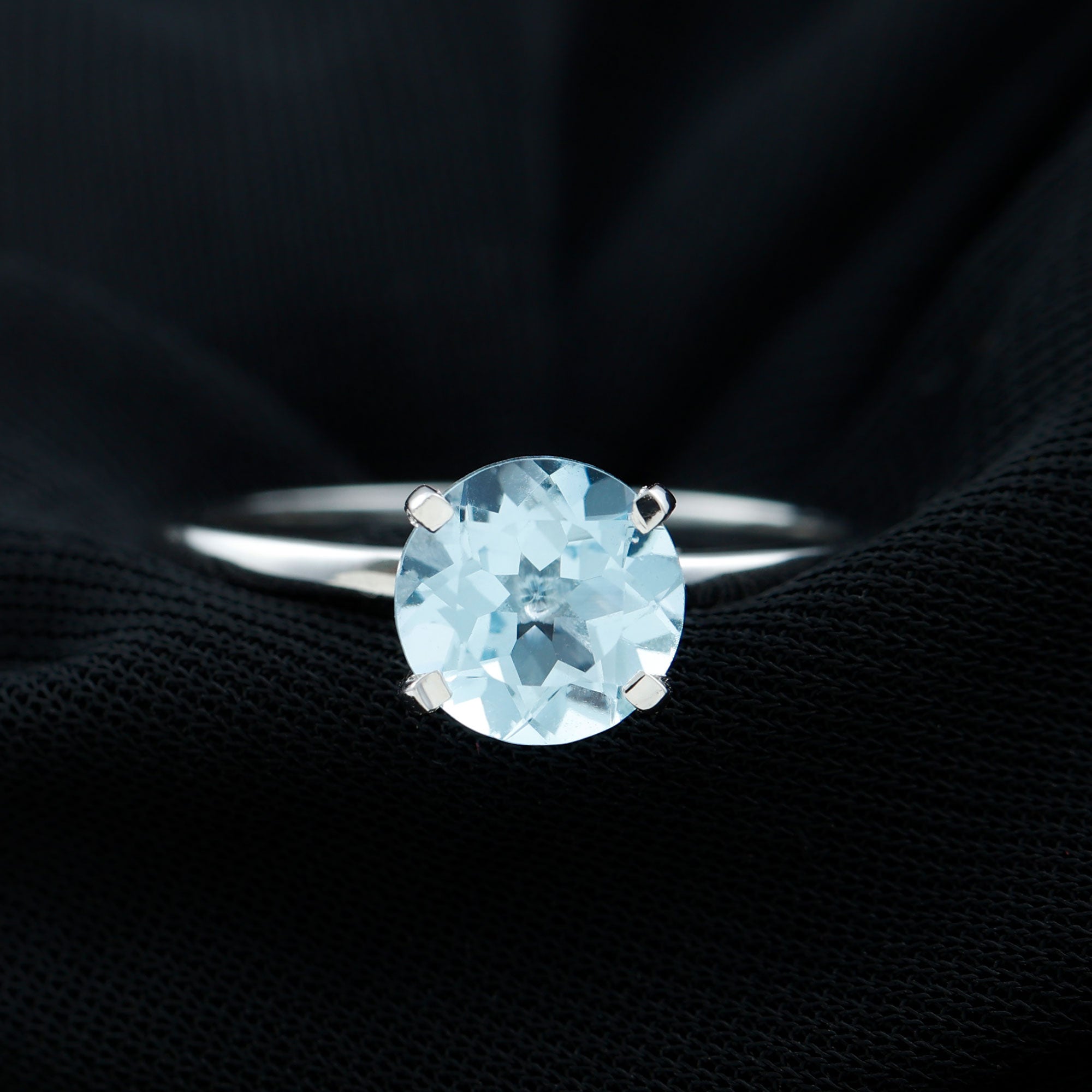 Simple Round Sky Blue Topaz Solitaire Ring