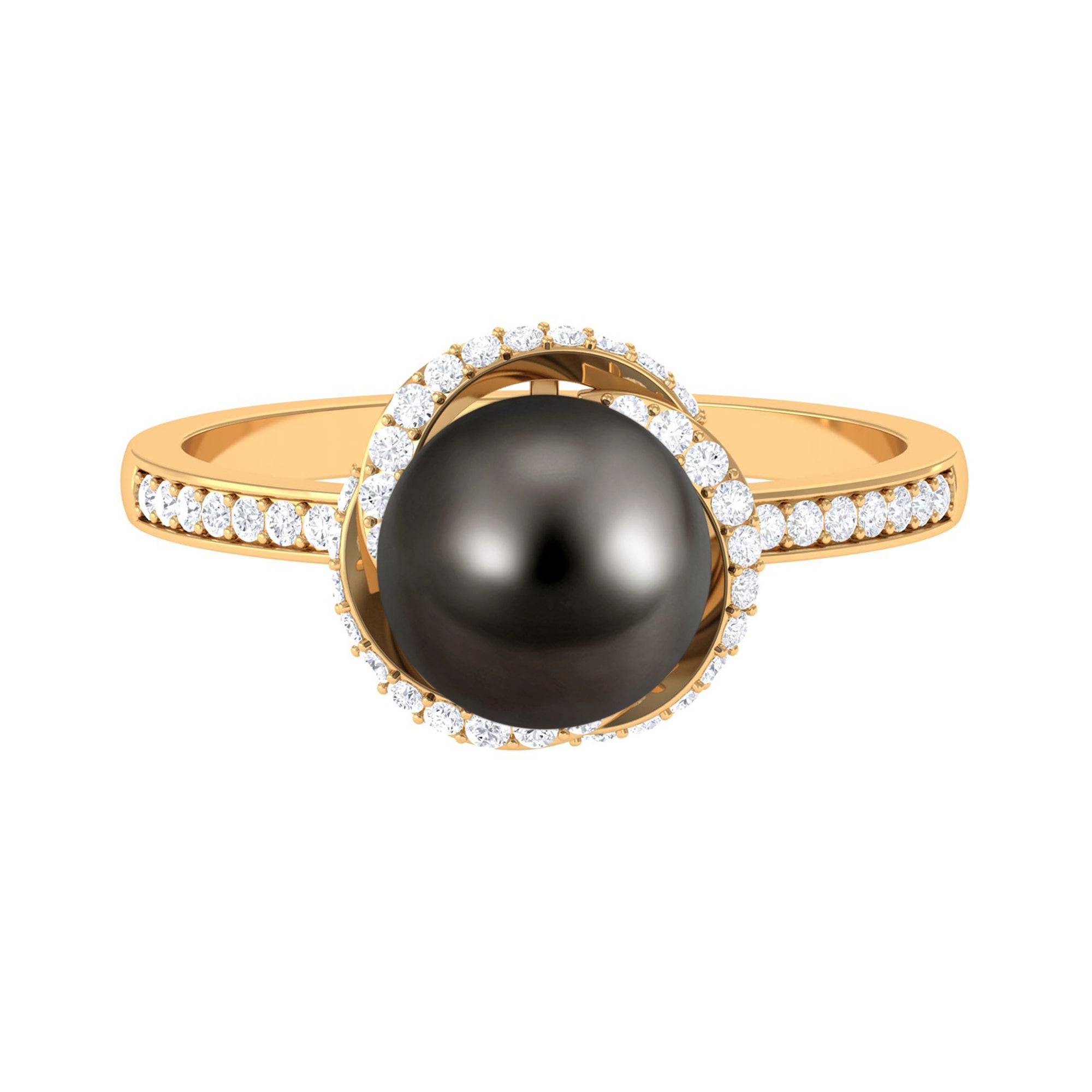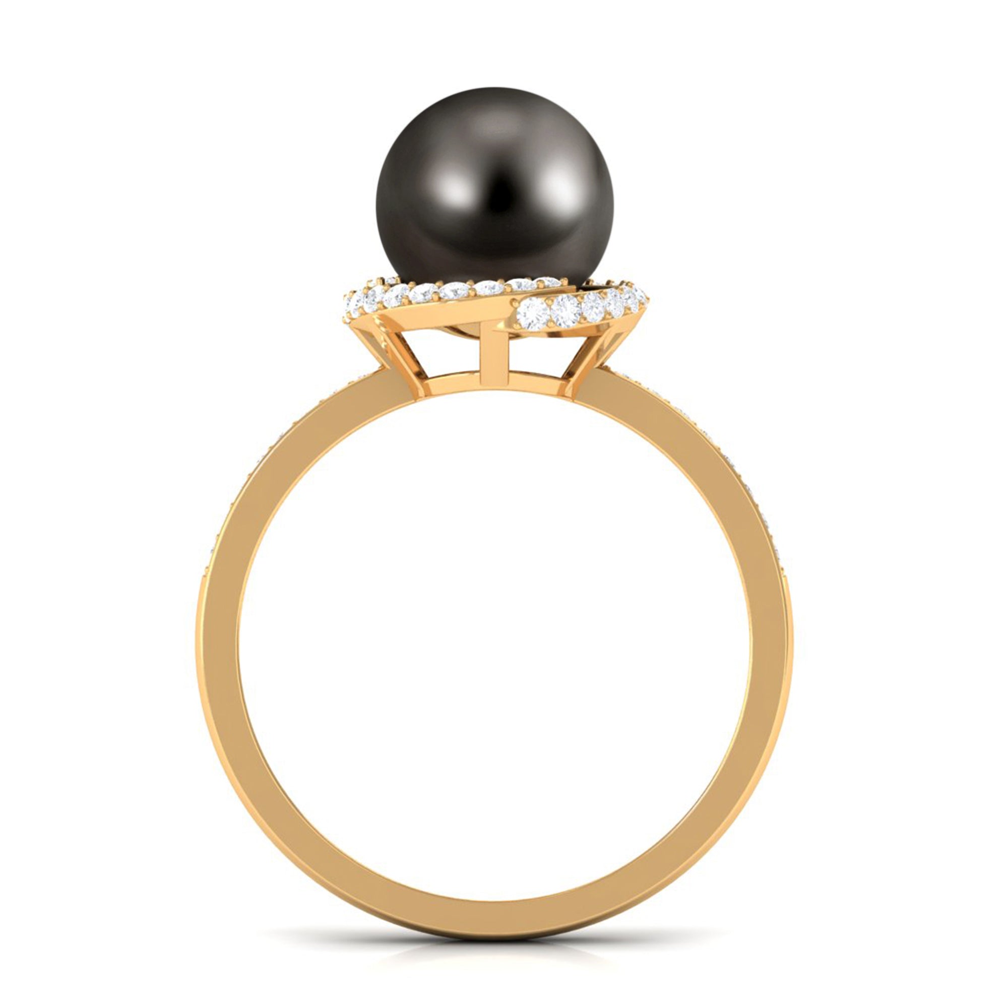 Simple Tahitian Pearl Solitaire Ring with Diamond Swirl
