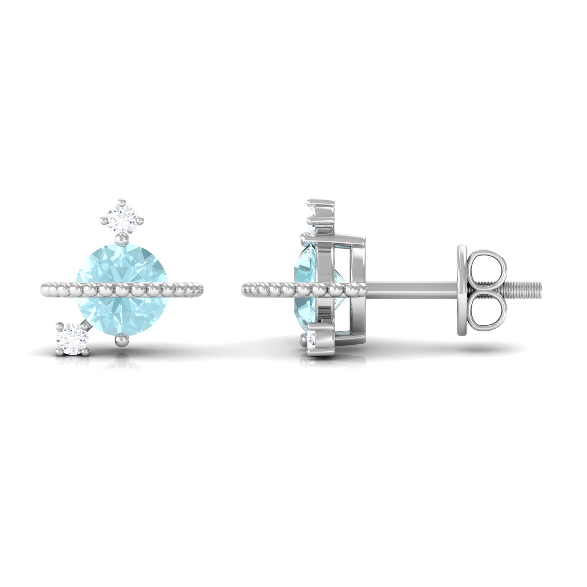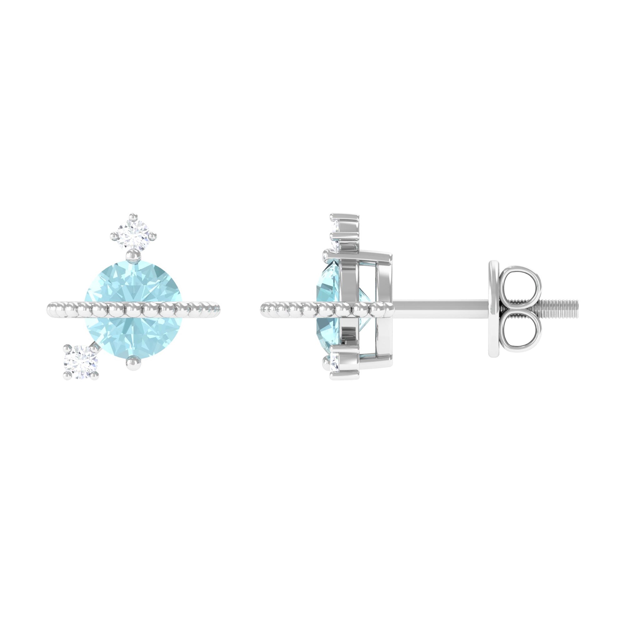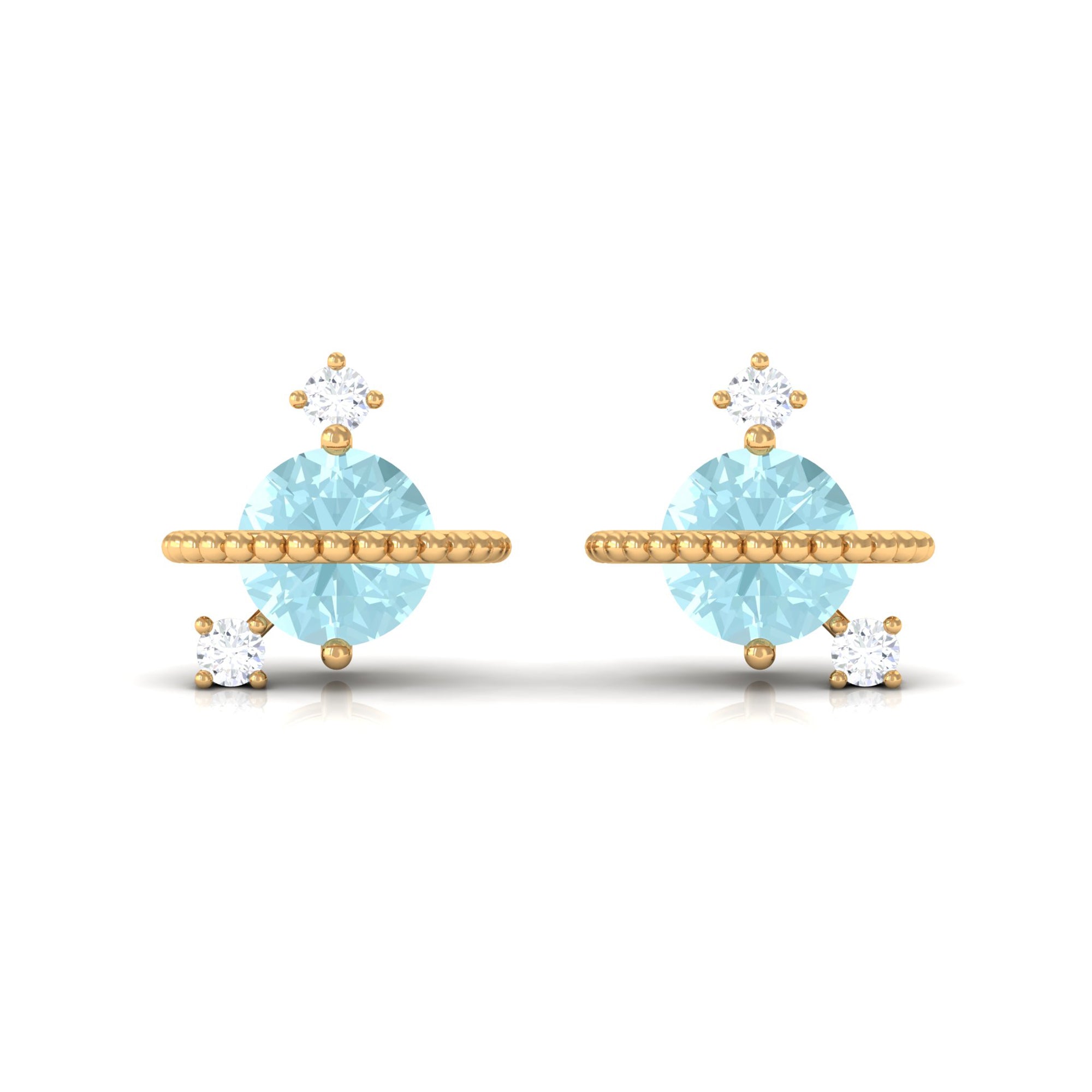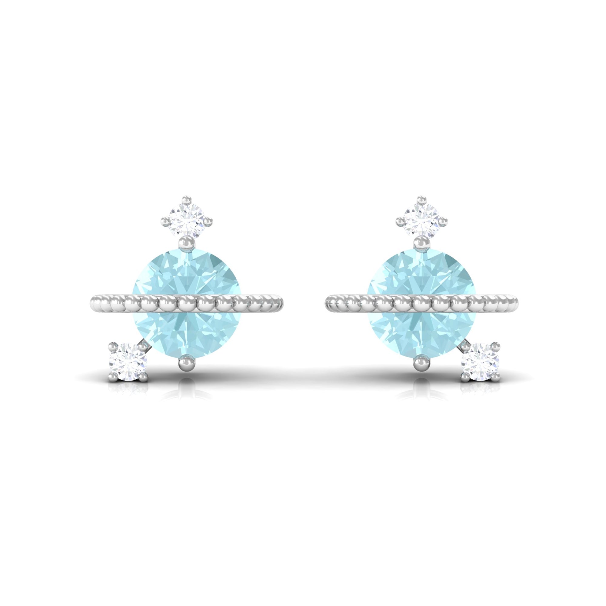 Elevate your glamour with celestial stud earrings featuring round sky blue topaz and sparkling Diamond, a perfect blend of elegance and style.