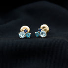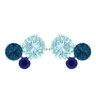 Sky Blue Topaz Three Stone Stud Earrings with London Blue Topaz and Blue Sapphire