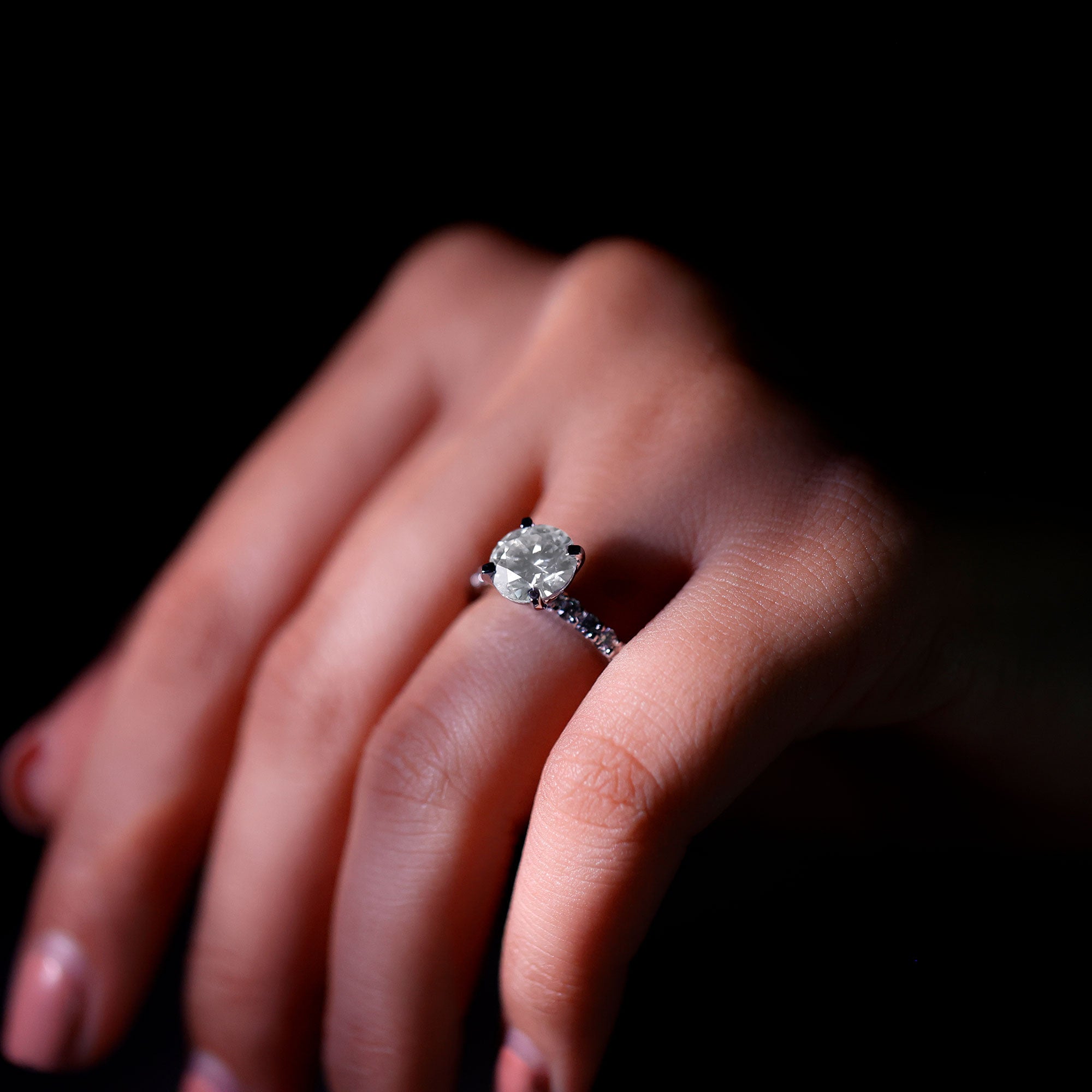 Let your love shine brighter than ever with this exquisite Lab Grown Diamond Engagement Ring, designed to highlight the beauty and brilliance of your special bond. At its heart is a stunning 8 MM round cut lab grown diamond, securely held in peg head setting, radiating fire and brilliance from every angle. This elegant centerpiece is perfectly complemented by a polished band adorned with smaller sparkling lab diamond stones, adding just the right touch of dazzle to enhance the overall design. The high-set profile gives the Solitaire Engagement Ring a striking presence, achieving a perfect balance between modern minimalism and timeless elegance. Crafted with care and precision, this High Set Engagement Ring is made for the woman who appreciates beauty with purpose. Whether worn alone or alongside a wedding band, it stands as a radiant symbol of everlasting commitment. Built to endure and captivate, this Round Engagement Ring is a declaration of love that transcends trends and time. Let every sparkle remind you of the promise it embodies - enduring love, shared dreams, and a lifetime together. This 2 CT Diamond Ring is thoughtfully packaged in a signature jewelry box and comes with a IGI gemstone certificate, making it gift-ready for your special occasion.