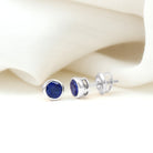 Solitaire 5MM Lab Created Blue Sapphire Stud Earrings in Bezel Setting
