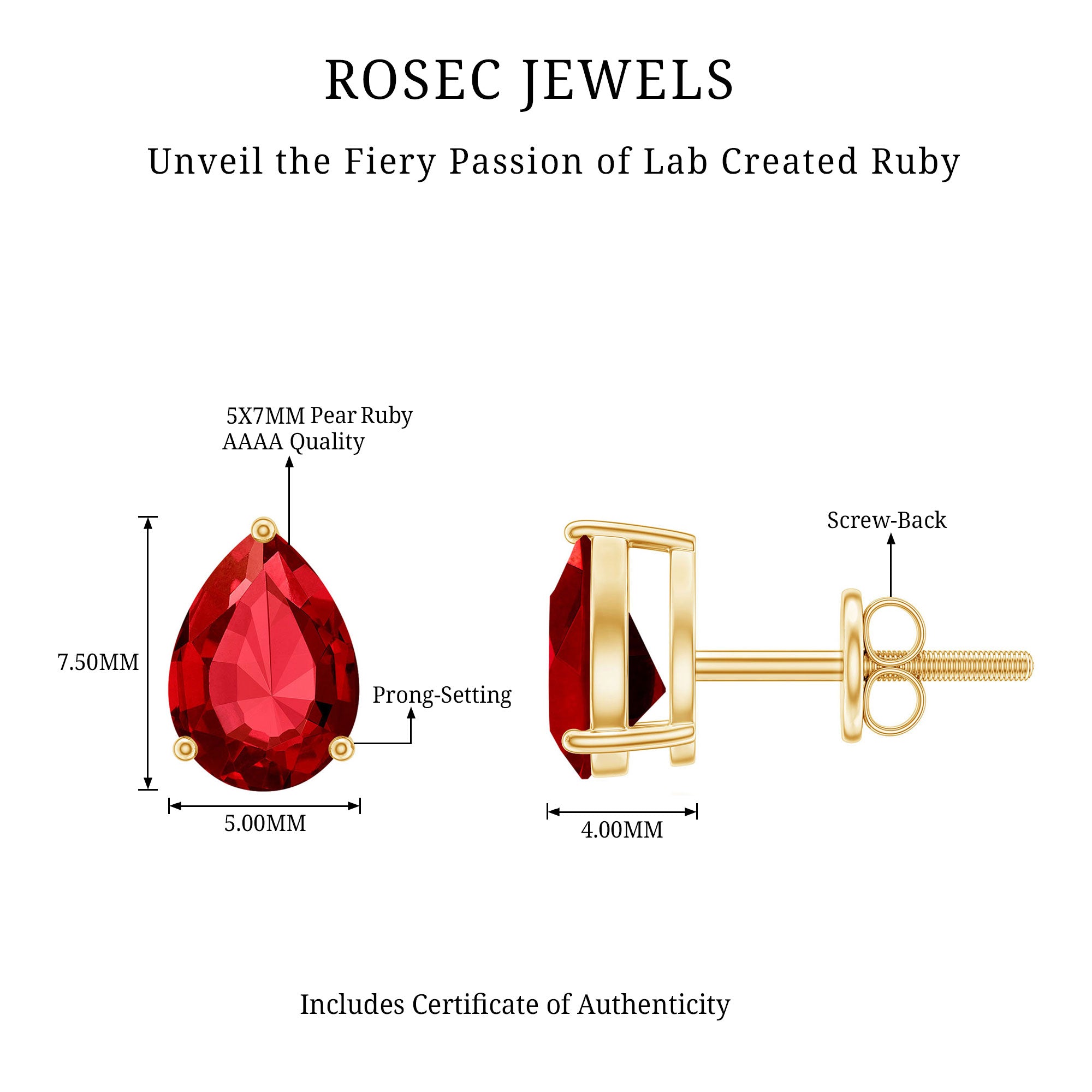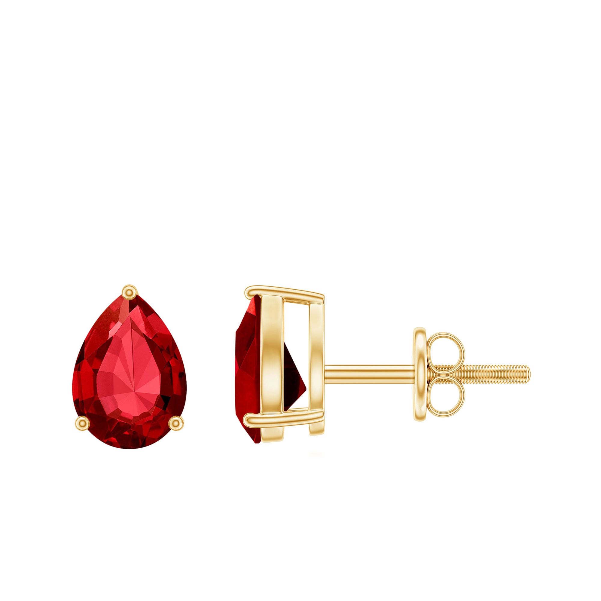 Even the simplest pieces can leave a lasting impression, and these Lab Created Ruby Earrings do just that. They are curated with 5X7 MM pear shaped lab created ruby, set securely in a 3-prong setting that allows the deep red hue to shine while giving the stone a modern and elegant look. Designed in a classic teardrop shape, these Ruby Stud Earrings offer a perfect balance of sophistication and versatility. They are lightweight and comfortable, with screw back closures that provide a secure fit, making them ideal for everyday wear or special occasions. From morning routines to evening gatherings, these Solitaire Stud Earrings add a subtle yet striking sparkle that enhances any outfit. Carefully crafted, these Pear Shaped Earrings arrive in a signature jewelry box along with a certificate of authenticity, making them a thoughtful gift or a treasured personal keepsake. Their delicate design, vibrant color, and comfortable fit create a perfect blend of elegance and sentiment, making them a versatile addition to any jewelry collection. These Teardrop Earrings bring both style and meaning to every look, offering everyday luxury with a touch of significance.