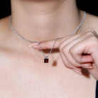 Solitaire 6 MM Garnet Princess Cut Pendant Necklace with Chain