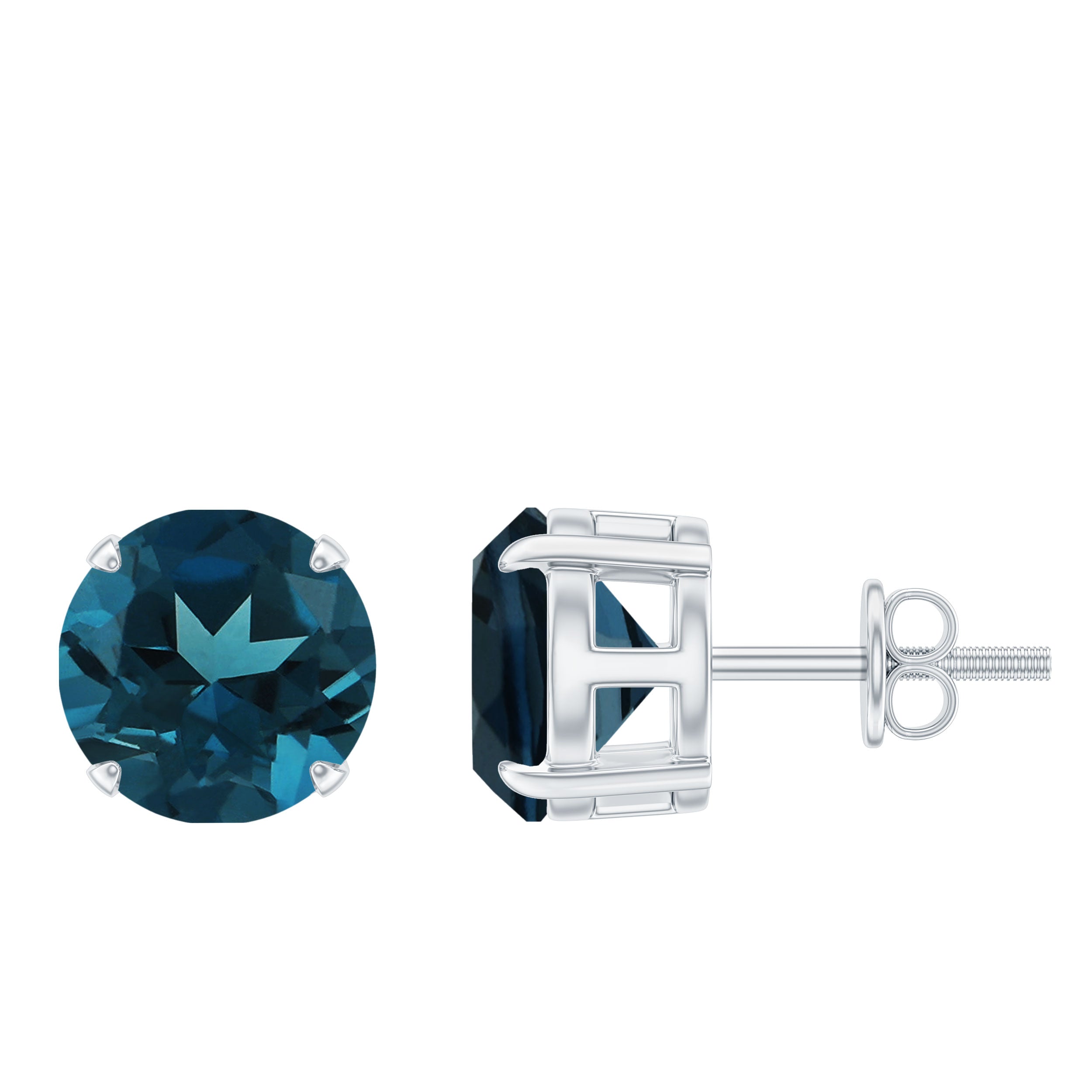 Solitaire 8MM London Blue Topaz Stud Earrings with Screw Backs
