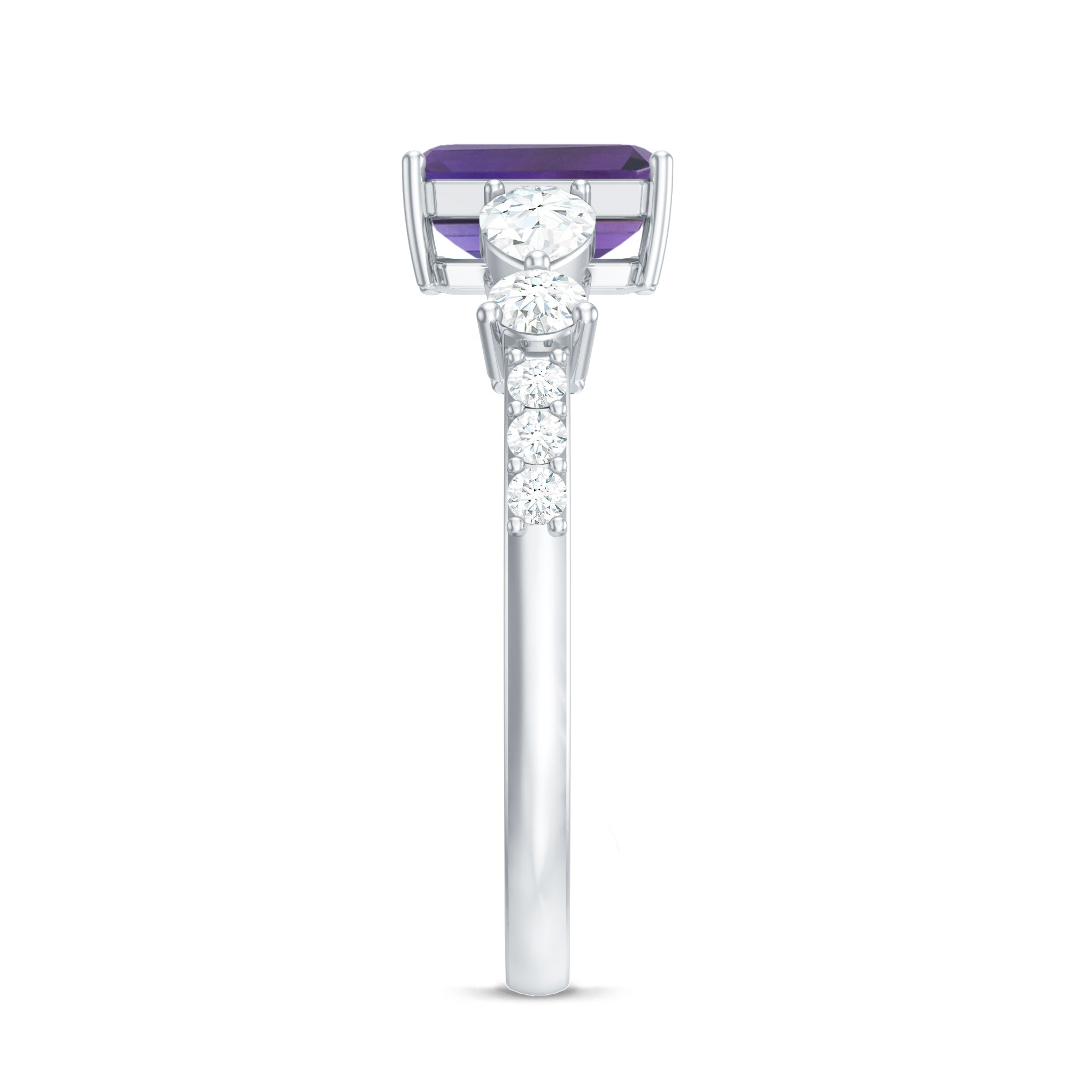 Solitaire Amethyst Engagement Ring with Moissanite Side Stones