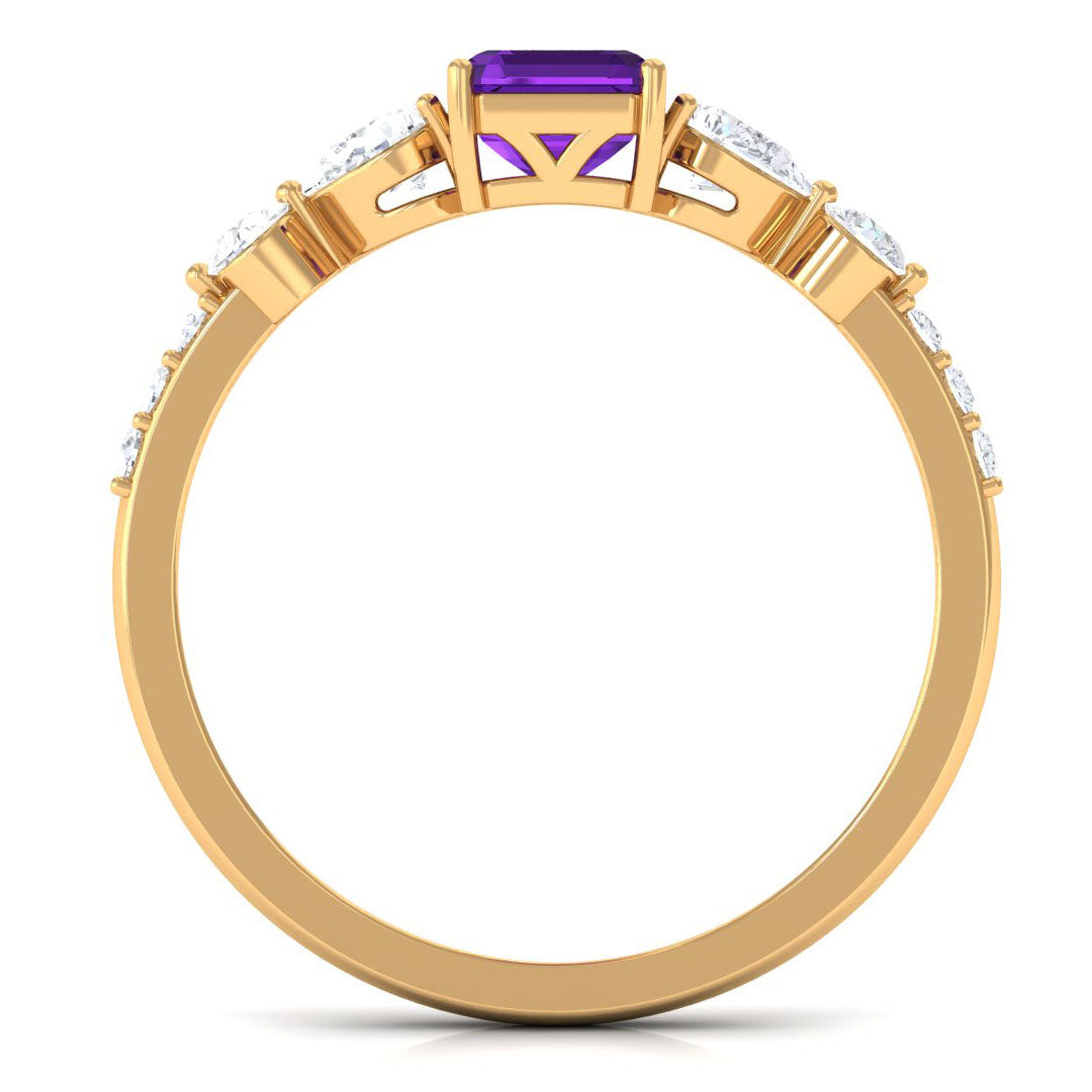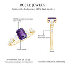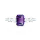 Express your love to your beloved with this Solitaire Amethyst Engagement Ring. This Classic Engagement Ring is decorated with Octagon Cut Amethyst as a solitaire in a prong setting with Round and Pear Cut Moissanite in a side stone setting. This February Birthstone Ring is all your need to make her feel special.