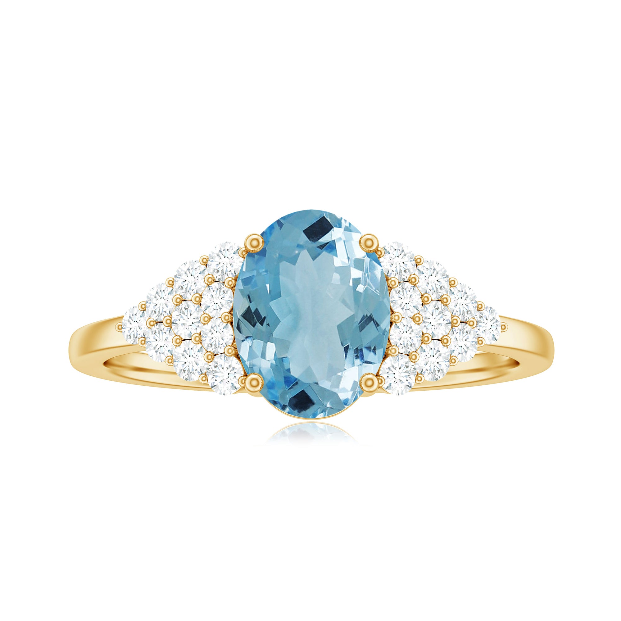 Solitaire Aquamarine Oval Engagement Ring with Diamond