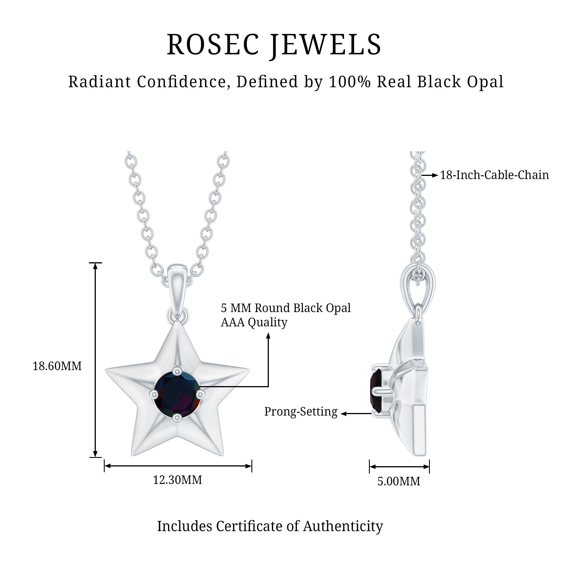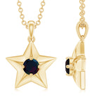 Add a touch of sparkle to your outfit with this charming Black Opal Pendant, adorned with a Round Cut Black Opal in a Prong Setting on a Star Pendant Necklace. Crafted in Gold, this Real Black Opal Star Pendant is a glittering piece of jewelry that will elevate your style and add a touch of elegance and glamour to your look. Get ready to shine with this dazzling and adorable pendant.