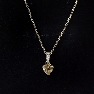 Solitaire Citrine Diamond Heart Locket with Silver Chain