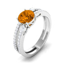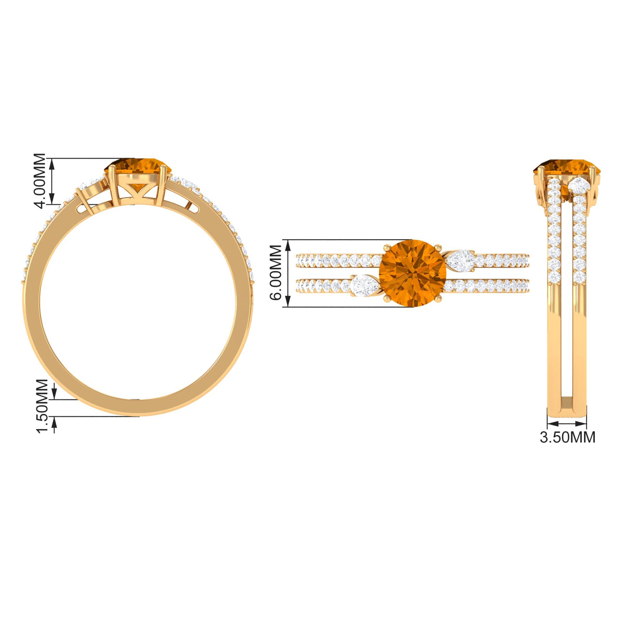 Solitaire Citrine Double Band Engagement Ring with Diamond