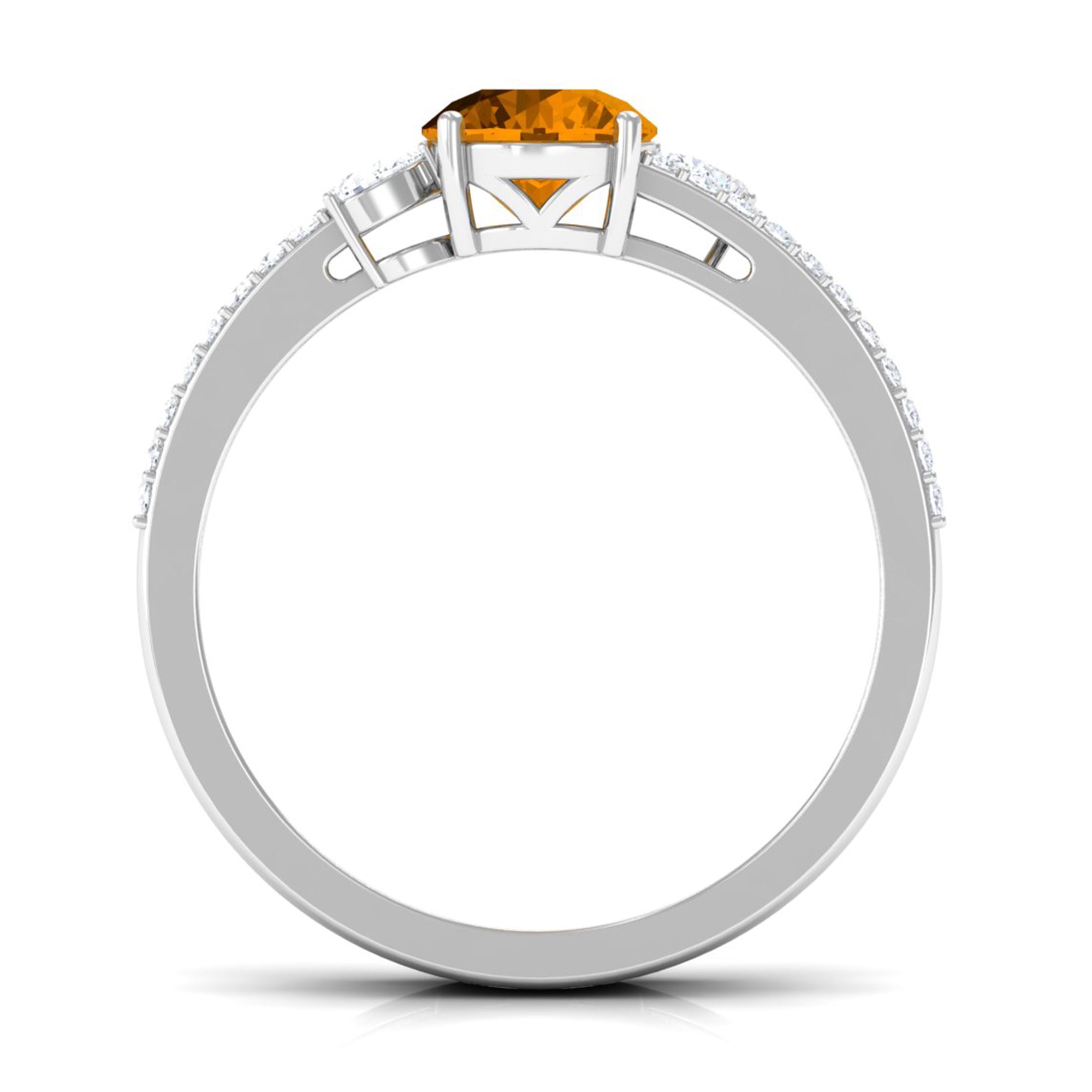 Make her feel special with this breathtaking Citrine Engagement Ring. The Solitaire ring features a dazzling round Citrine solitaire on a double band shank delicately decorated with sparkling pear and round Diamond stones. This stunning double-band ring is the perfect symbol of your love and commitment, sure to take your partners breath away. Celebrate your future together with this beautiful and meaningful piece of jewelry.