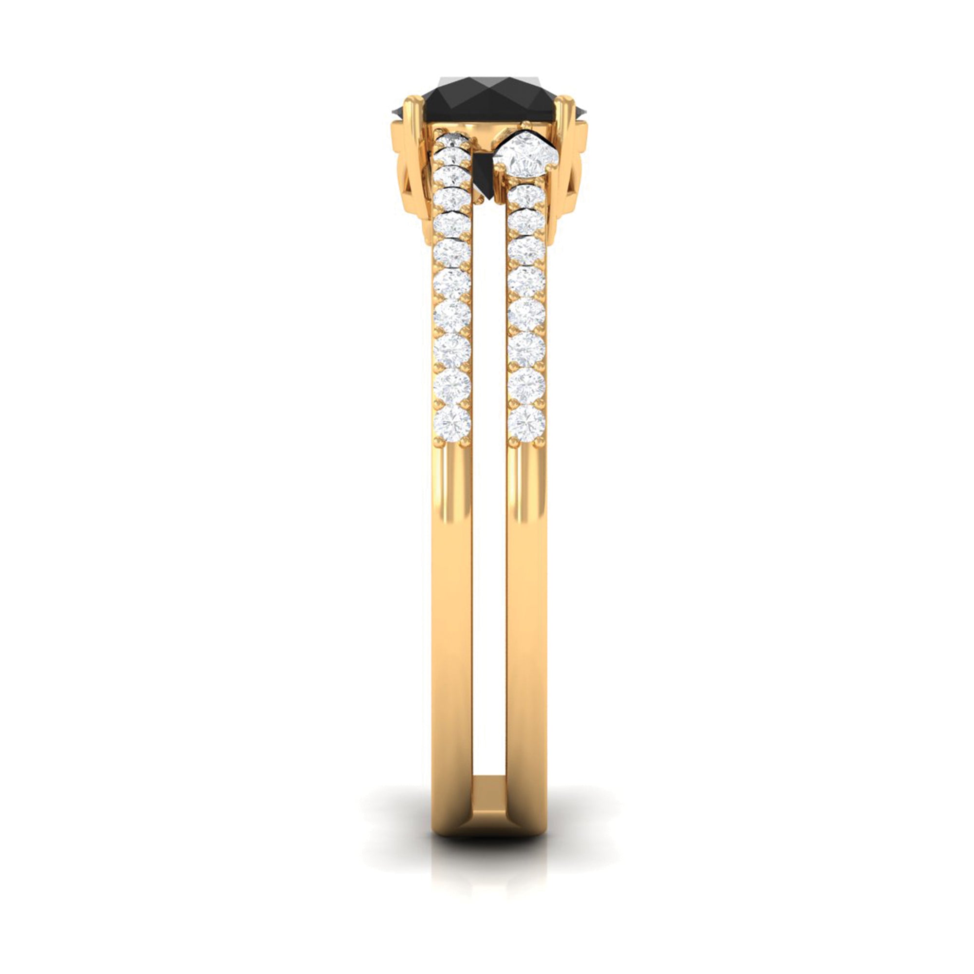 Solitaire Created Black Diamond and Diamond Double Band Engagement Ring