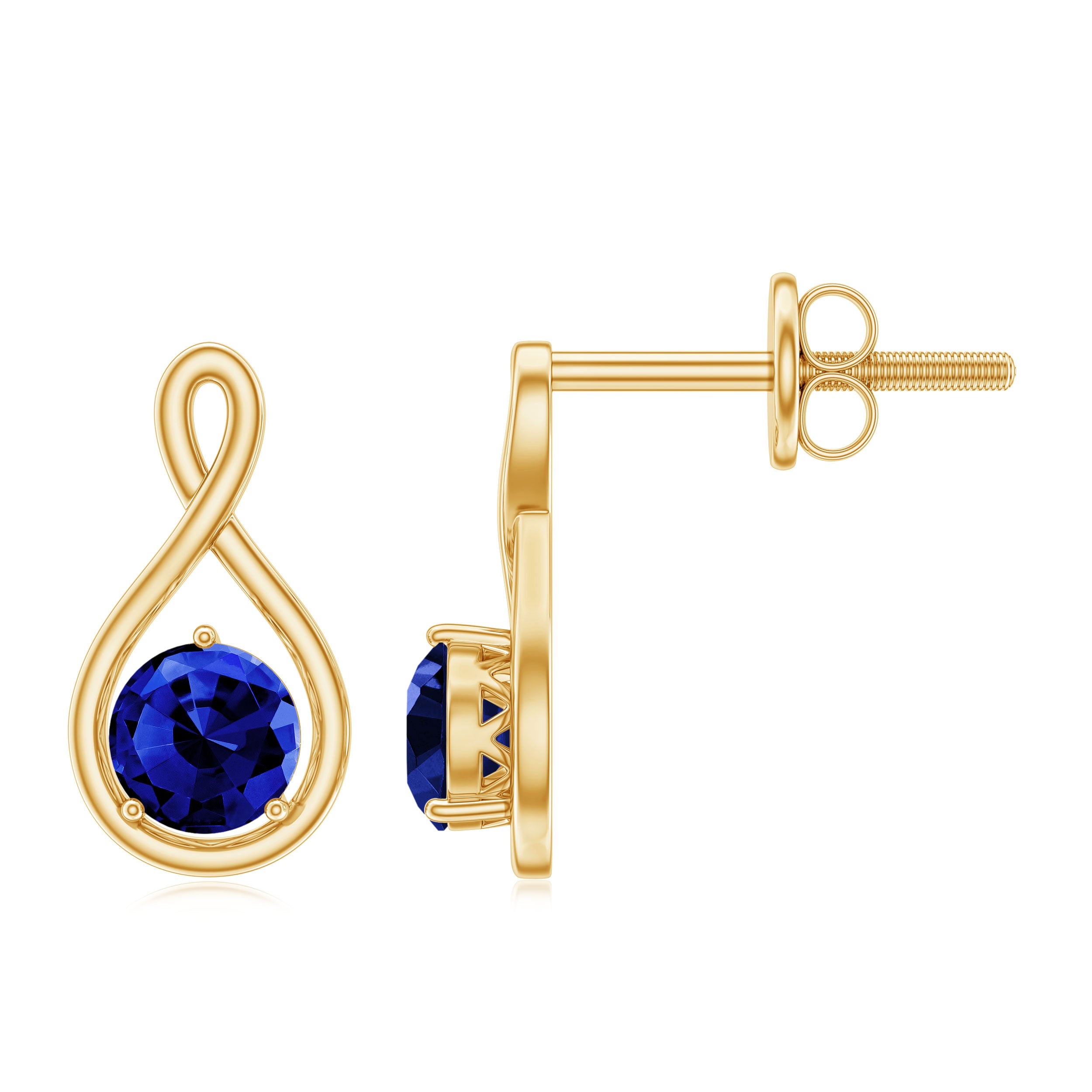 These Infinity Stud Earrings feature a secure Screw Back design and are delicately set in a classic Prong Setting. The sparkling round cut created blue sapphire adds a touch of sophistication and brilliance to any outfit.