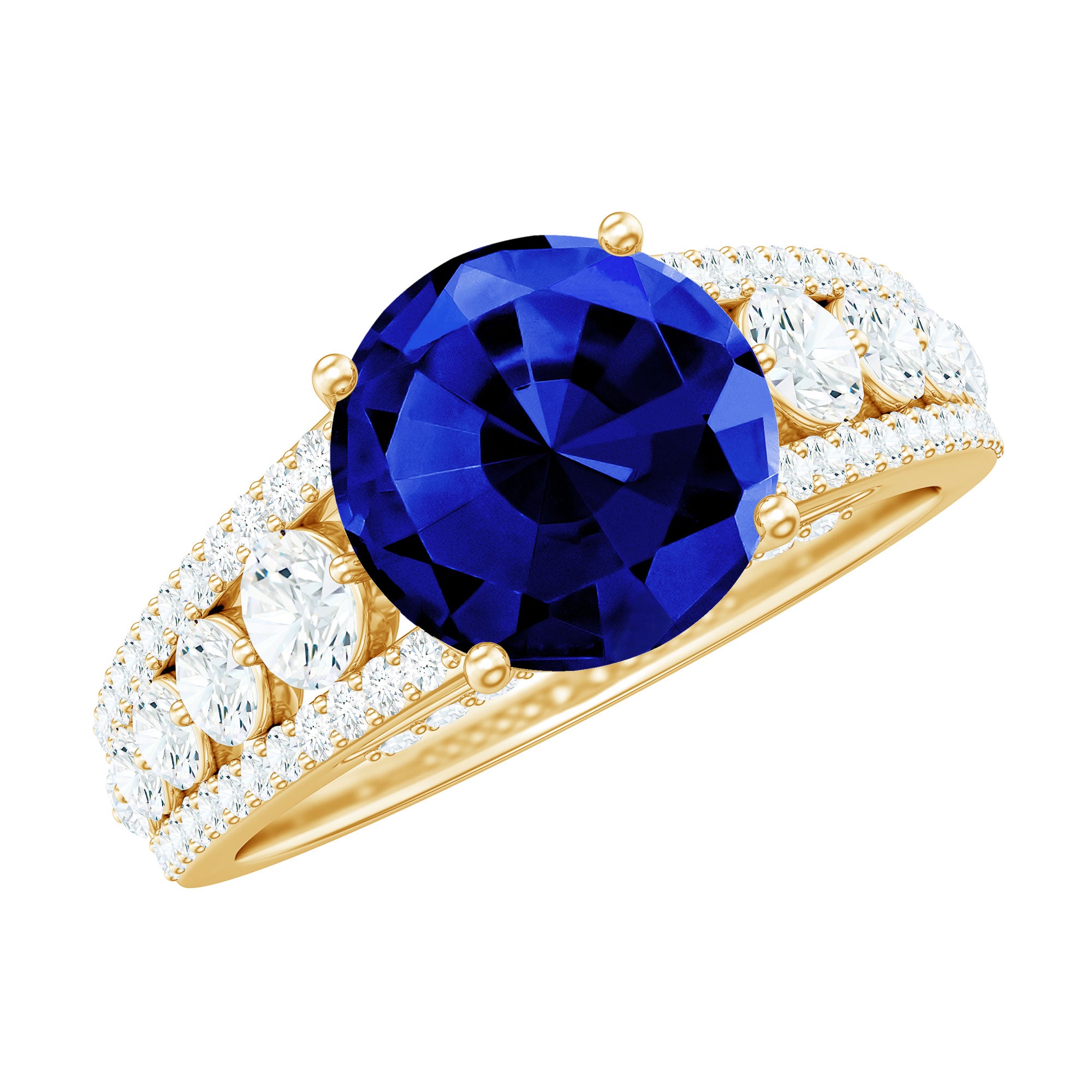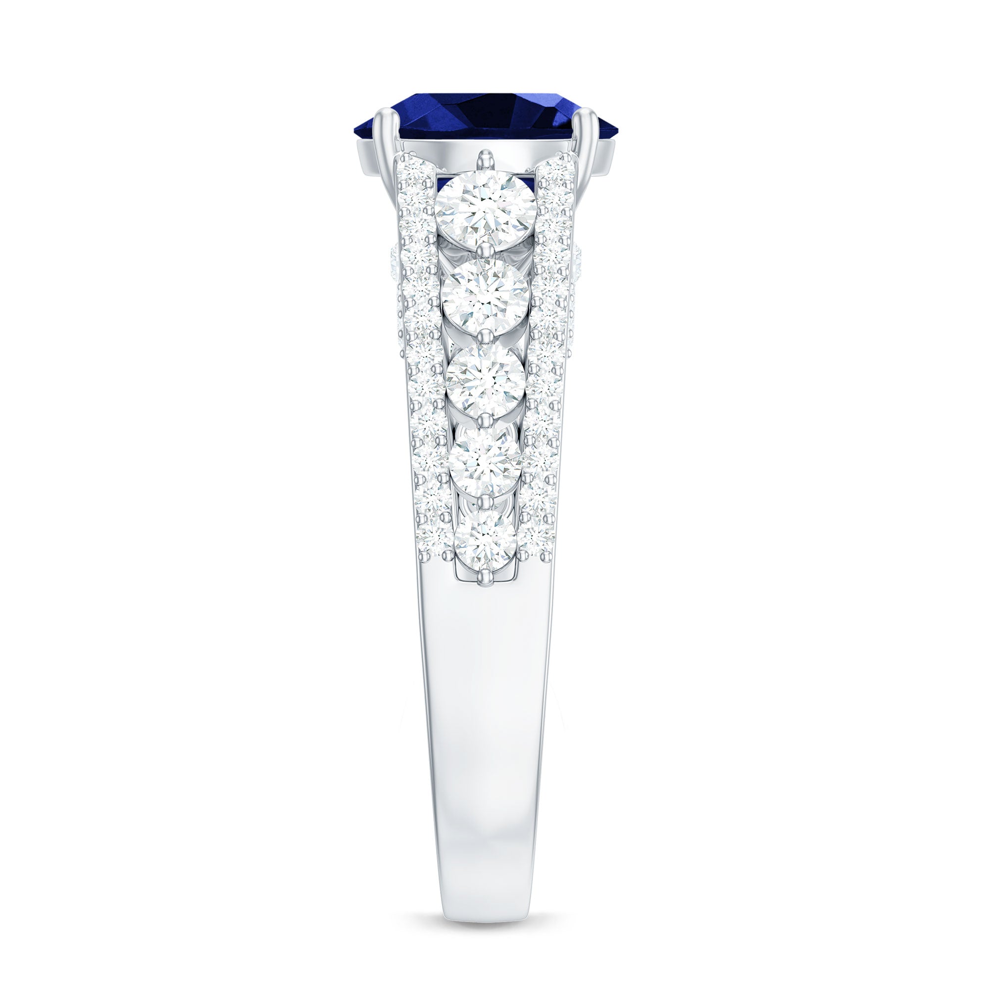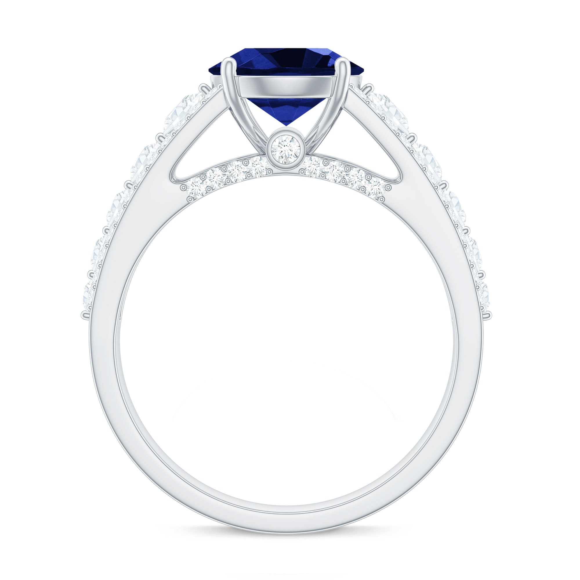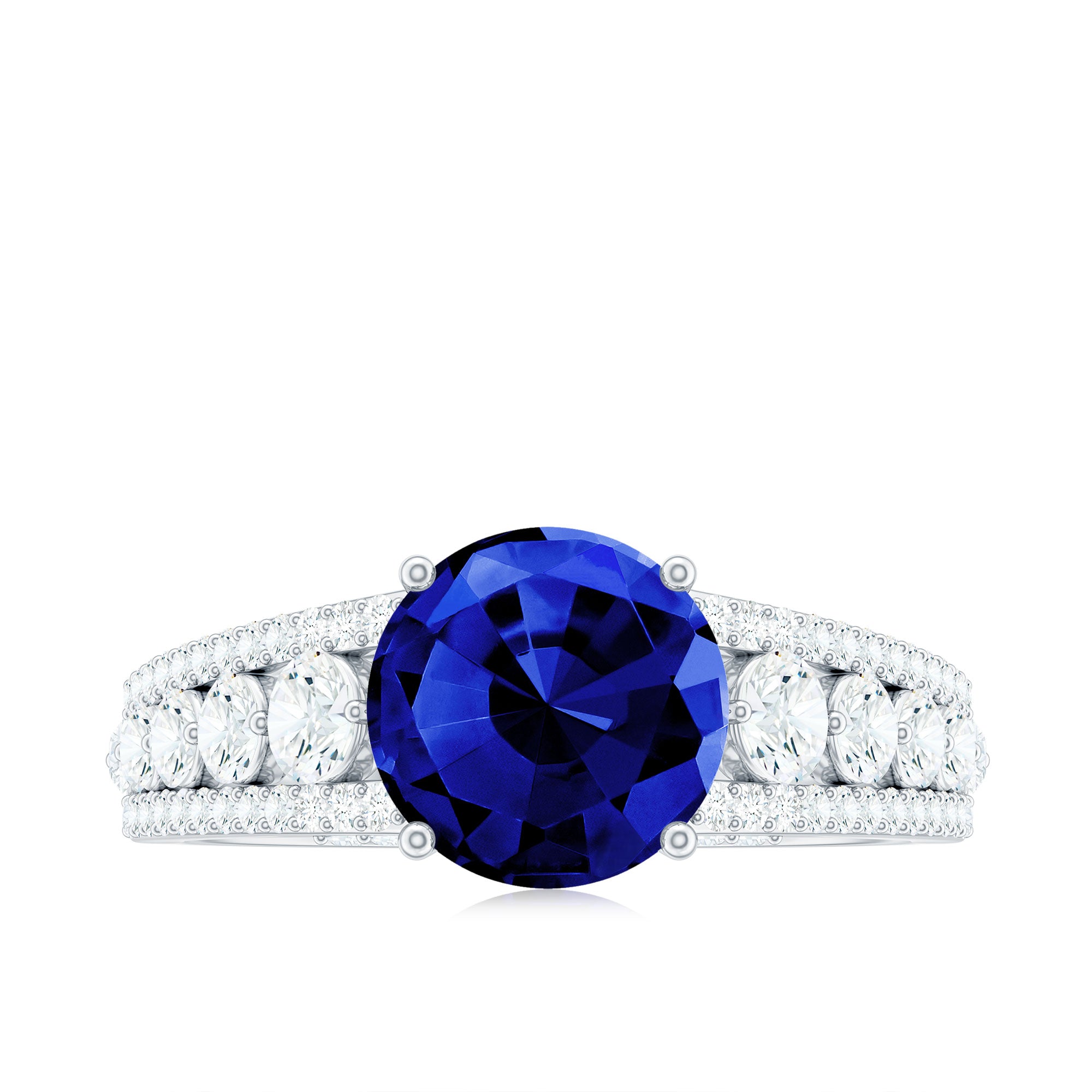 Solitaire Created Blue Sapphire Statement Engagement Ring with Moissanite