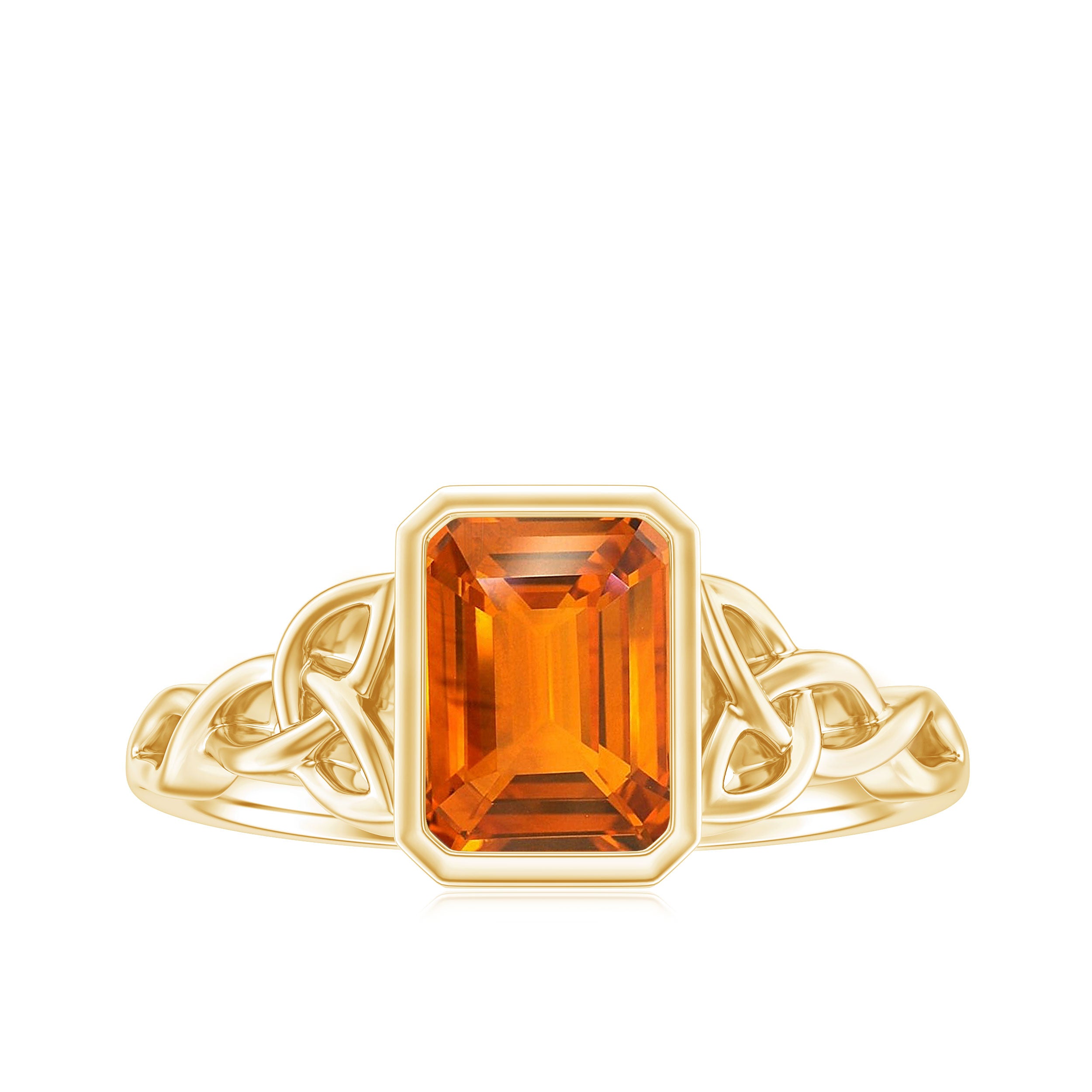 Looking at this Celtic Engagement Ring then you are probably looking for something special and unique, grab this Solitaire Ring embellished with Emerald Cut Lab Created Yellow Sapphire flanked by open Celtic Knots to symbolize your everlasting love for her. Additionally, Round Shape Diamond studded on the bridge of the ring adds a unique look.