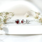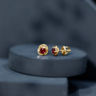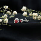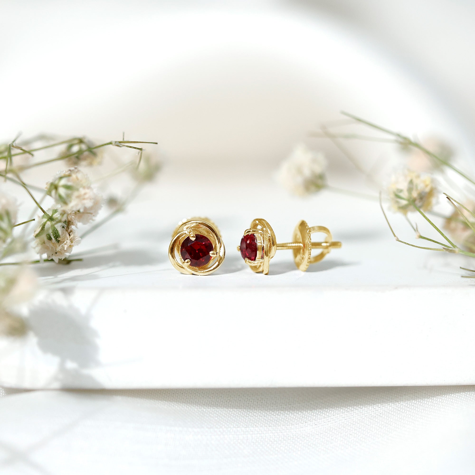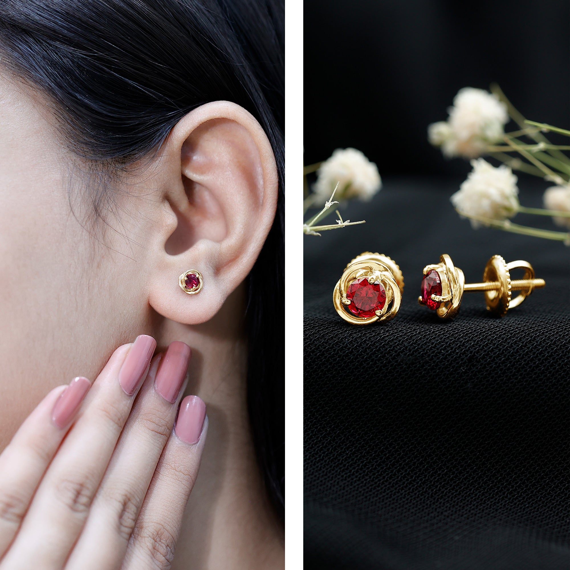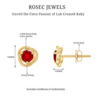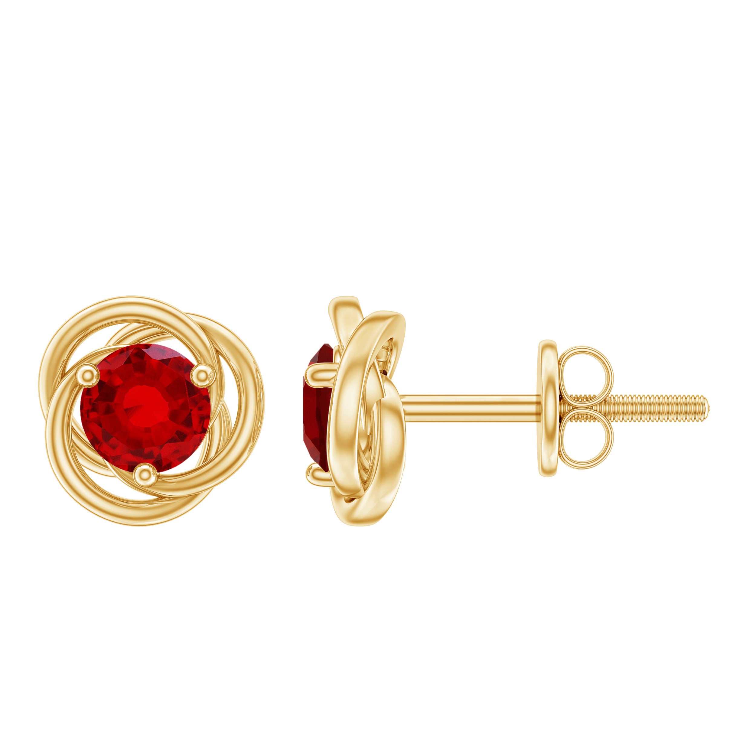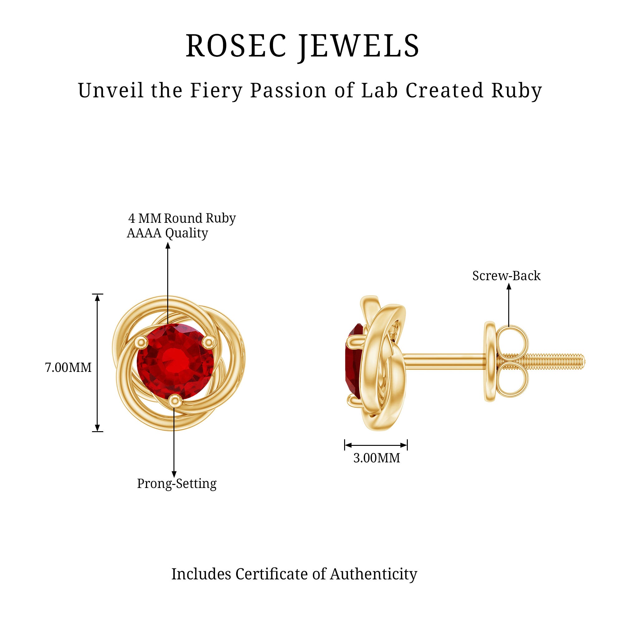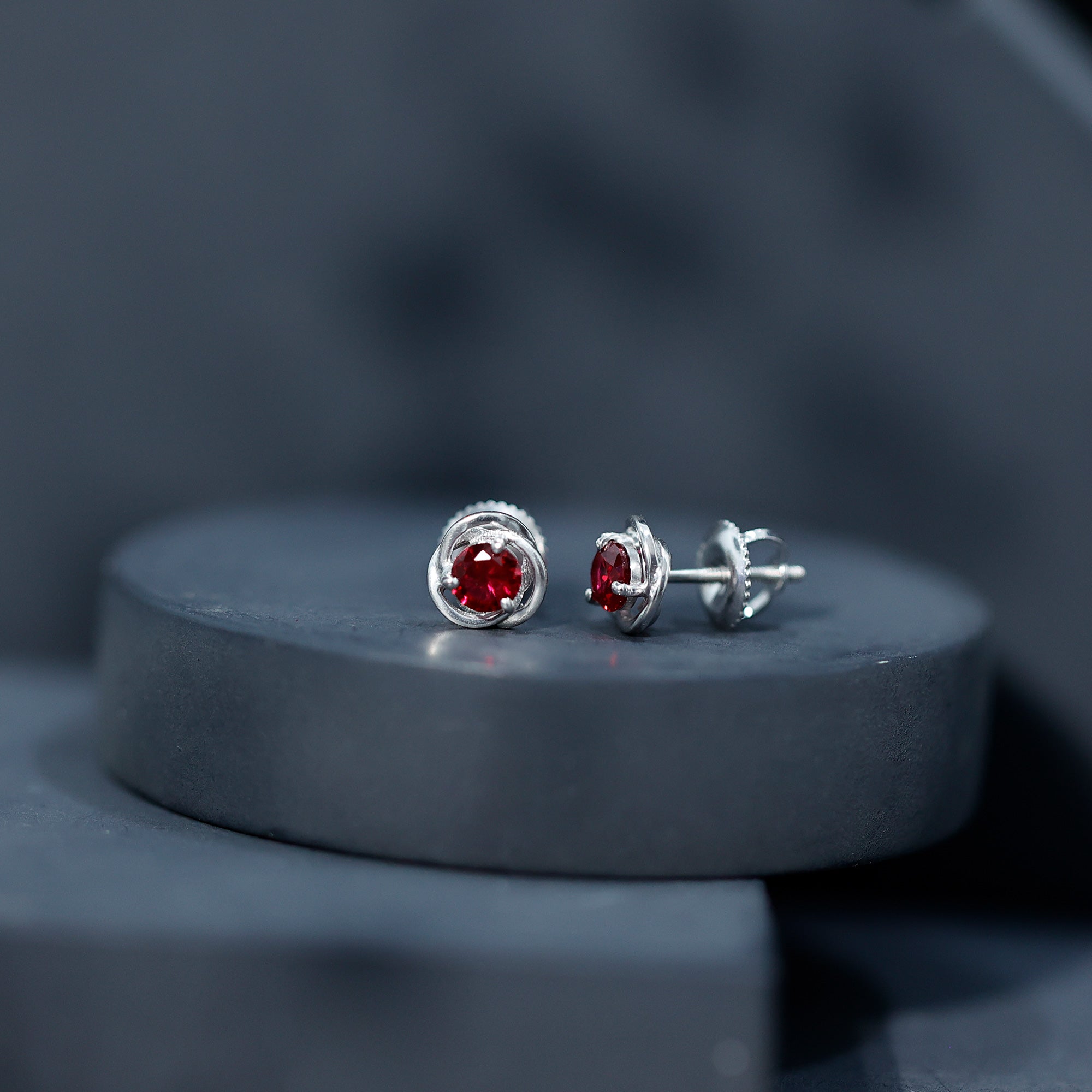 Solitaire Created Ruby Swirl Stud Earrings in 3 Prong Setting