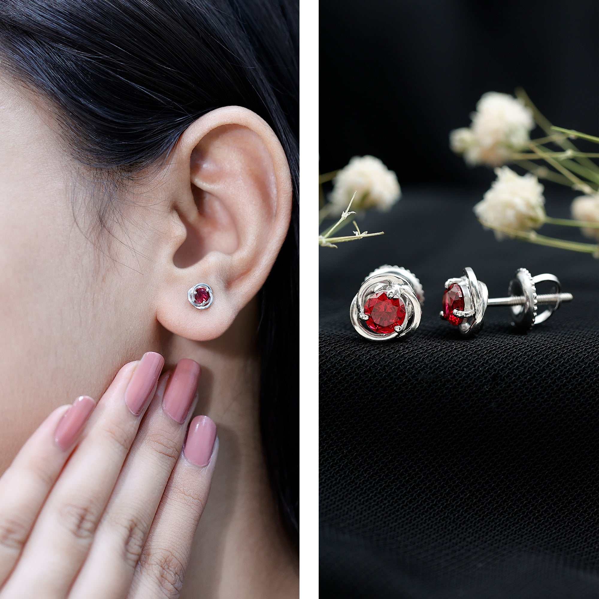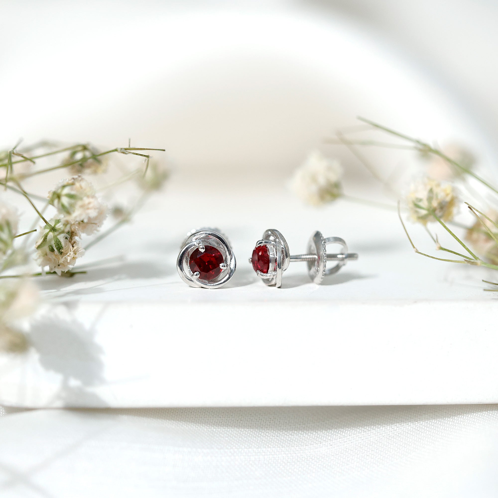 Add a touch of brilliance to your casual wear with these Created Ruby Simple Swirl Earrings. The Round Cut Created Ruby, delicately set in Prong Setting, perfectly complements your office jewelry.