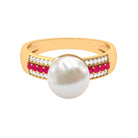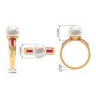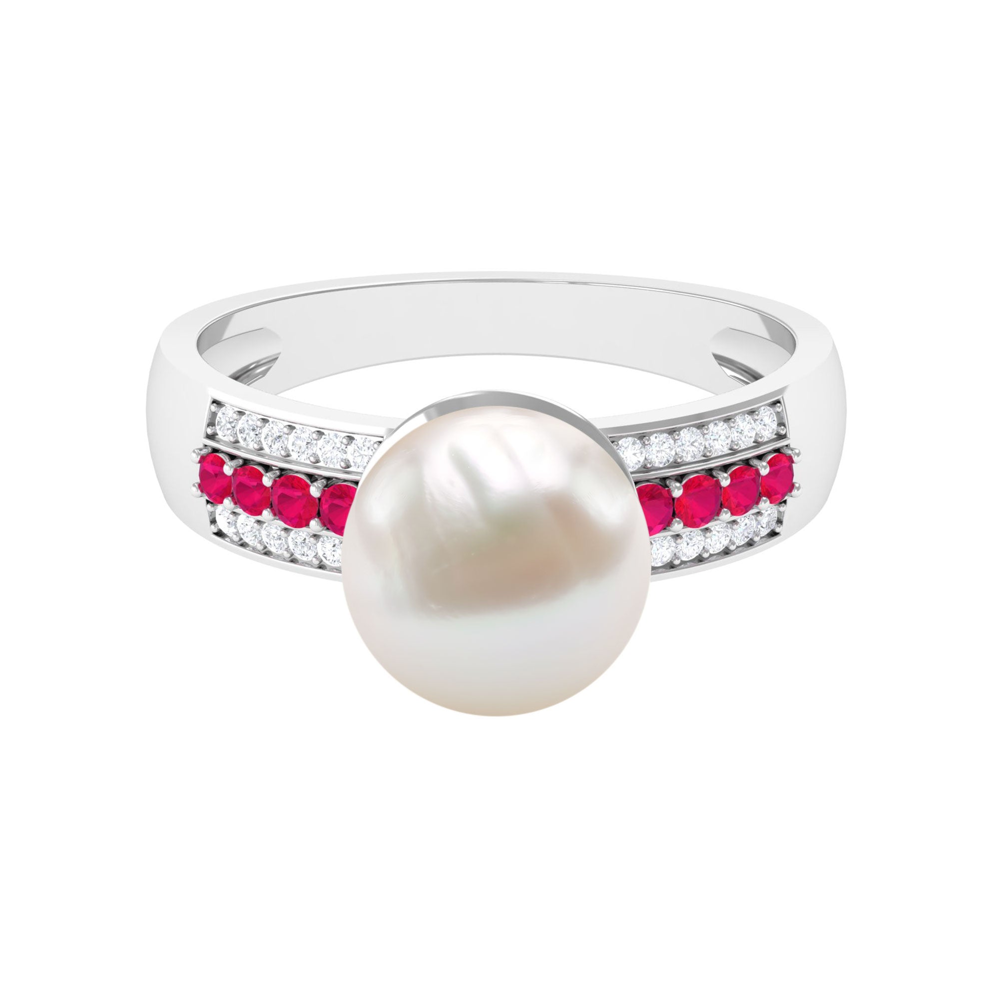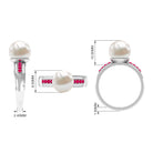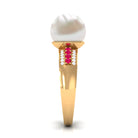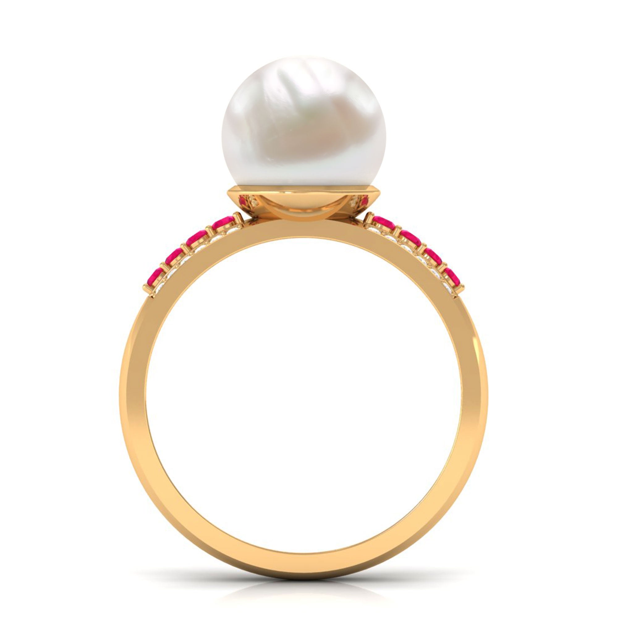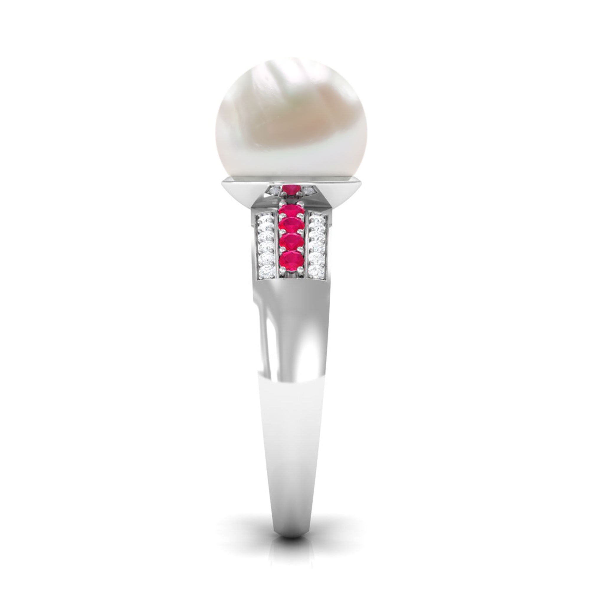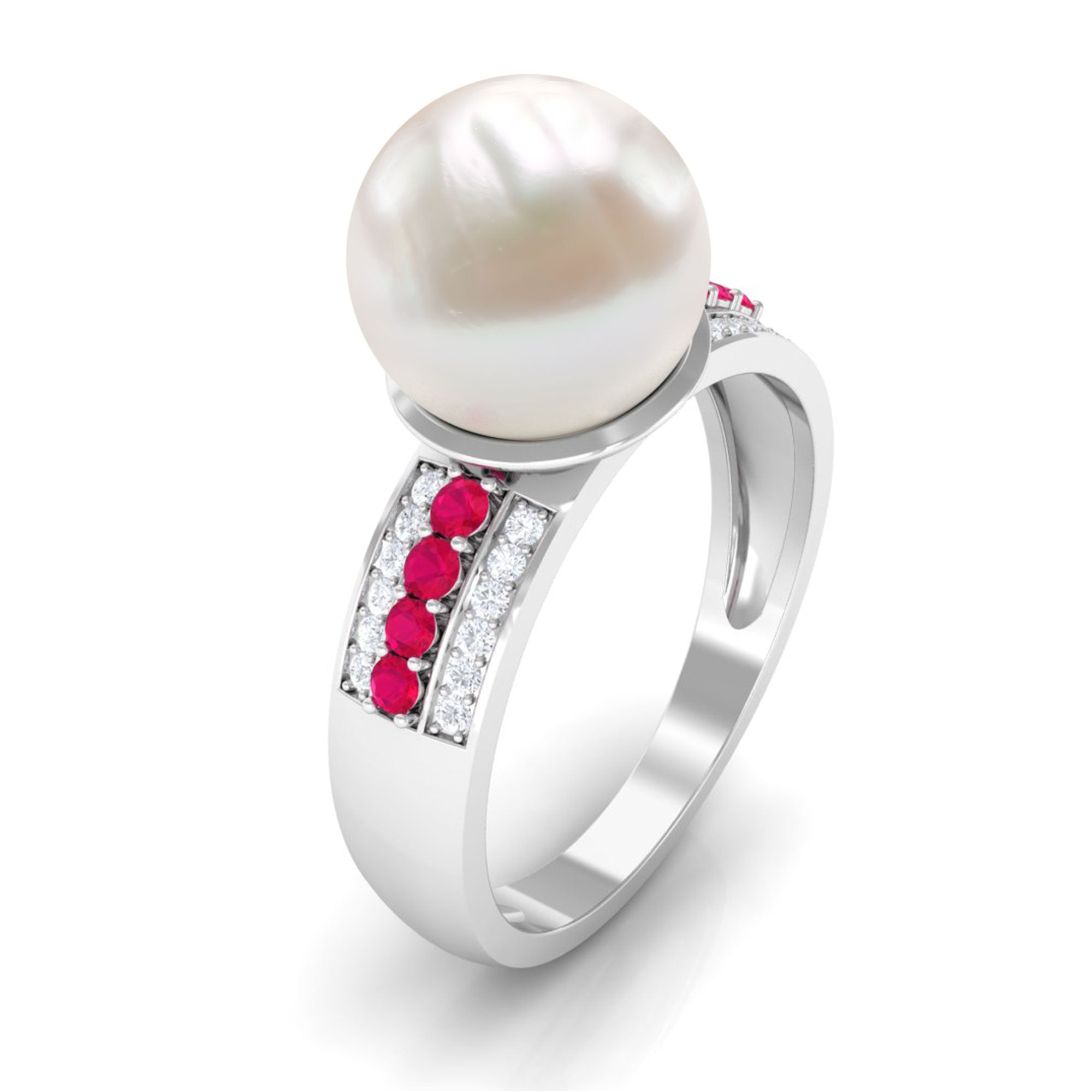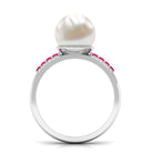 Solitaire Freshwater Pearl Engagement Ring with Moissanite and Ruby Side Stones