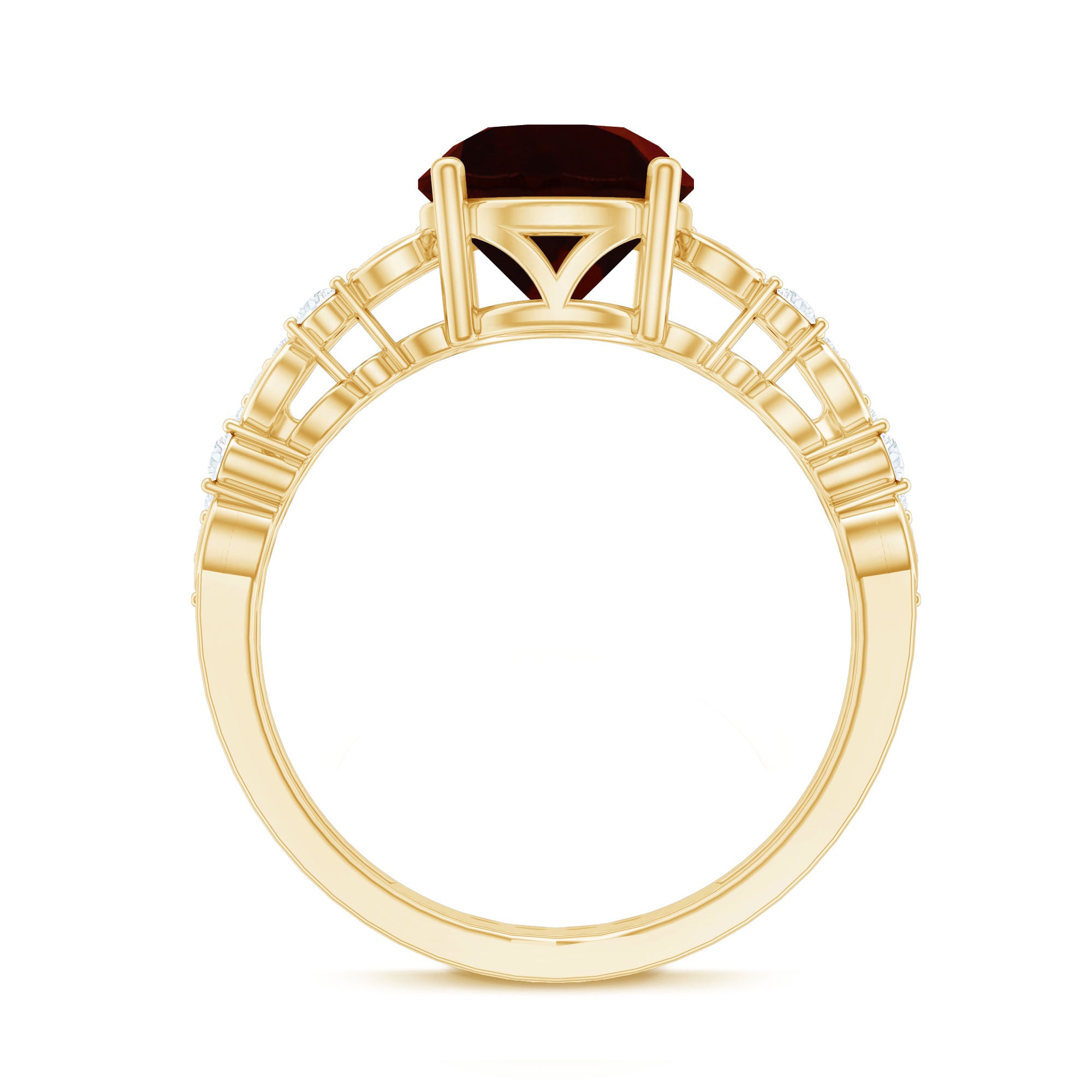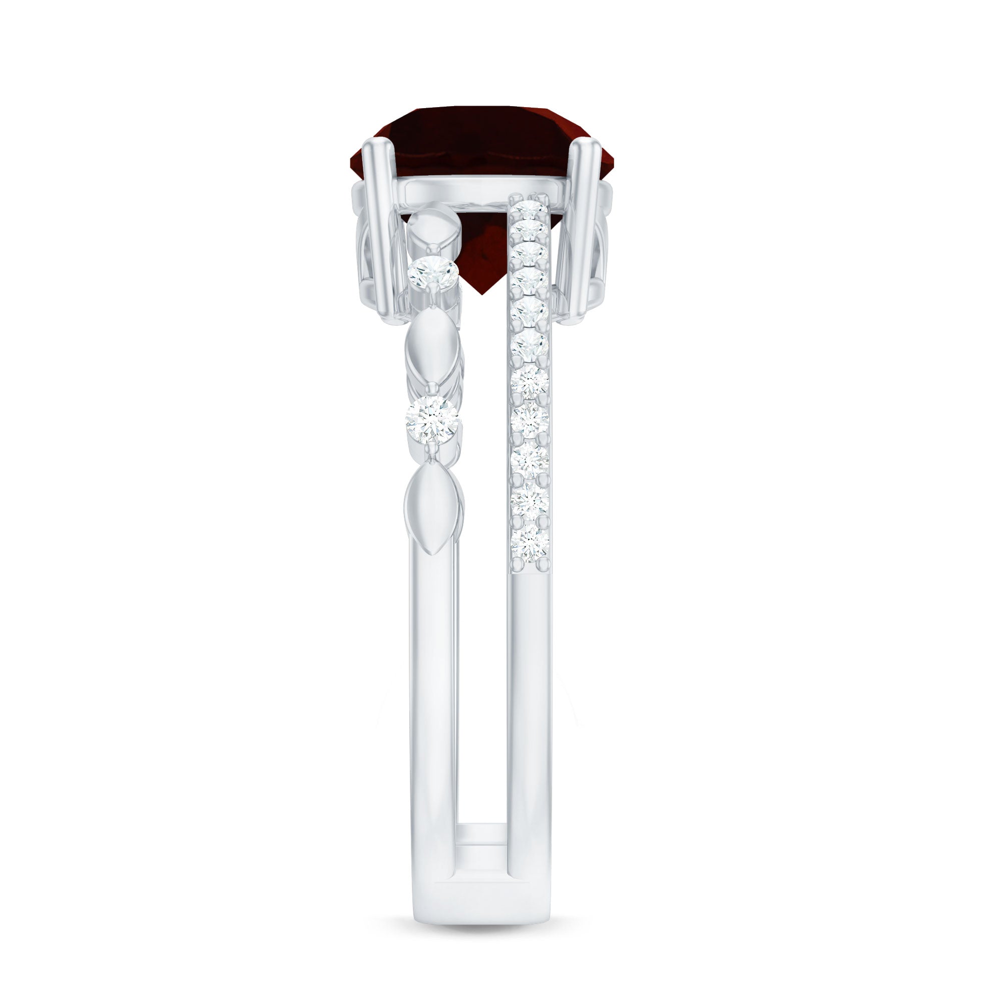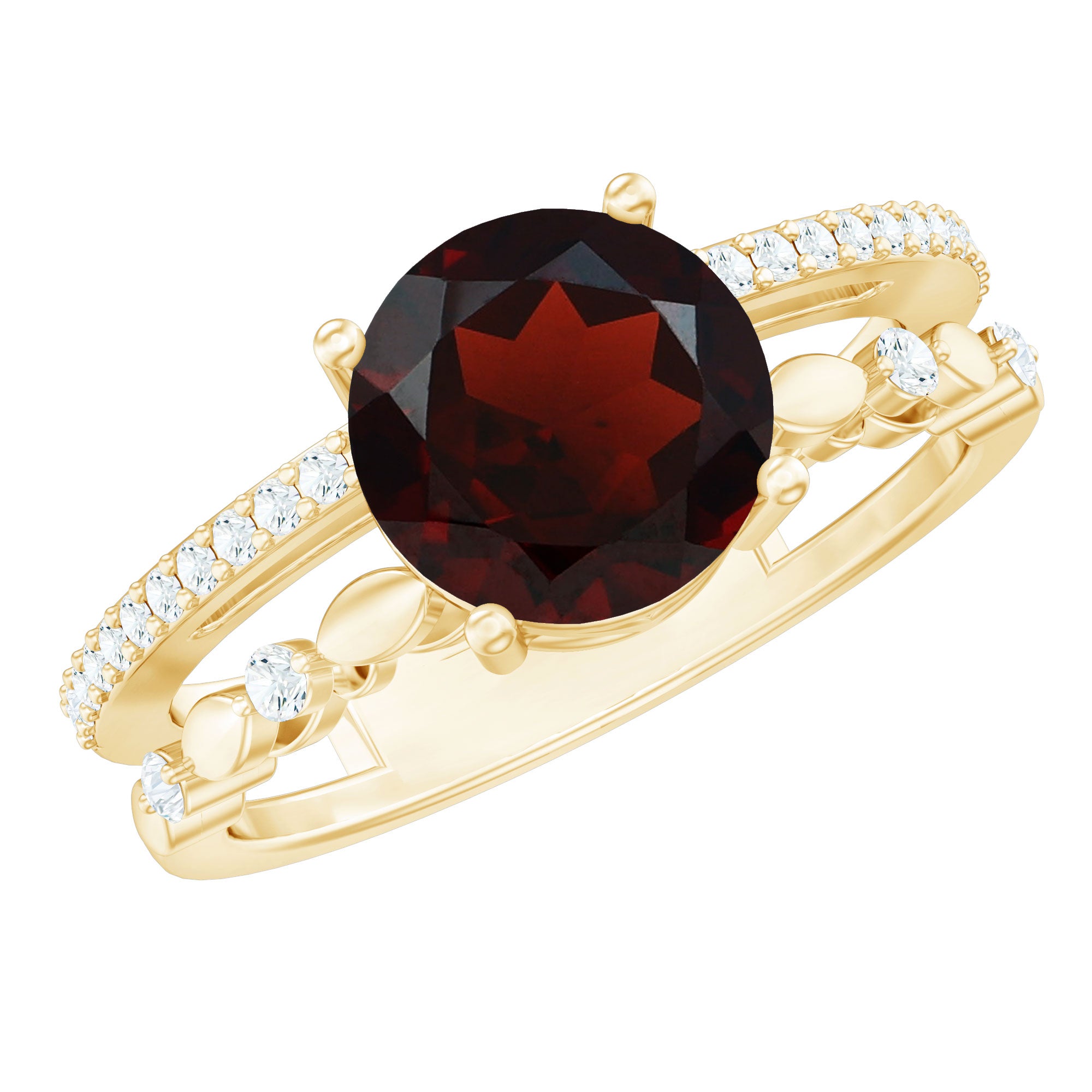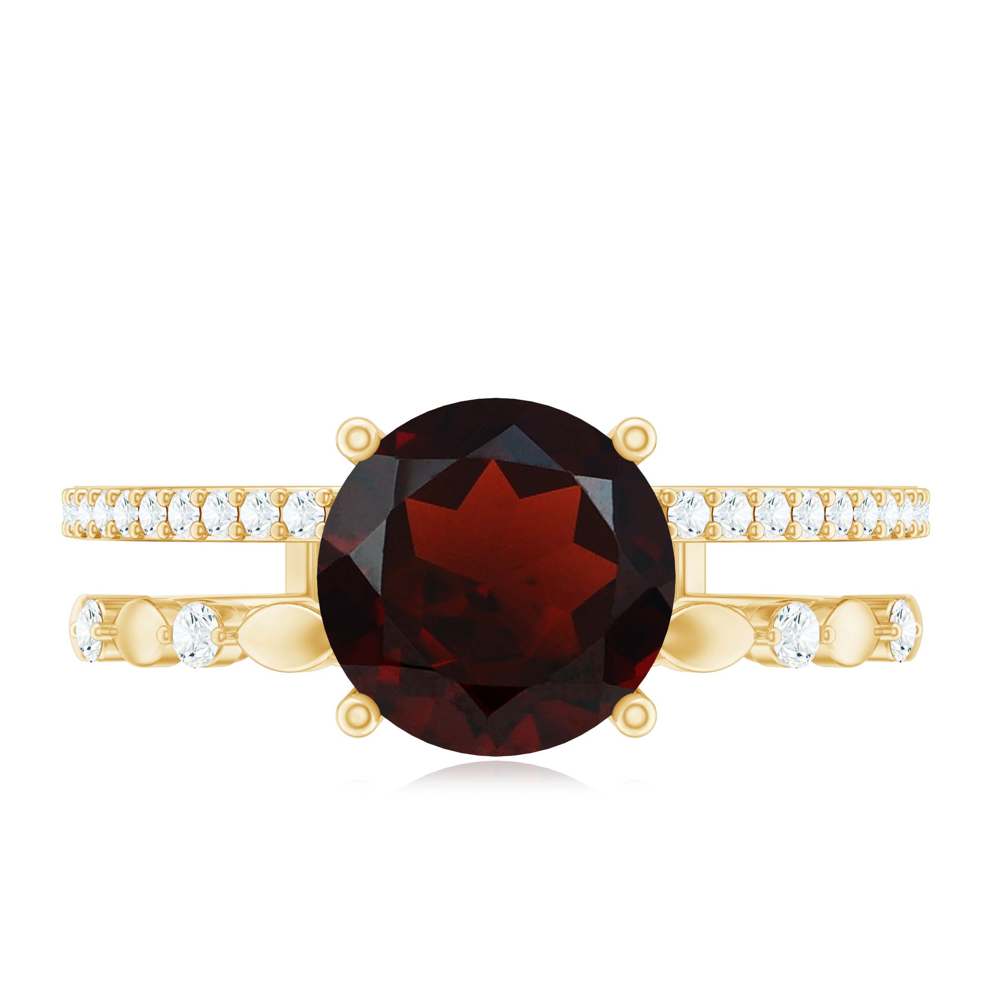Solitaire Garnet Engagement Double Band Ring with Diamond