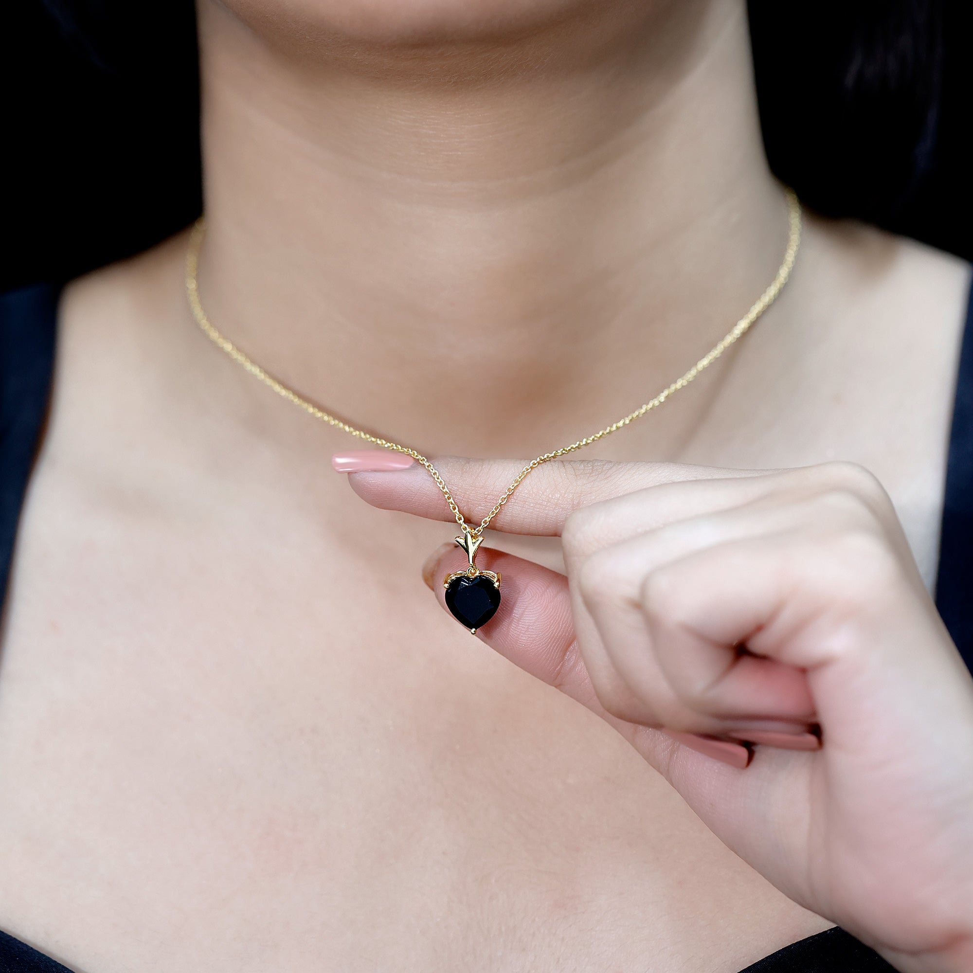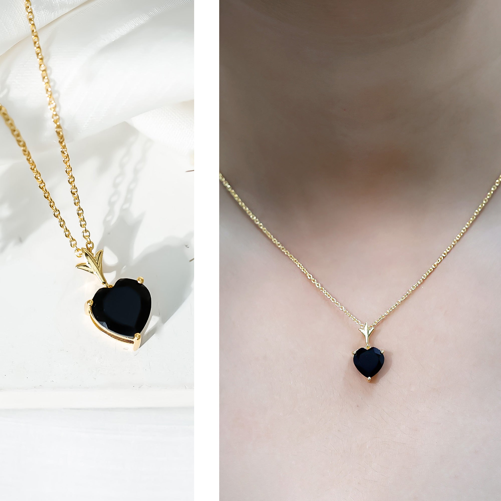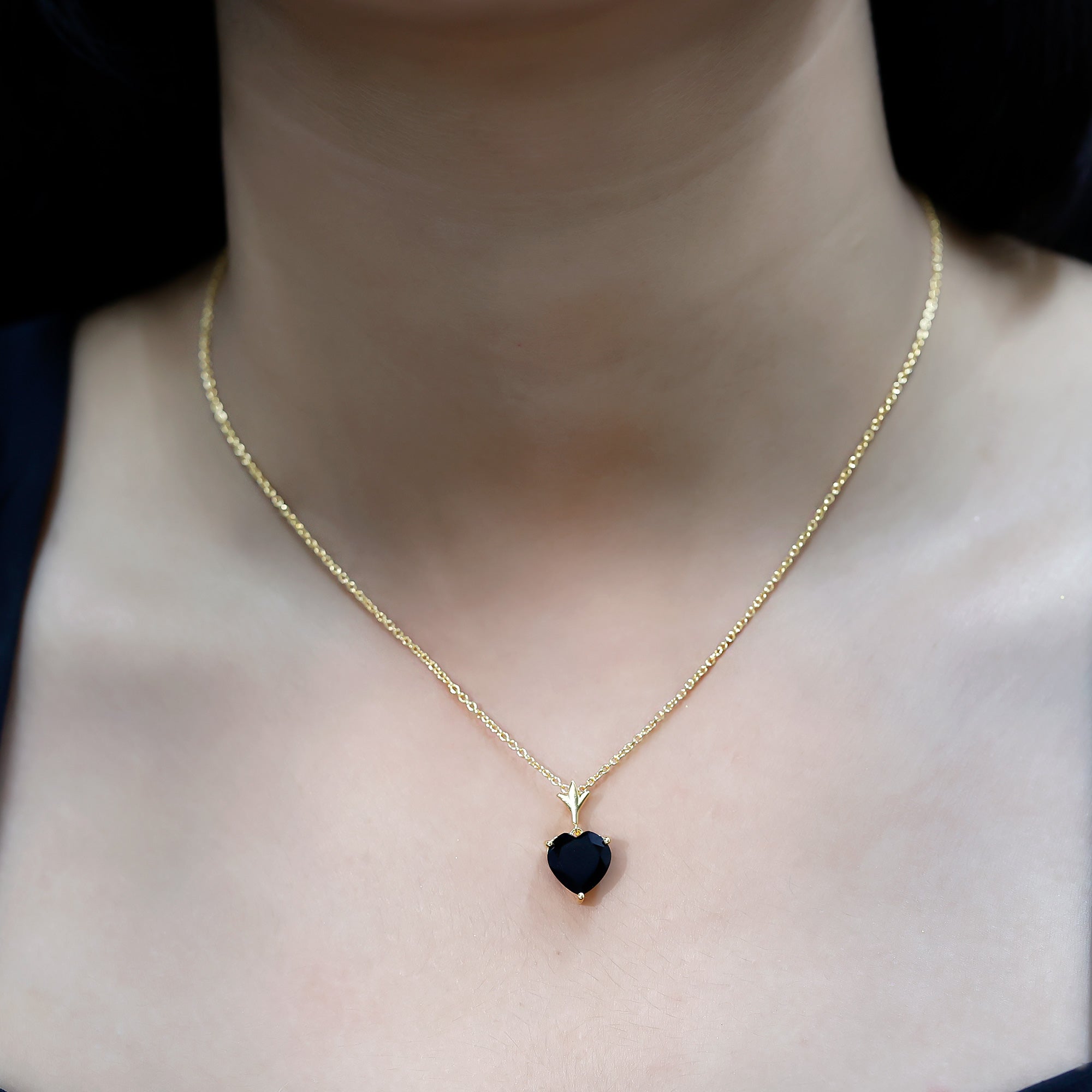 When elegance meets boldness, you get a necklace like this, classic in beauty and rich in meaning. This striking Heart Solitaire Necklace captures attention with its 10 MM lab created black diamond. Suspended delicately from a sleek chain, the Black Diamond Necklace speaks of fearless love and timeless strength. Crafted with care in 14K yellow gold plated silver, the contrast between the radiant golden tones and the intense black stone creates a look that is both refined and timeless. The Heart Locket Necklace is securely held in 3-prong setting, allowing the gemstone faceted brilliance to shine from every angle, while the designer metal motif at the top adds a subtle touch of sophistication and drama. This Black Diamond Heart Necklace is for the woman who writes her own rules, who embraces the beauty in contrast, and who understands that love comes in all shades. Whether worn as a daily staple or dressed up for special occasions, this necklace easily adapts to any style. Perfect for gifting on anniversaries, birthdays, or as a self-love treat, this beauty arrives in a premium jewelry box and includes a certificate of authenticity for peace of mind.