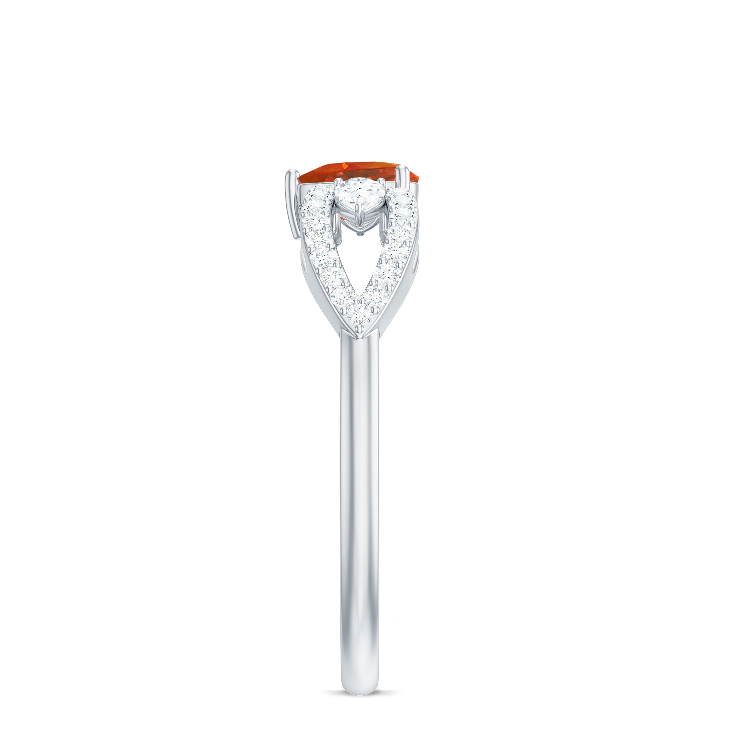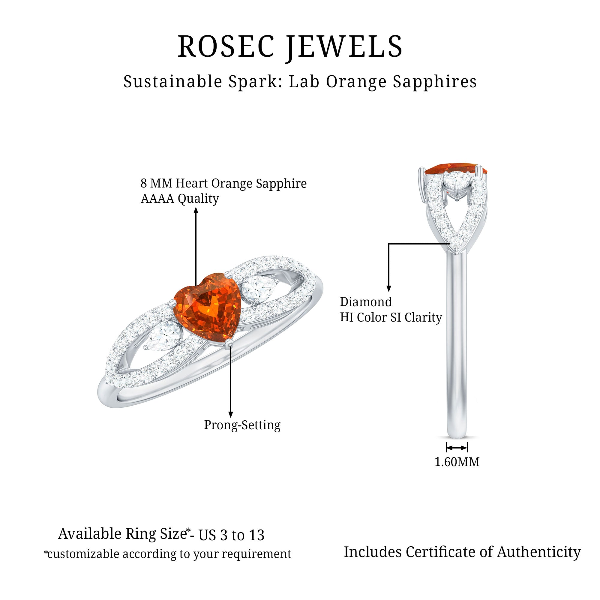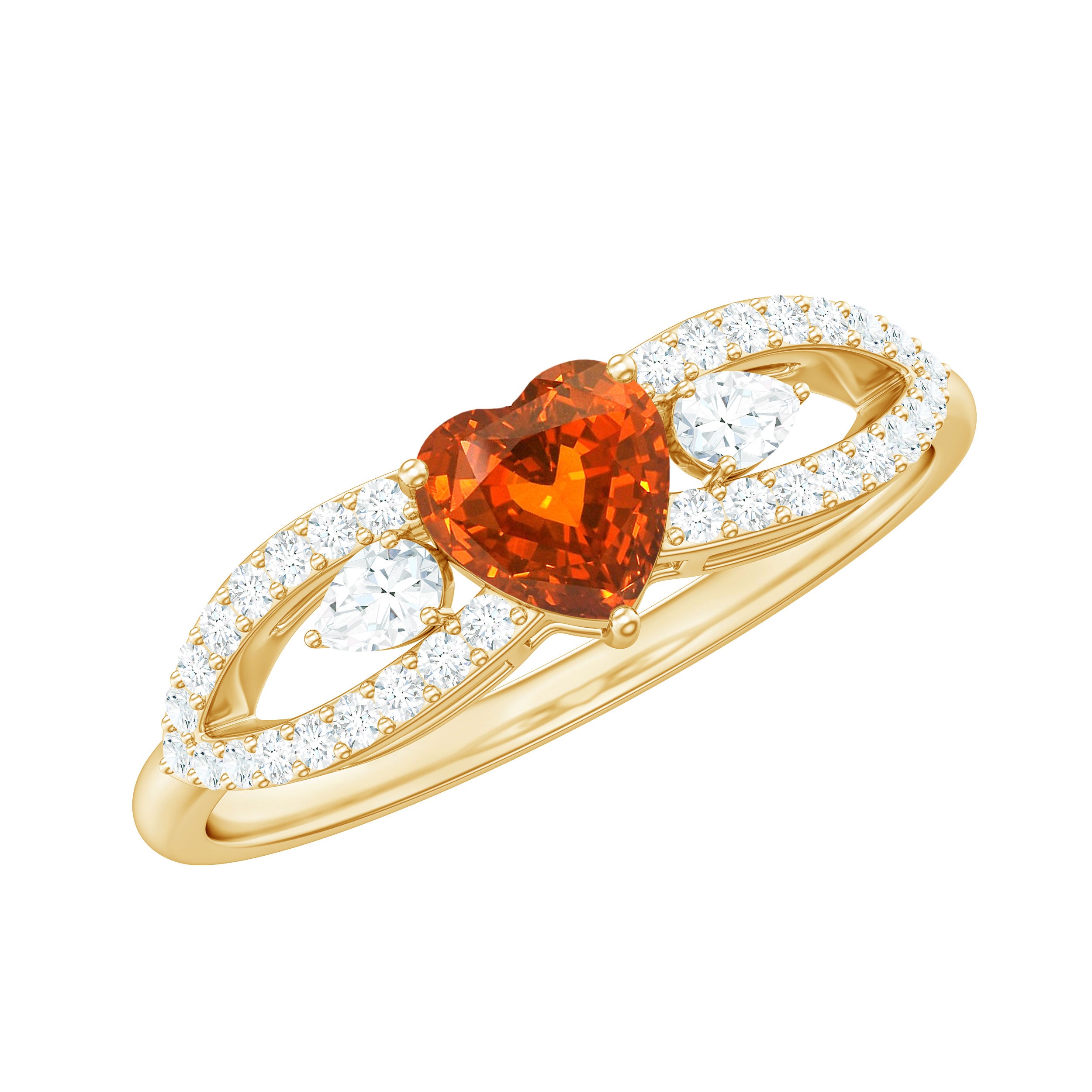 Solitaire Lab-Created Orange Sapphire Heart Engagement Ring with Diamond