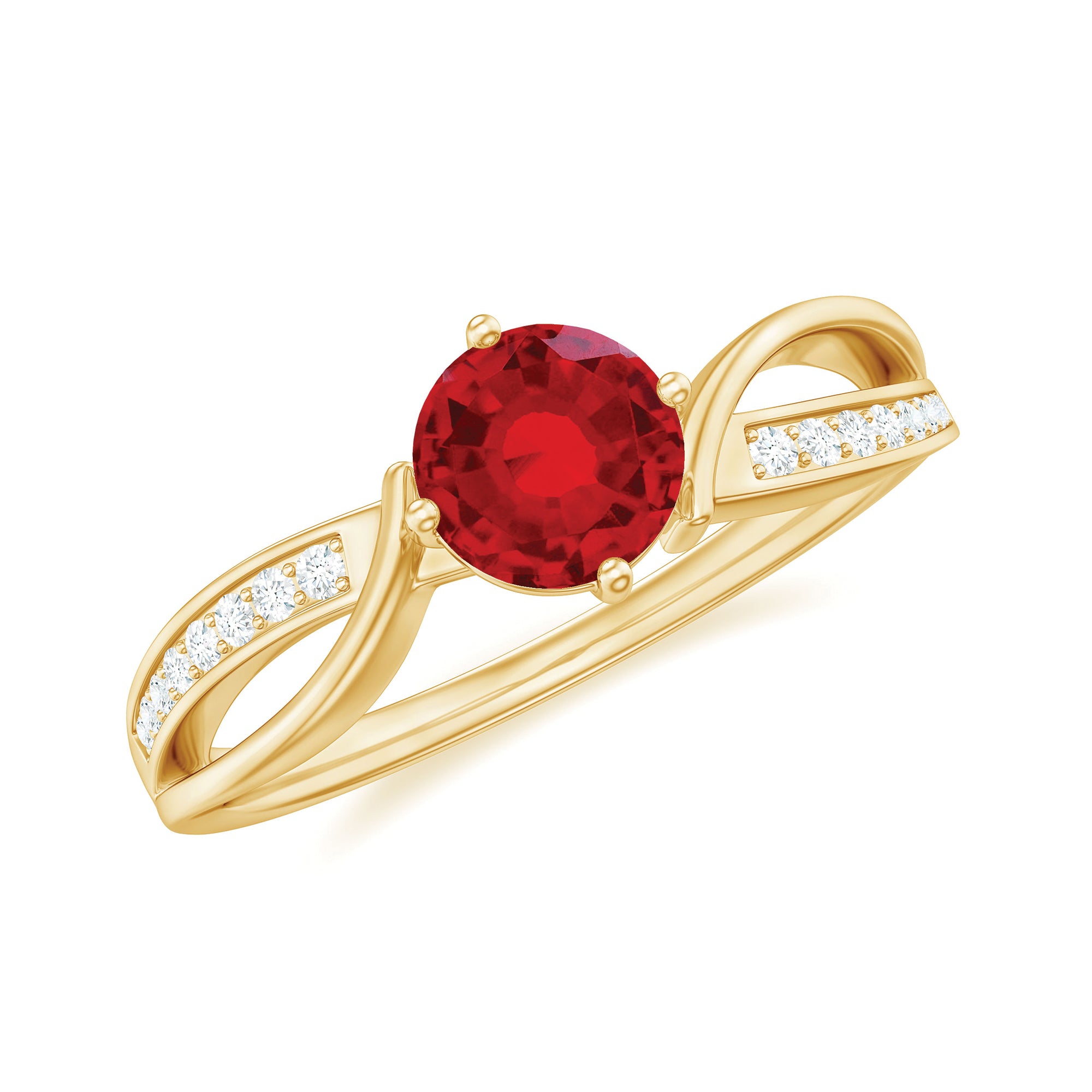Make a statement that speaks straight from the heart with this Ruby and Diamond Engagement Ring, it is full of meaning and style. Curated with a 5 MM round lab created ruby shines brightly, set securely in 4-Prong-Diagonal-Setting. The infinity shaped band adds a special touch, decorated with sparkling diamonds that wrap around, symbolizing endless love and connection. This Infinity Engagement Ring is not just beautiful, it is a promise and a symbol of commitment that leaves a lasting impression. Perfect as a pre-engagement or promise ring, its simple yet powerful design makes it a piece you can wear every day or save for those meaningful moments. The combination of the rich red ruby and shimmering diamonds creates a look that is both classic and modern, fitting effortlessly with any outfit. This infinity band represents a strong bond and an unbreakable connection between two people. Crafted with care and attention to quality, the Lab Created Ruby Engagement Ring tells a story of love that lasts forever. Whether you are giving it as a gift or treating yourself, this Ruby Solitaire Ring is a beautiful way to show how deep your feelings truly are.