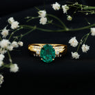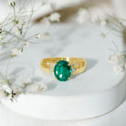Solitaire Lab Grown Emerald Oval Engagement Ring with Diamond