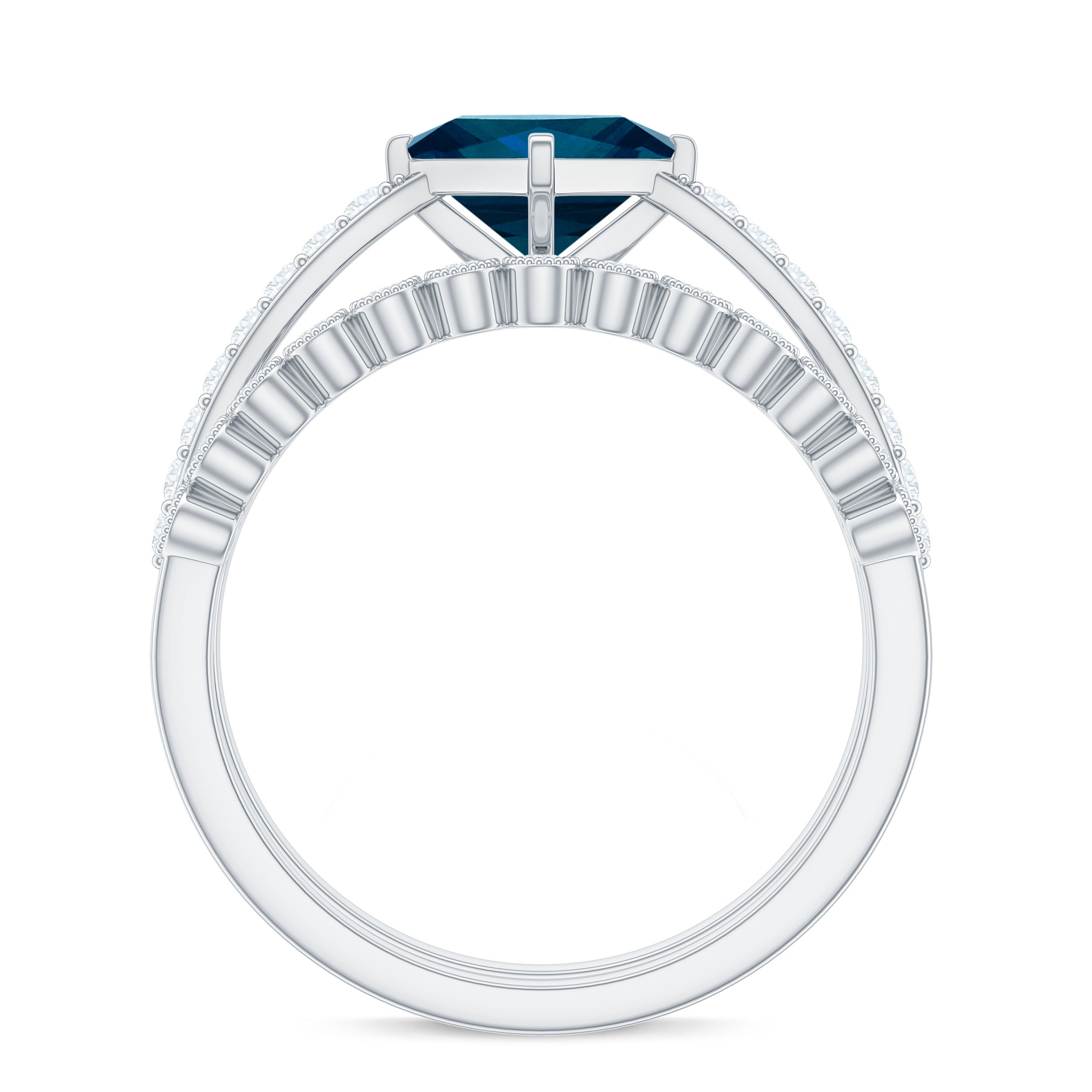 Genuine London Blue Topaz Designer Engagement Ring with Diamond Wedding Band