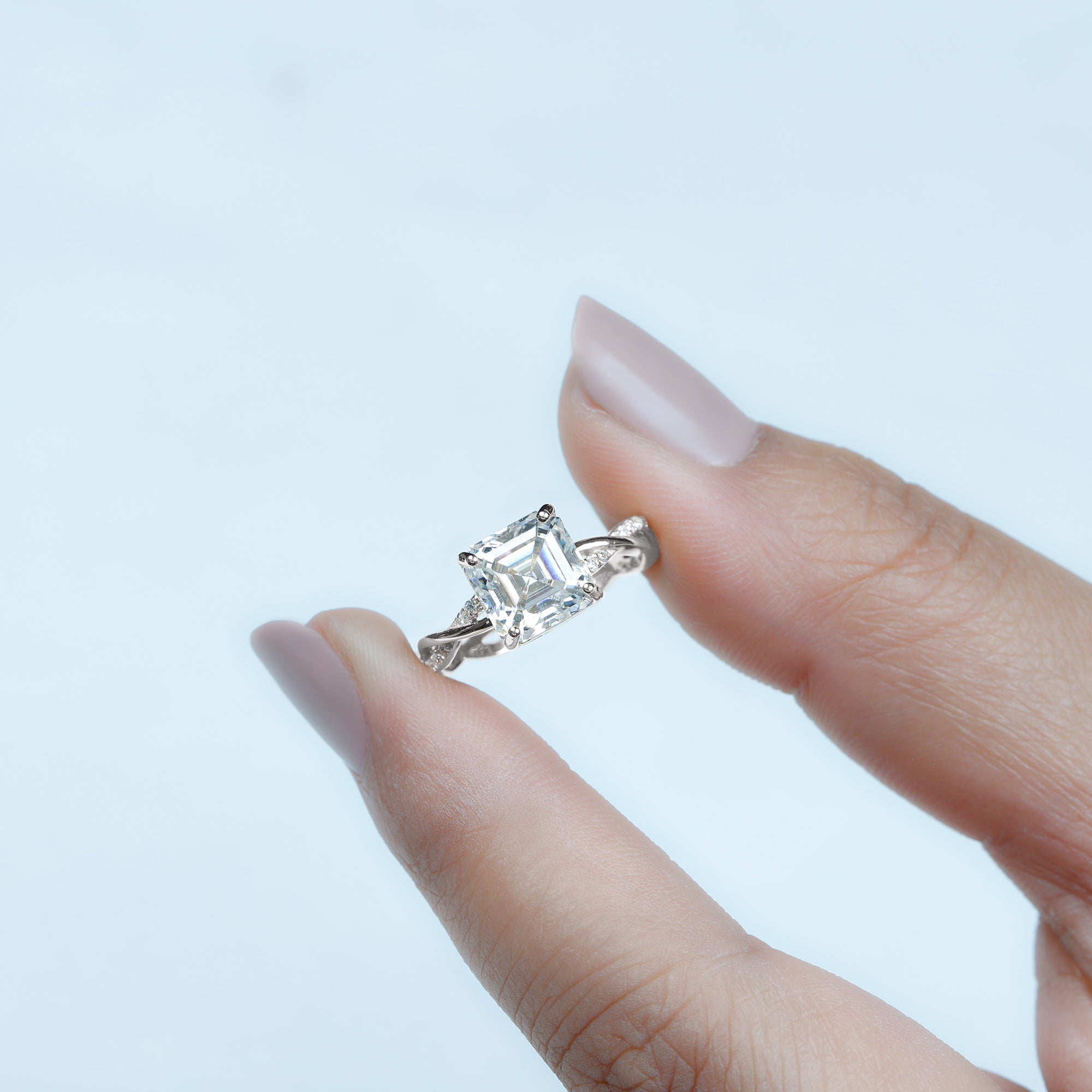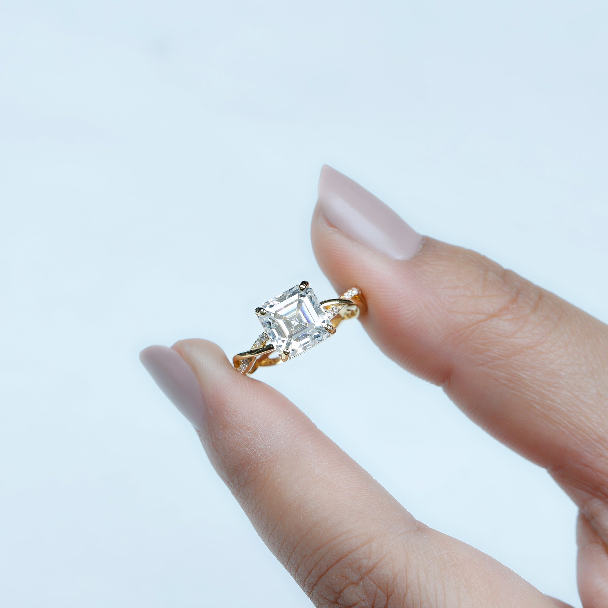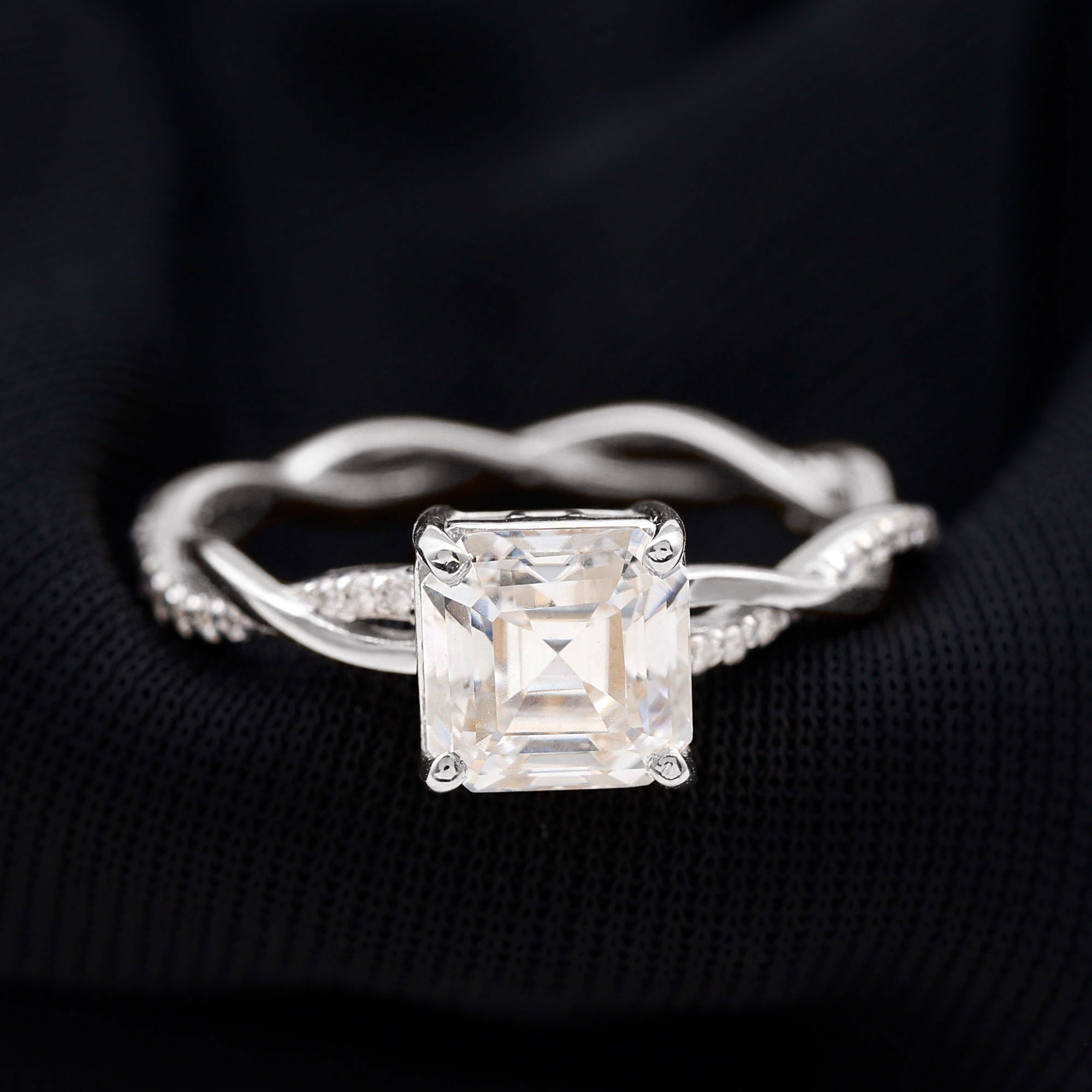 Solitaire Moissanite Asscher Cut Engagement Ring
