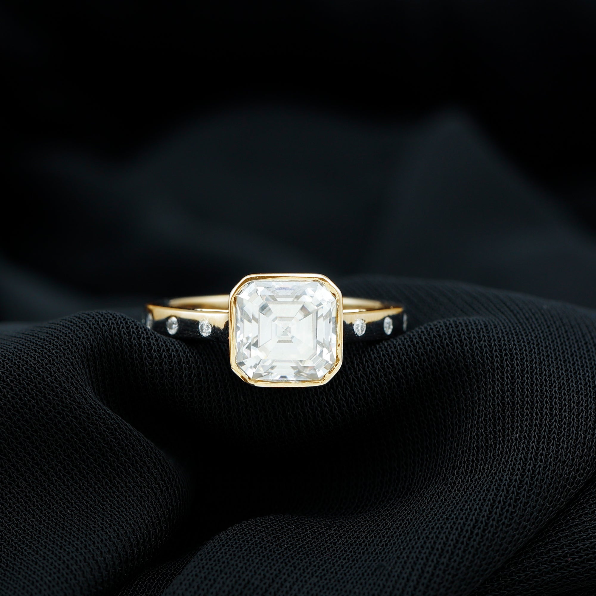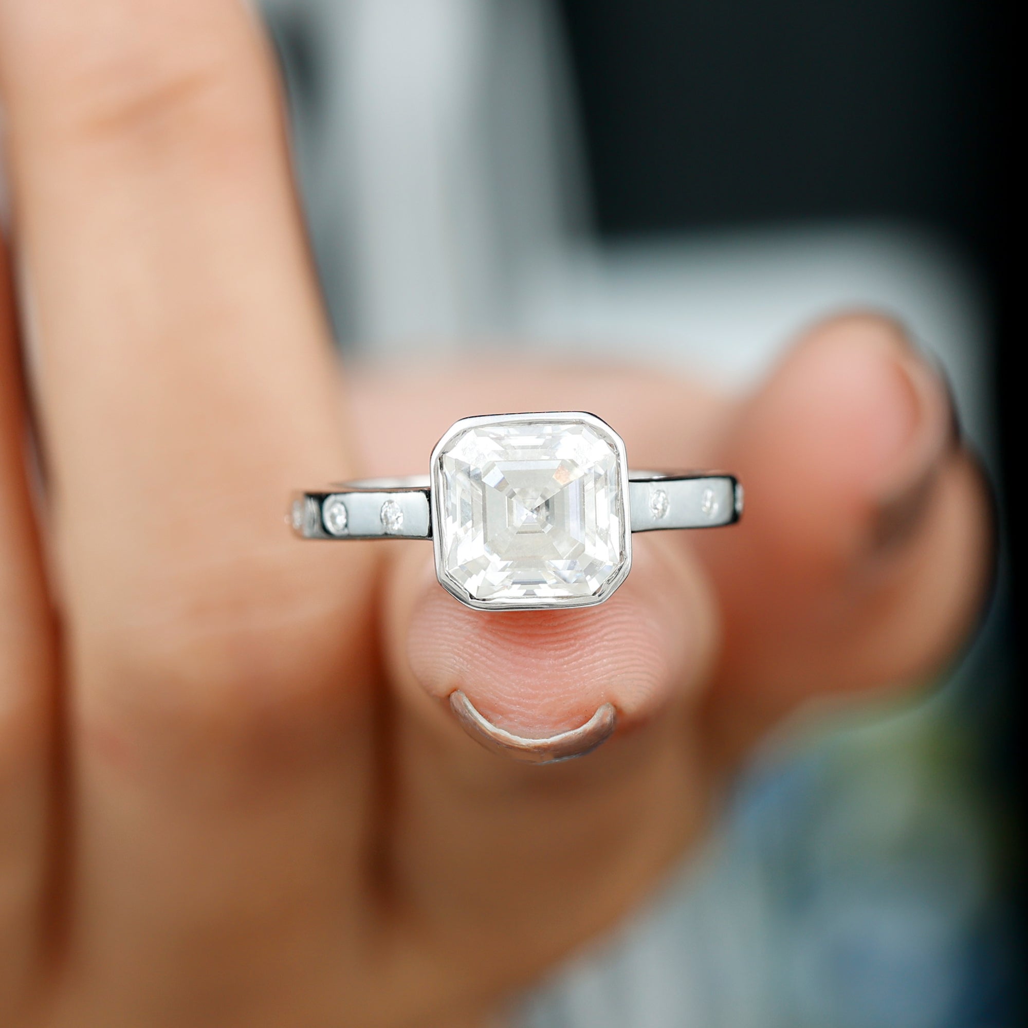 Solitaire Moissanite Asscher Cut Engagement Ring in Bezel Setting