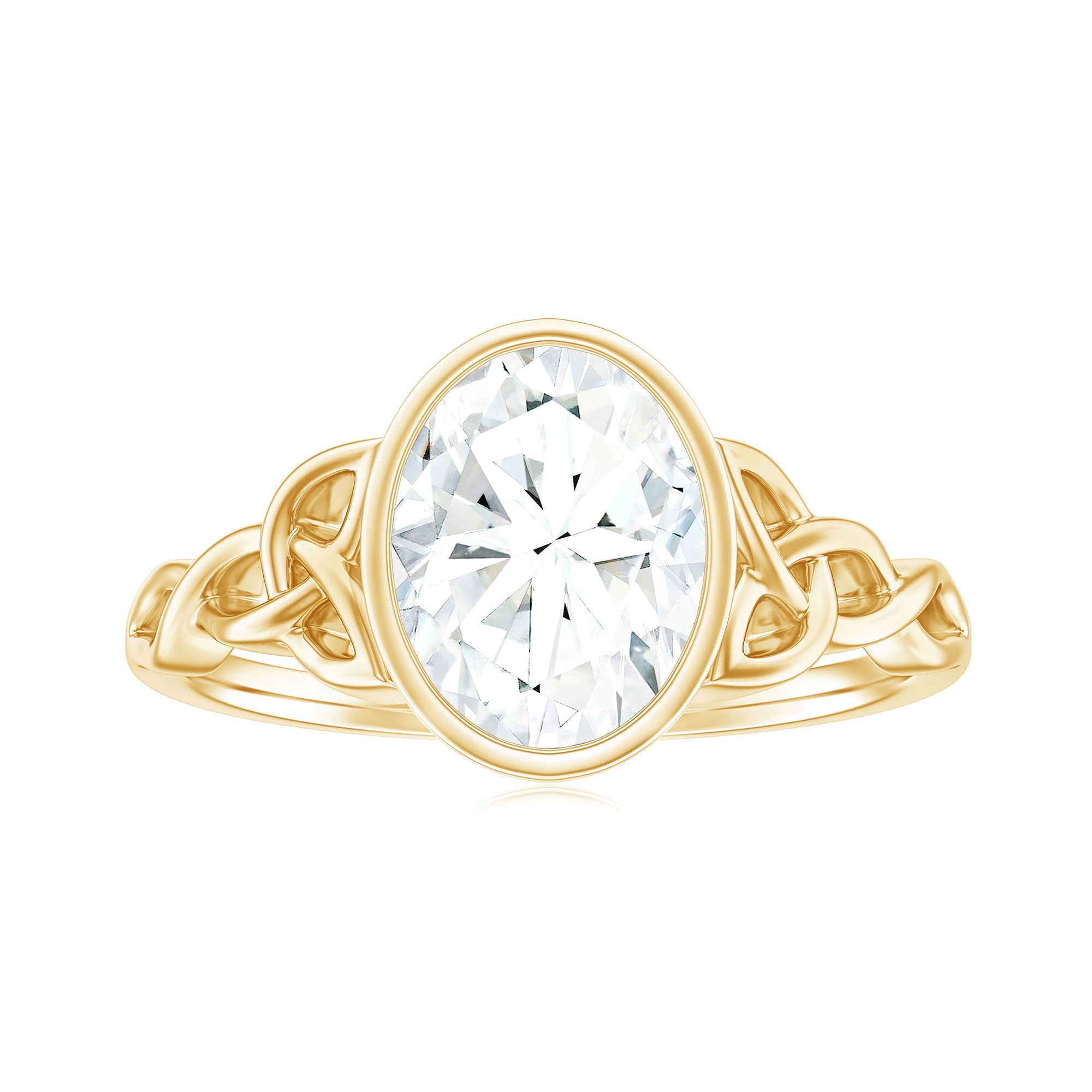 This stunning Oval Moissanite Engagement Ring brings together graceful beauty and meaningful symbolism. At the center is a brilliant 7X9 MM oval cut moissanite, set in bezel setting. The stone is both secure and stylish, designed to shine brightly through everyday moments and life’s biggest celebrations. What truly sets this Solitaire Engagement Ring apart is its intricately crafted Celtic knot band, symbolizing eternal love, loyalty, and the unbreakable bond between two souls. The flowing knotwork adds a romantic and old world charm to the modern simplicity of the solitaire oval shape, making this Bezel Set Engagement Ring a perfect balance of tradition and contemporary design. The smooth curves and low profile setting offer comfort for daily wear, while the D-VS1 quality moissanite ensures breathtaking brilliance. Available in US ring sizes 3 to 13, this 2 Carat Moissanite Ring offers a tailored fit for every hand. Arriving in a beautifully designed jewelry box, it is ready to gift, or to become the start of your own cherished story. A true symbol of enduring love, this Celtic Design Engagement Ring is a promise, designed to last a lifetime.