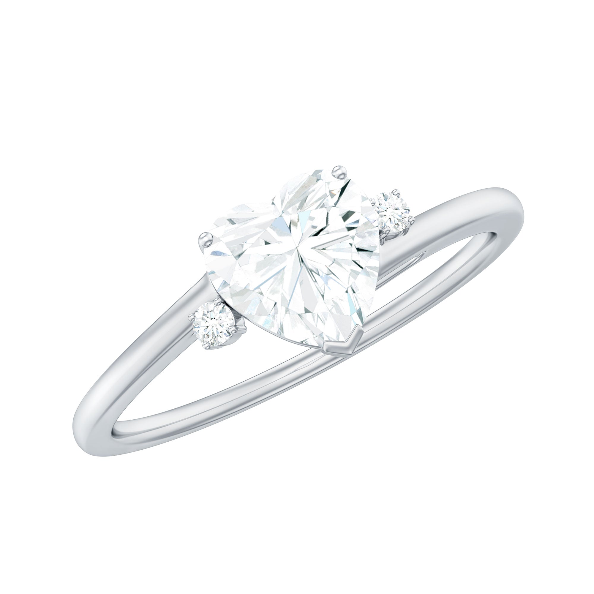 Solitaire Moissanite Heart Engagement Ring in Prong Setting