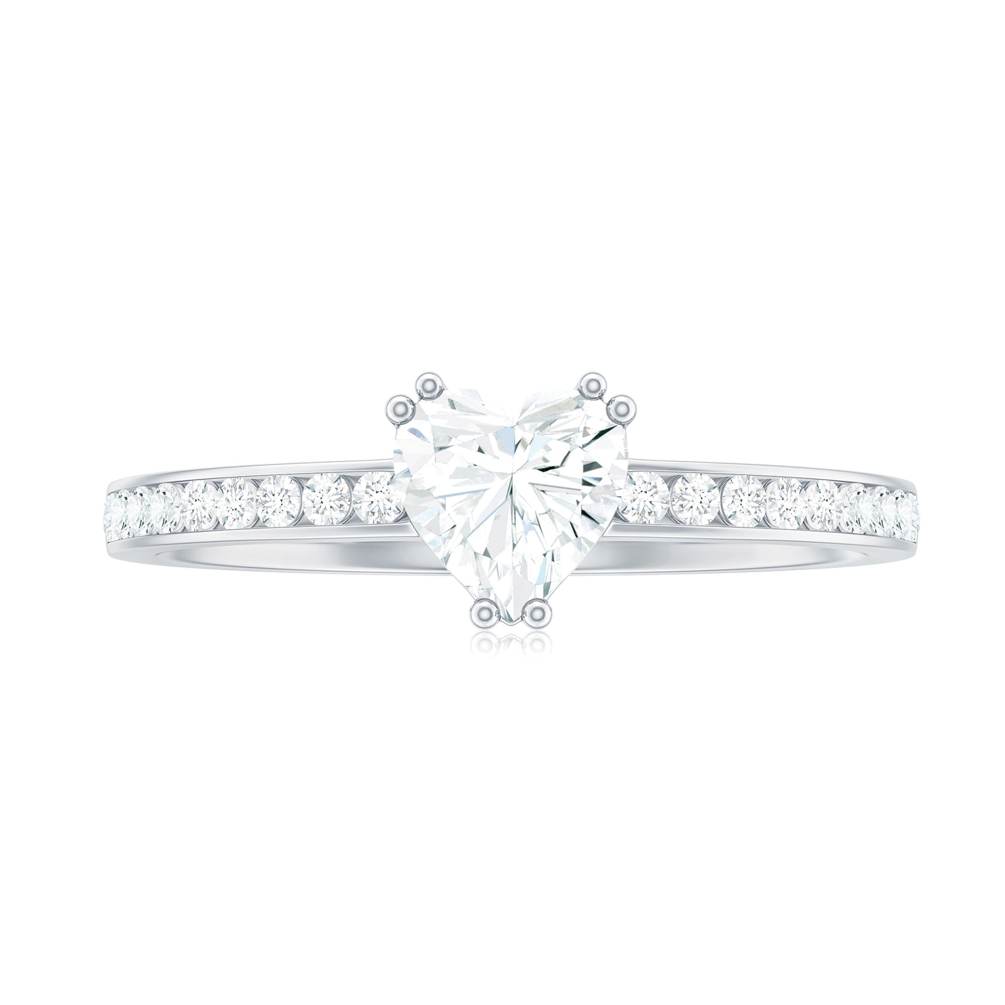 Solitaire Moissanite Heart Promise Ring with Side Stones
