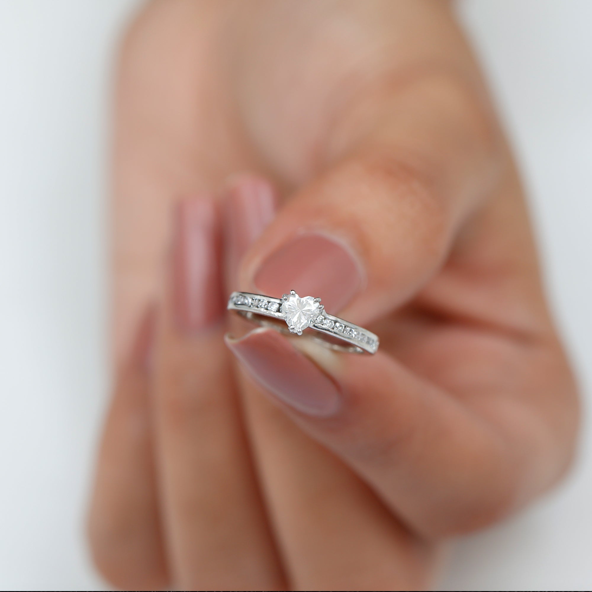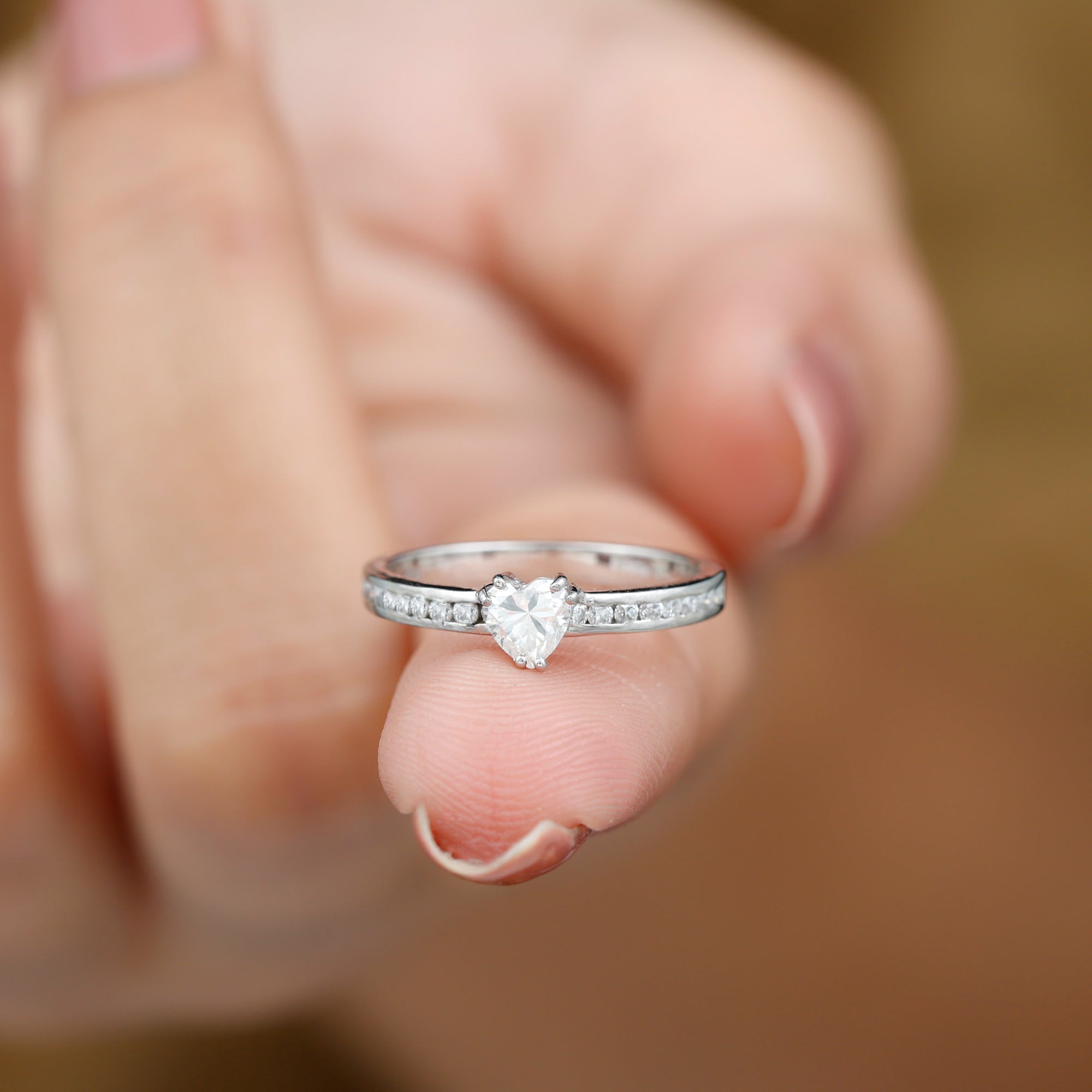 Solitaire Moissanite Heart Promise Ring with Side Stones