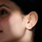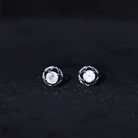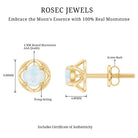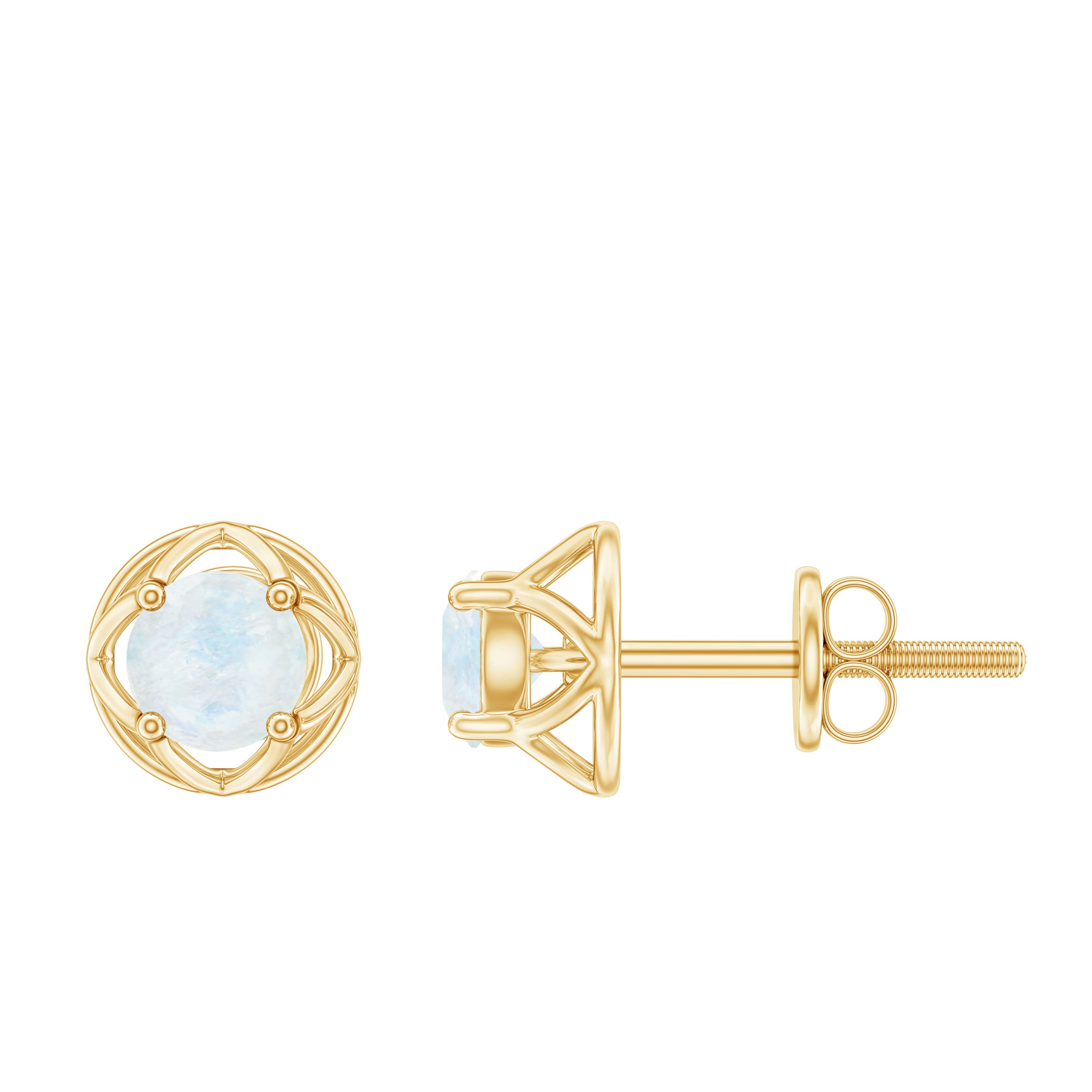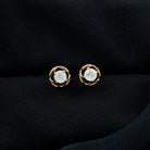 The scintillating stud earrings feature a round shaped moonstone, accentuated by a floral frame, that makes it look like a delicate white blossom in your dream garden. The outer circular frame surrounding the centerpiece adds more sparkle to the design. The solitaire earring pair is simple yet alluring and is complete with screw back findings.